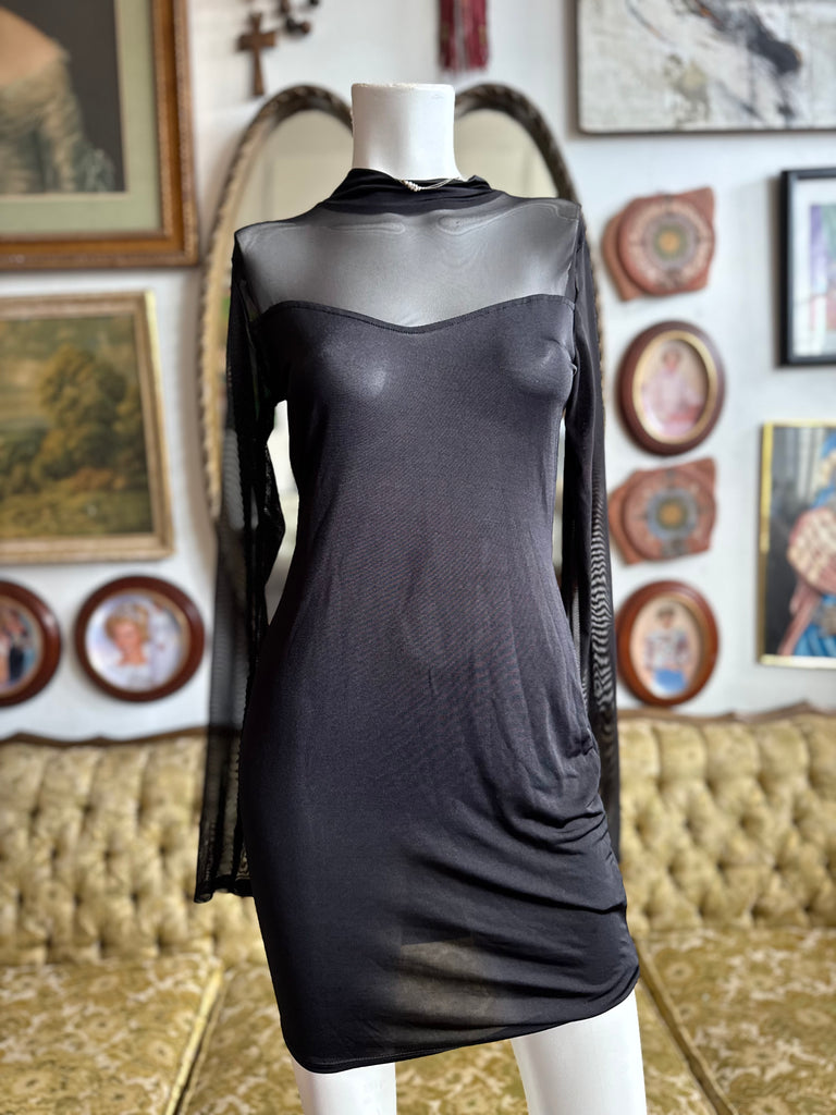 Long-sleeve Black Mesh Mini Party Dress Size 8/M