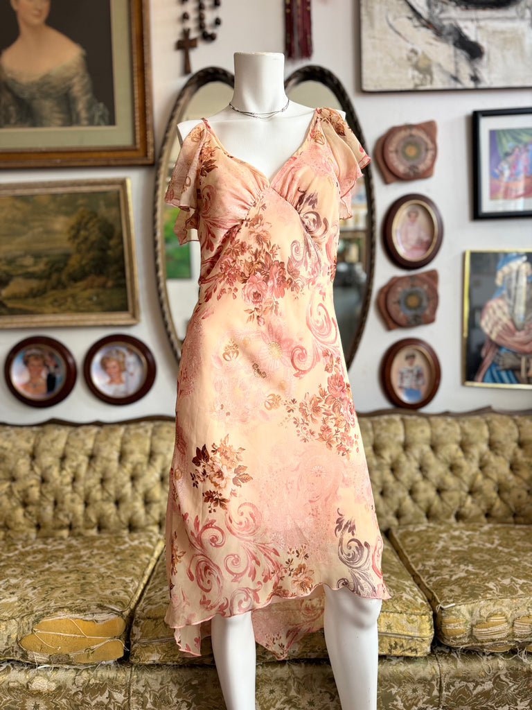 Y2k Floral Flutter Sleeve Midi Dress Size 7