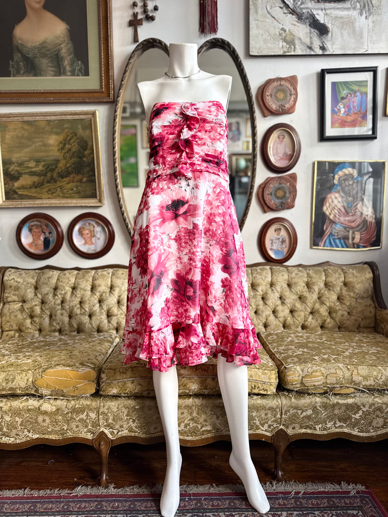 90s Vintage Floral Pearl Button Corseted Dress Size M