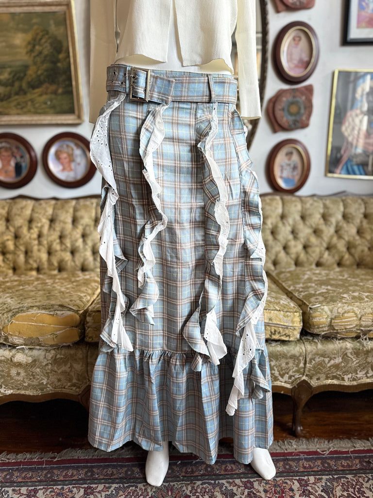 Pretty Damage Blue Plaid Lace Maxi Skirt Size M