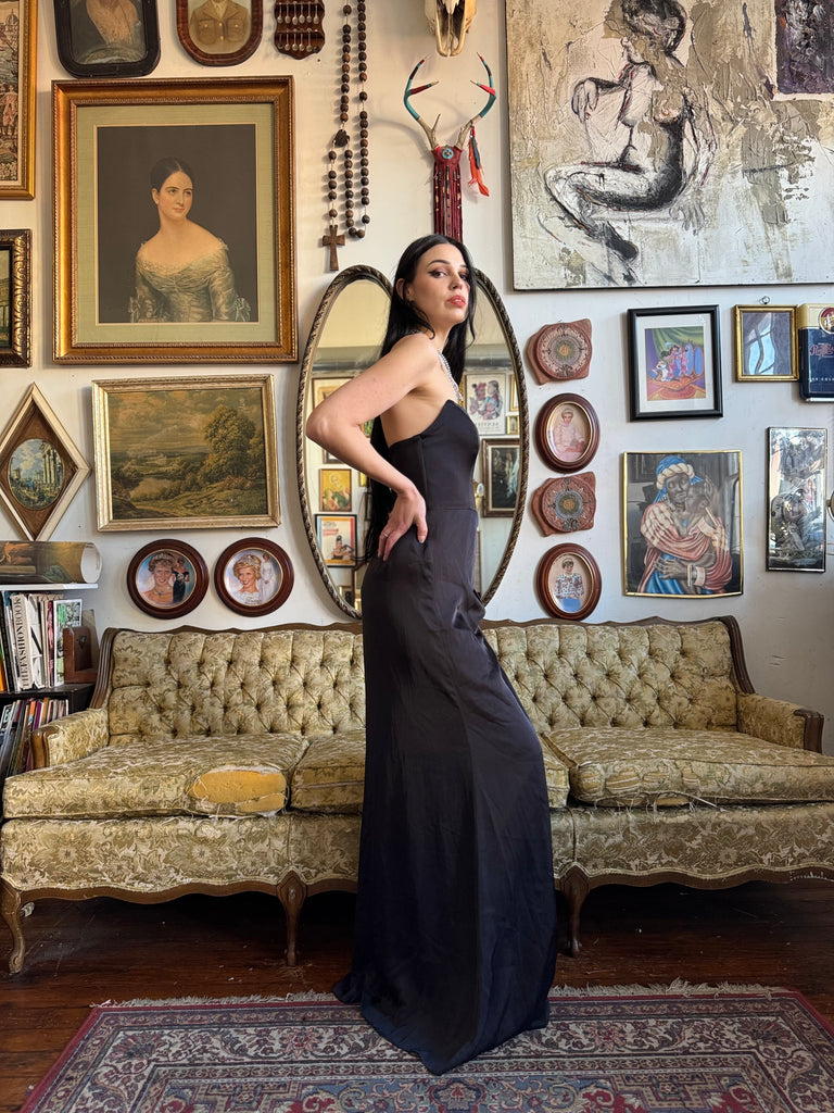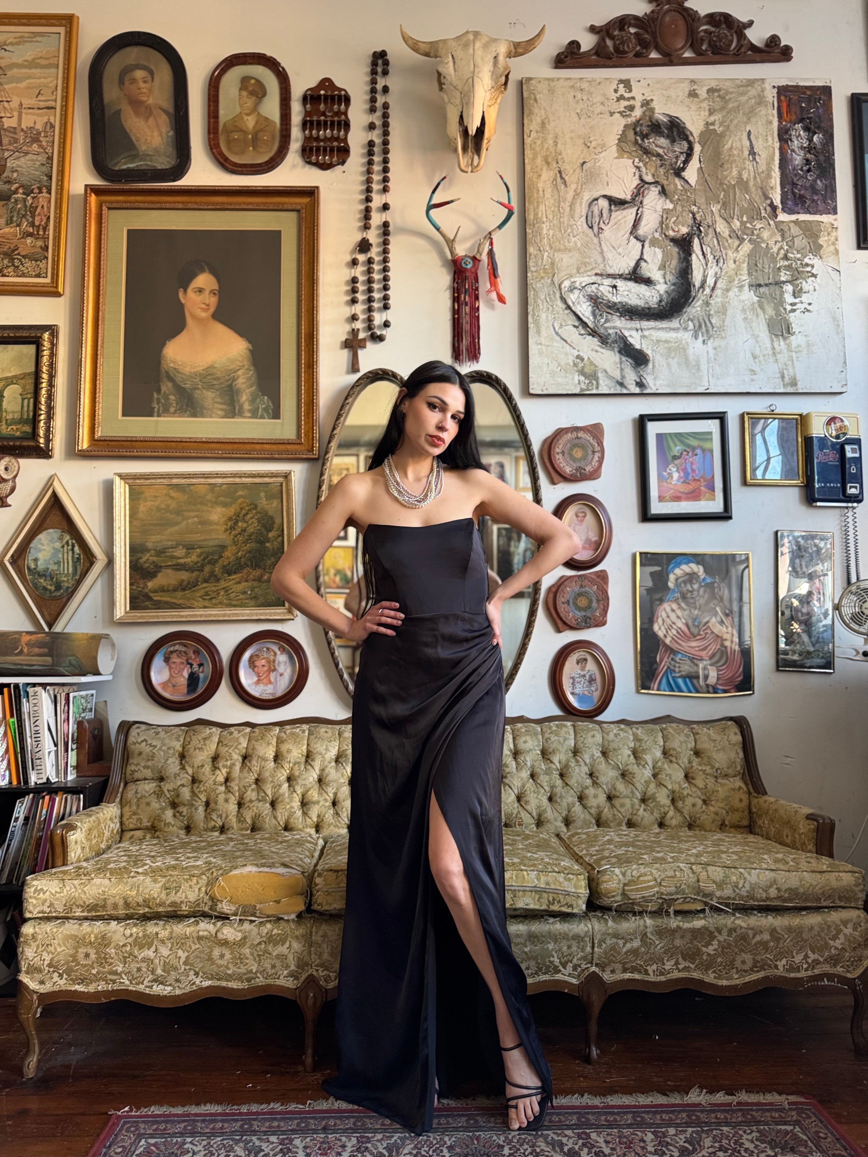 Strapless Black Satin Anne Dress by Birdy Grey Size Medium