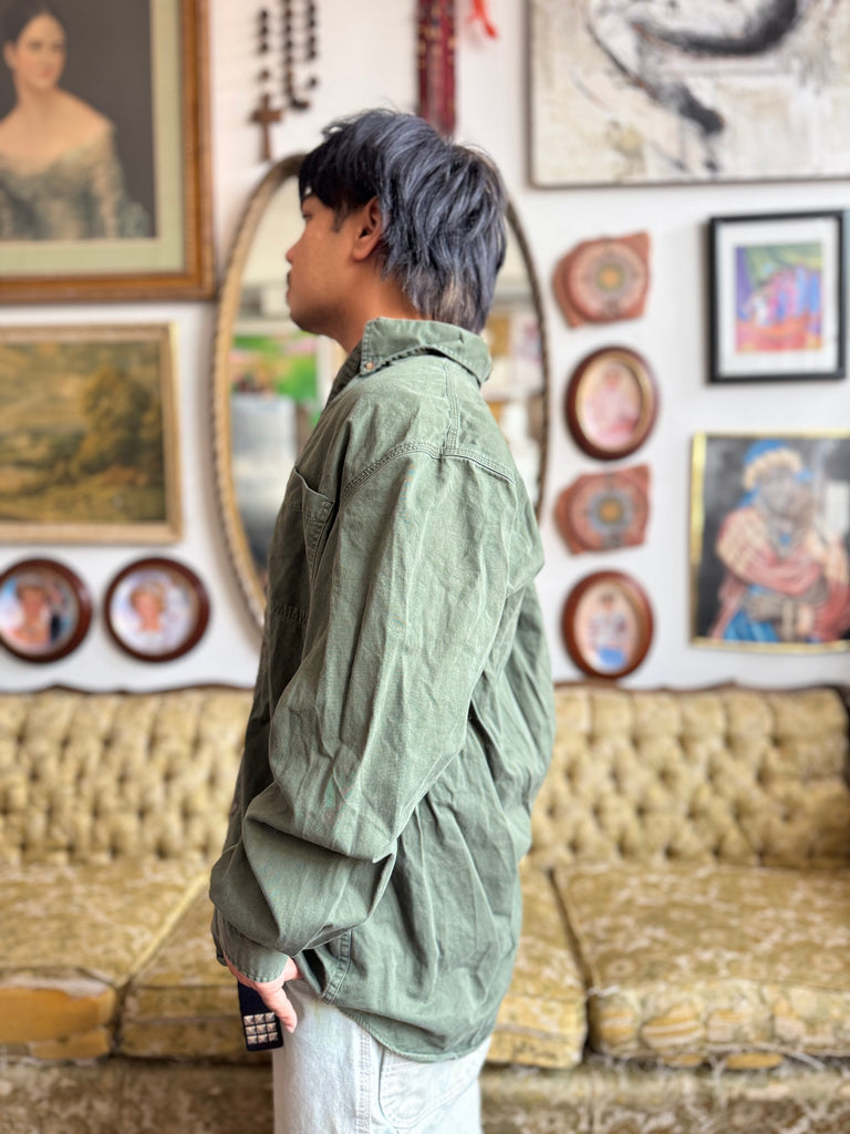 Title: Carhartt Olive Long-Sleeve Button Up Featuring Chest Pocket