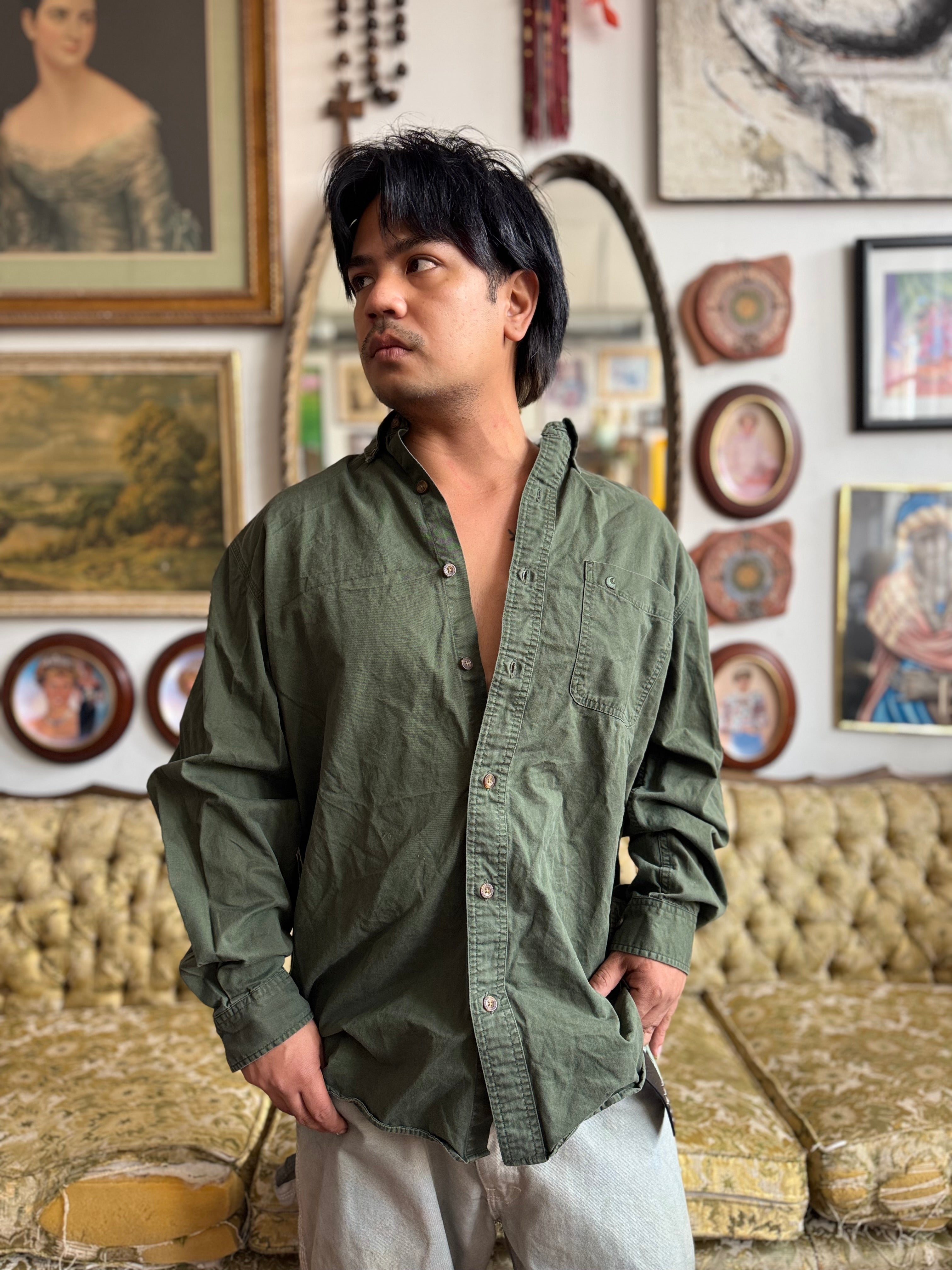 Carhartt Olive Long-Sleeve Button Up Size Large