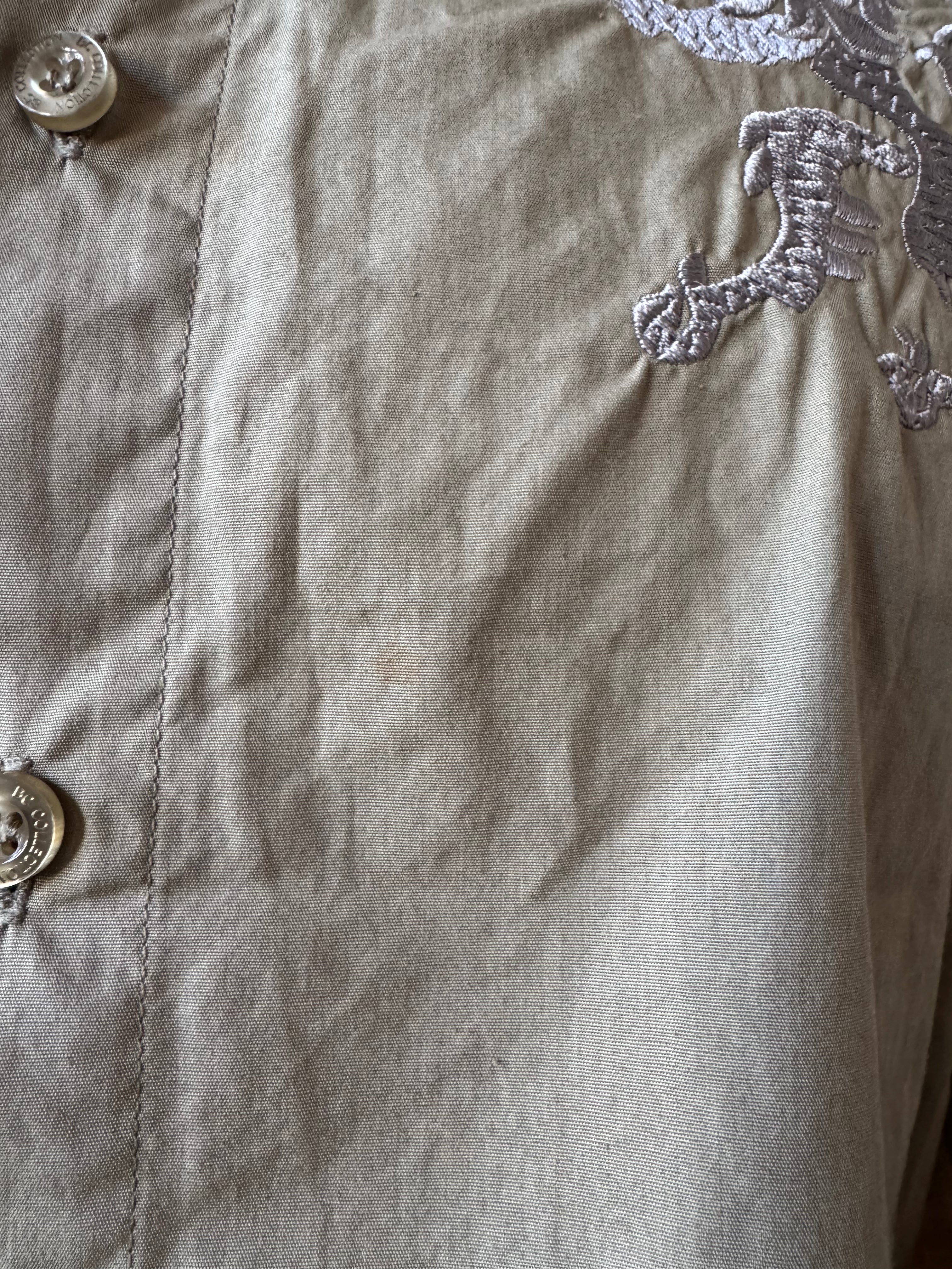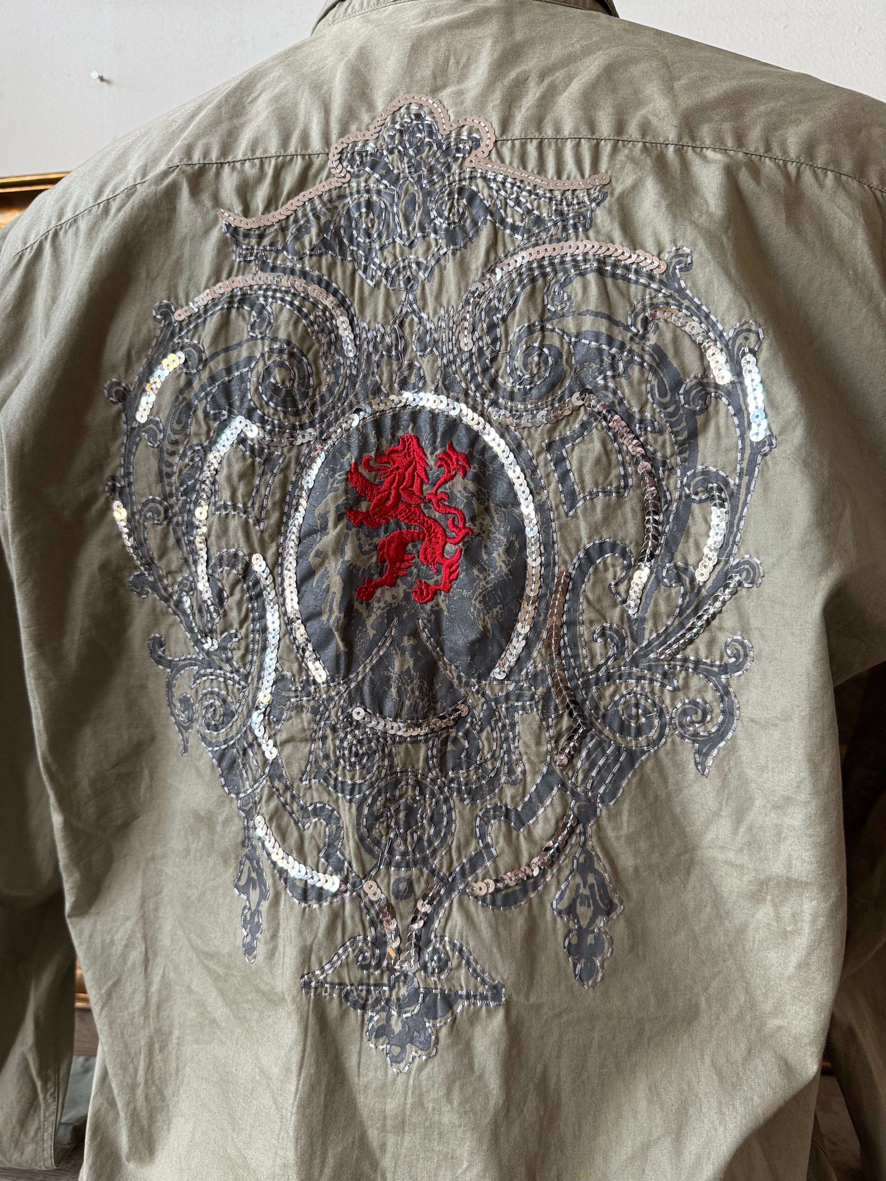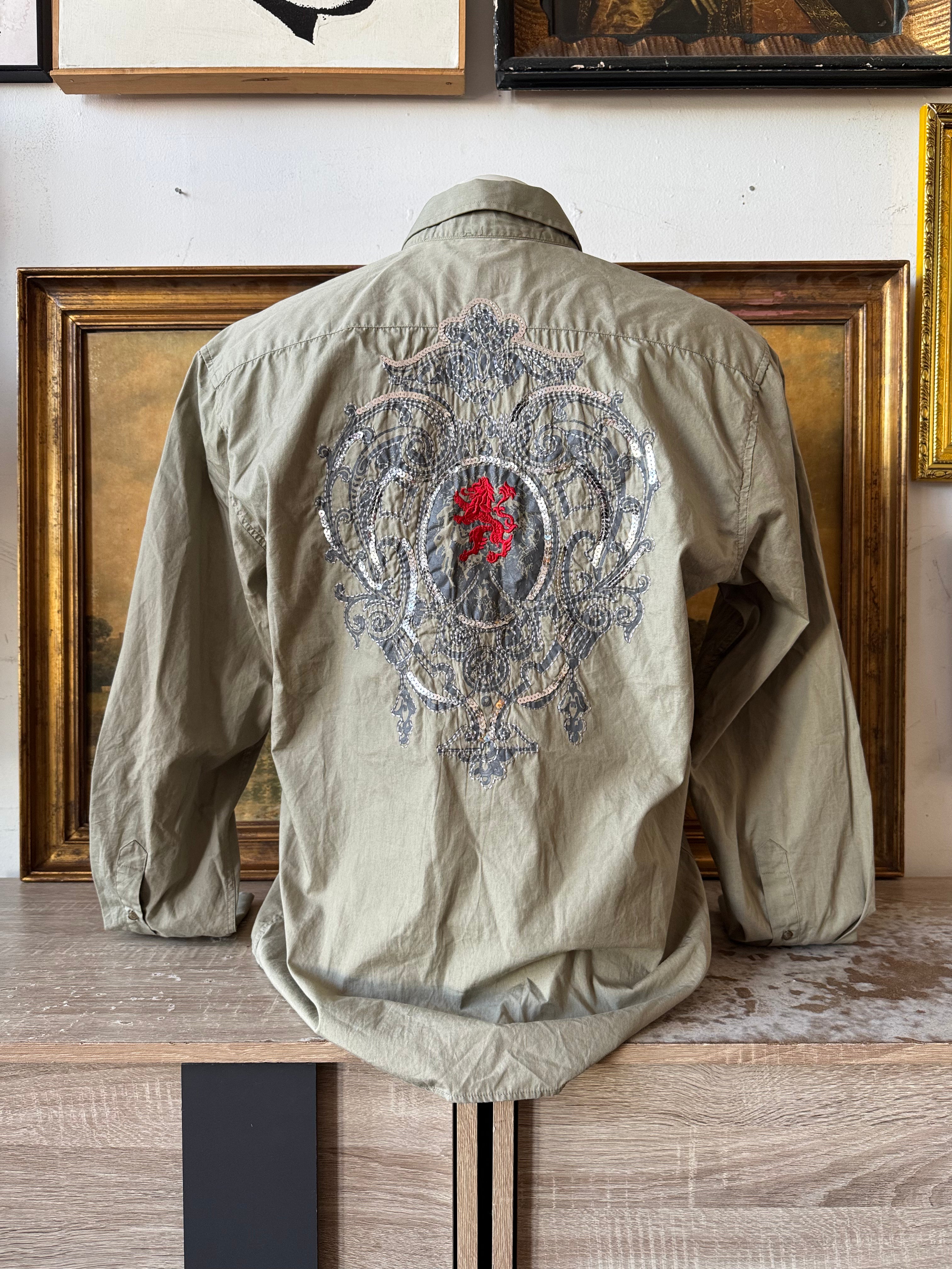 Y2k Sage Green Embroidered Glitzy Graphic Button Up Size XL