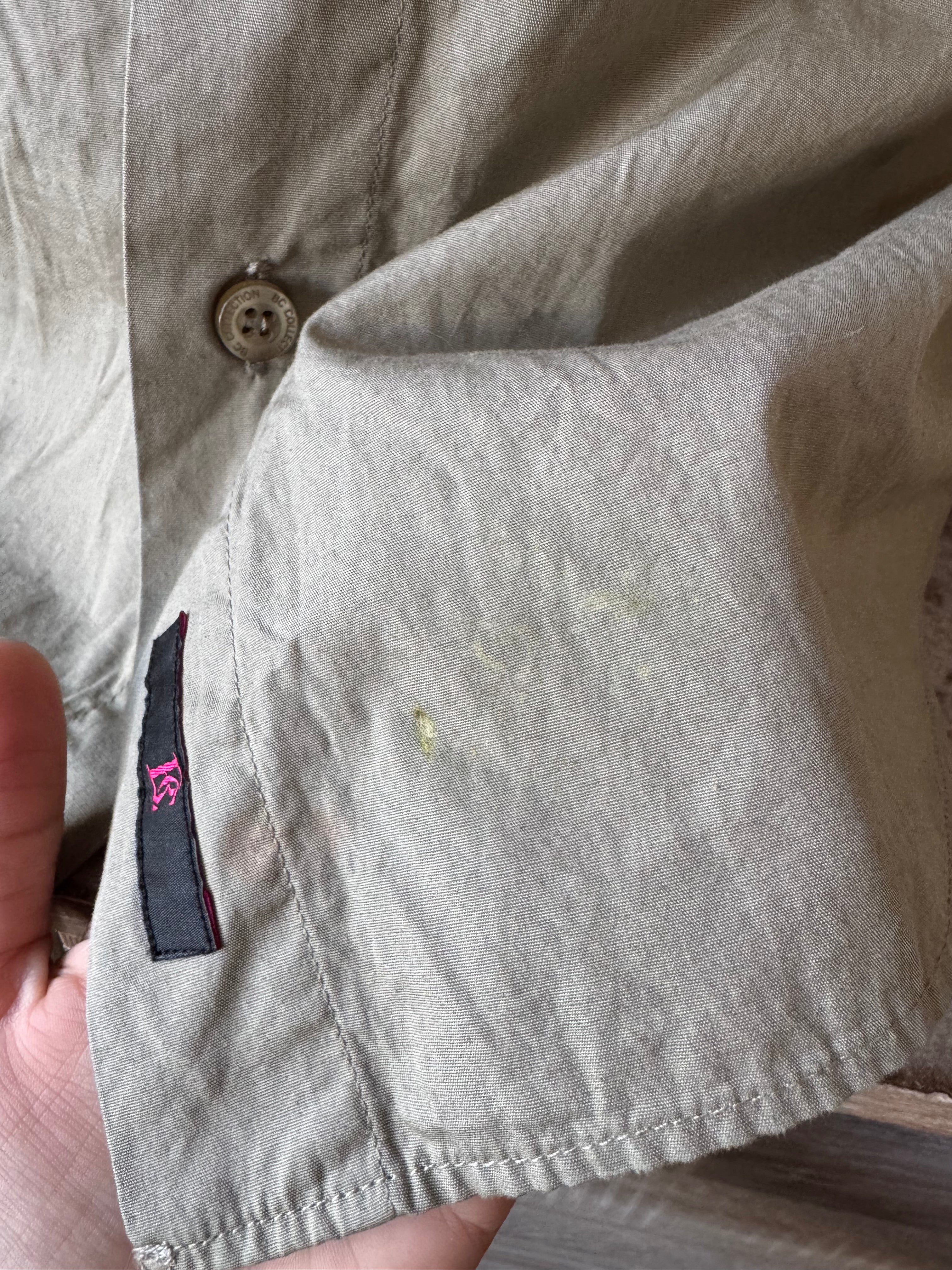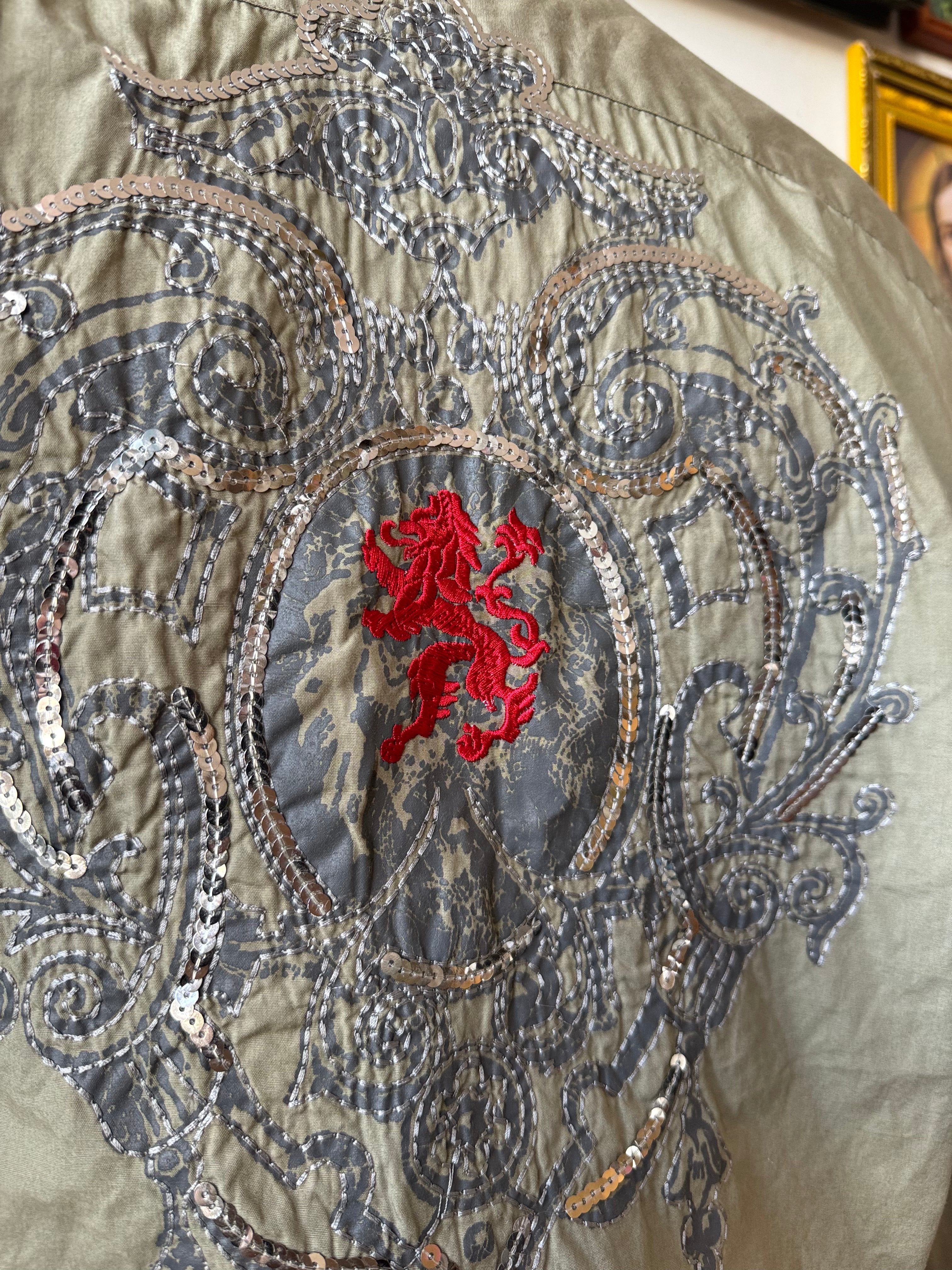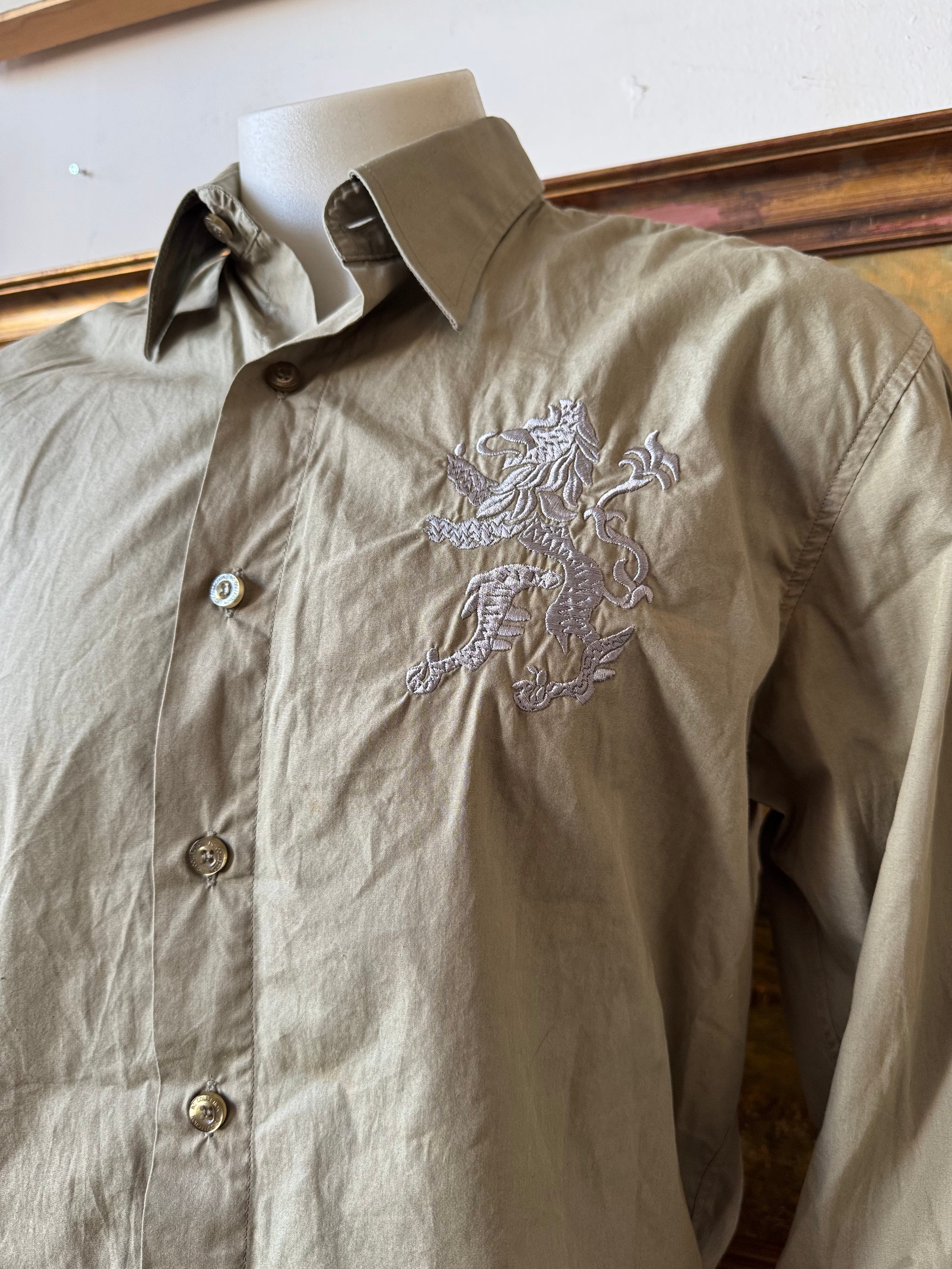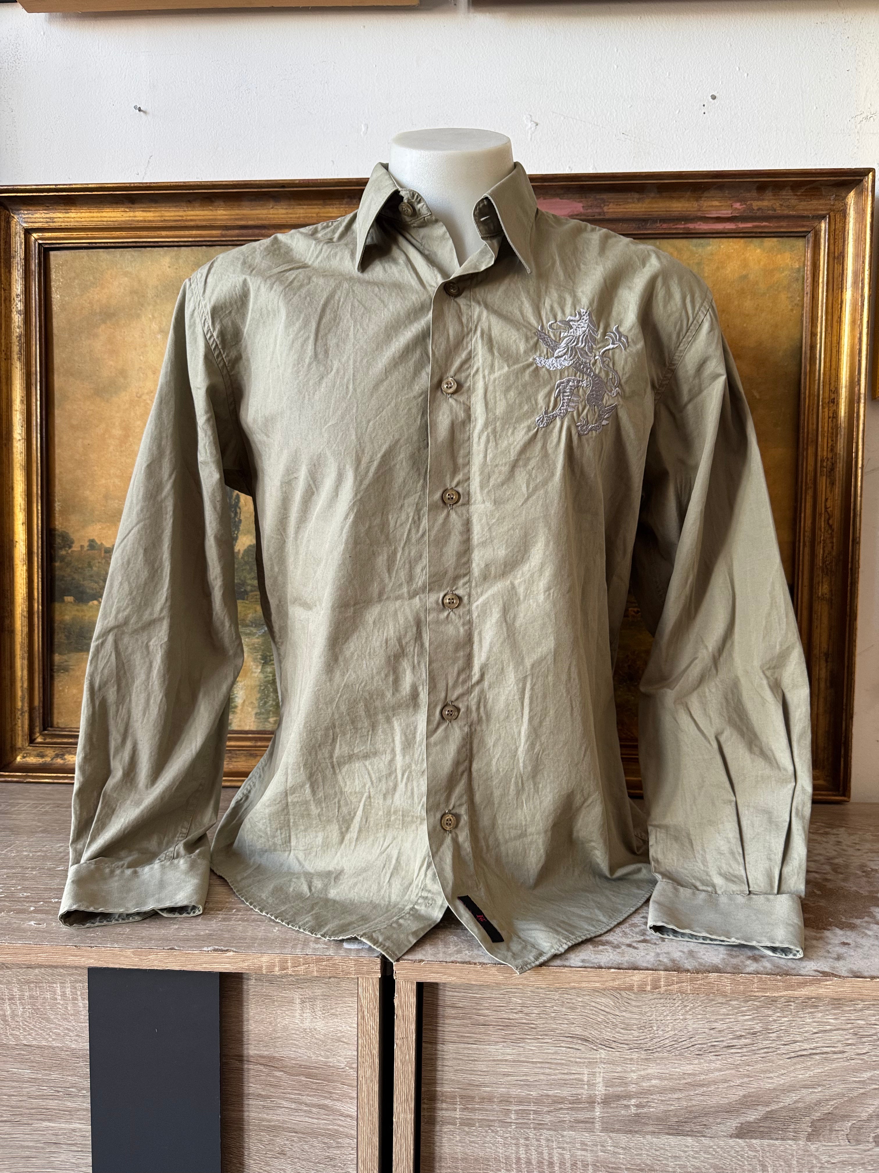 Y2k Sage Green Embroidered Glitzy Graphic Button Up Size XL