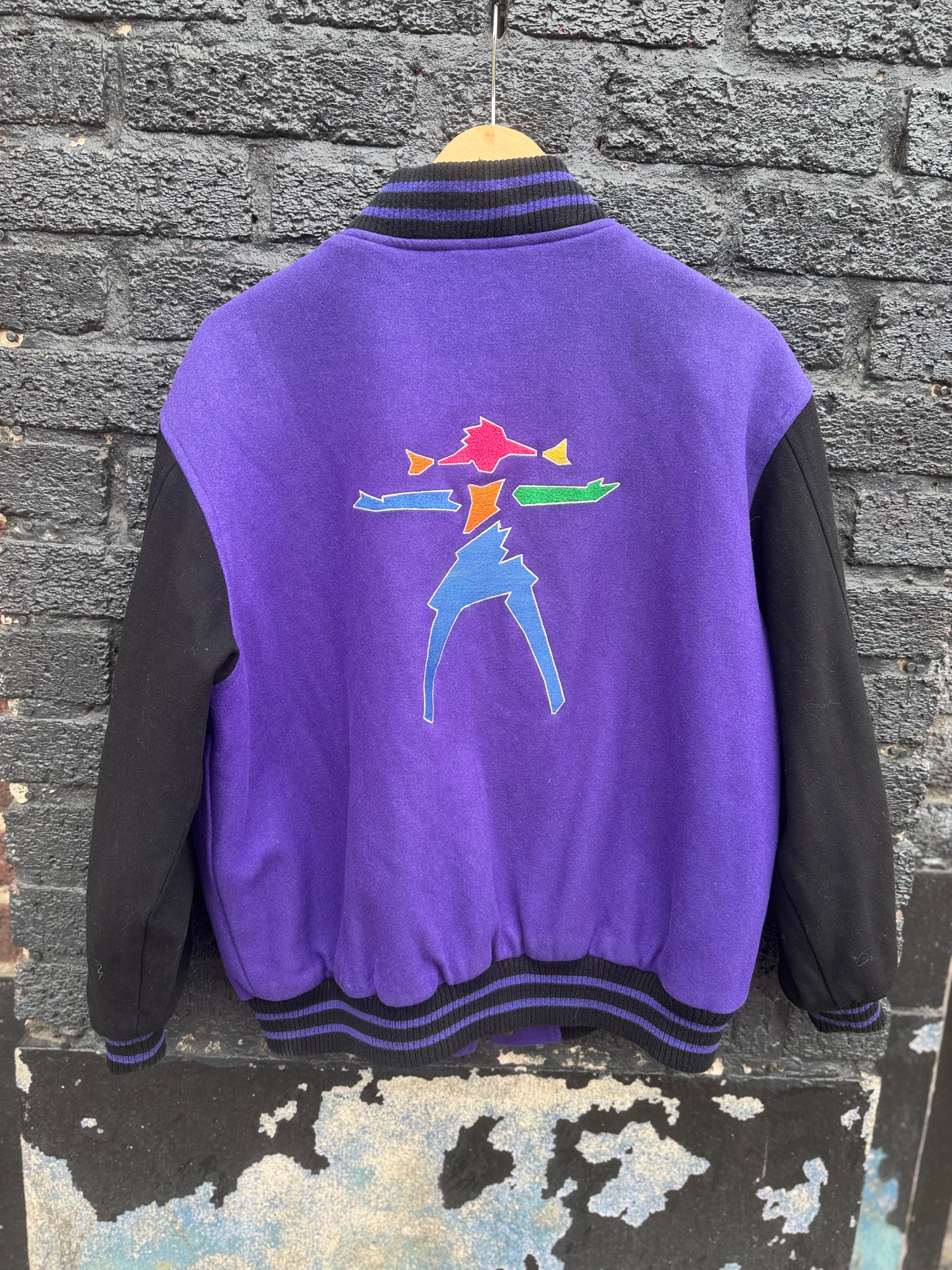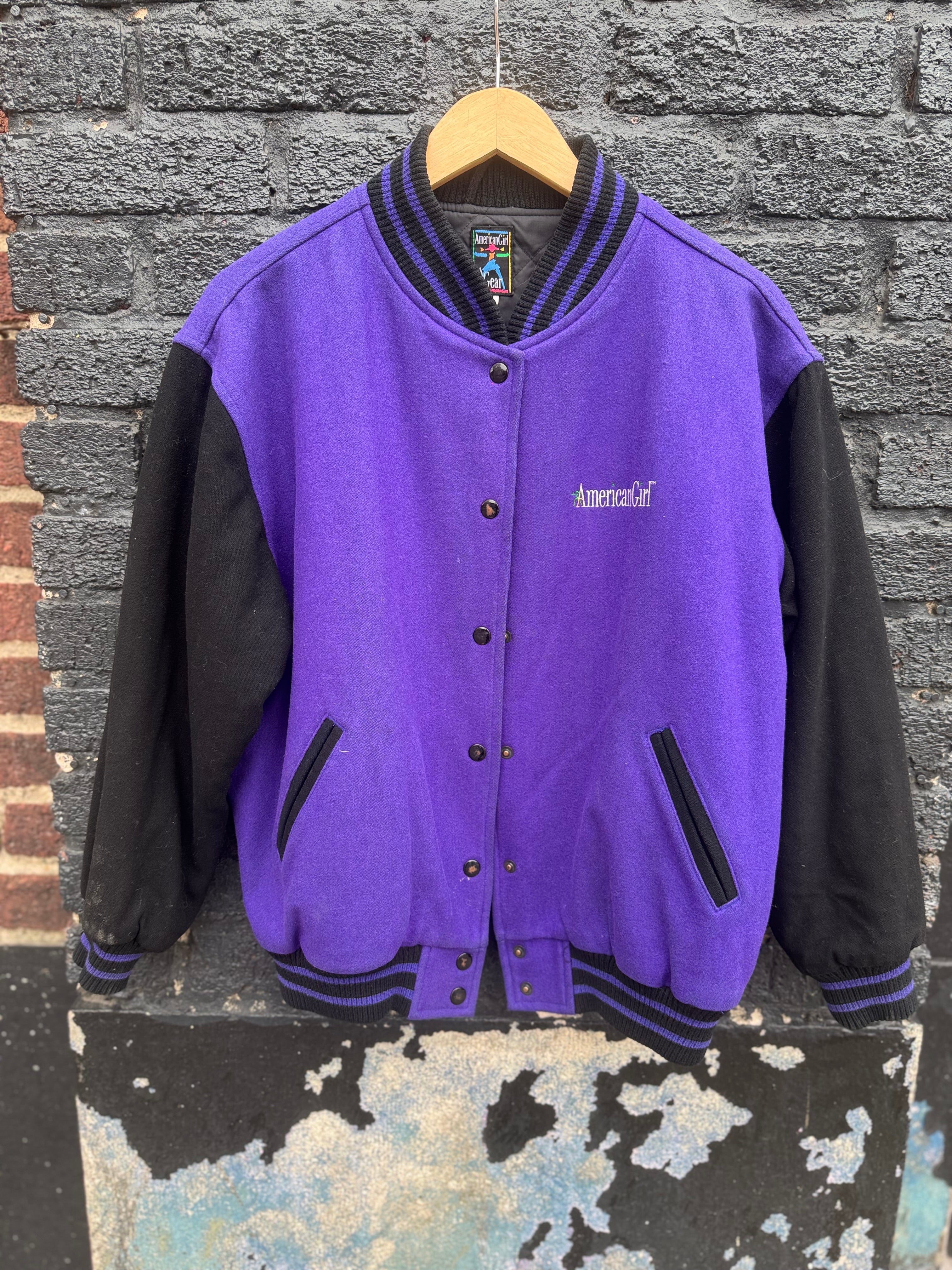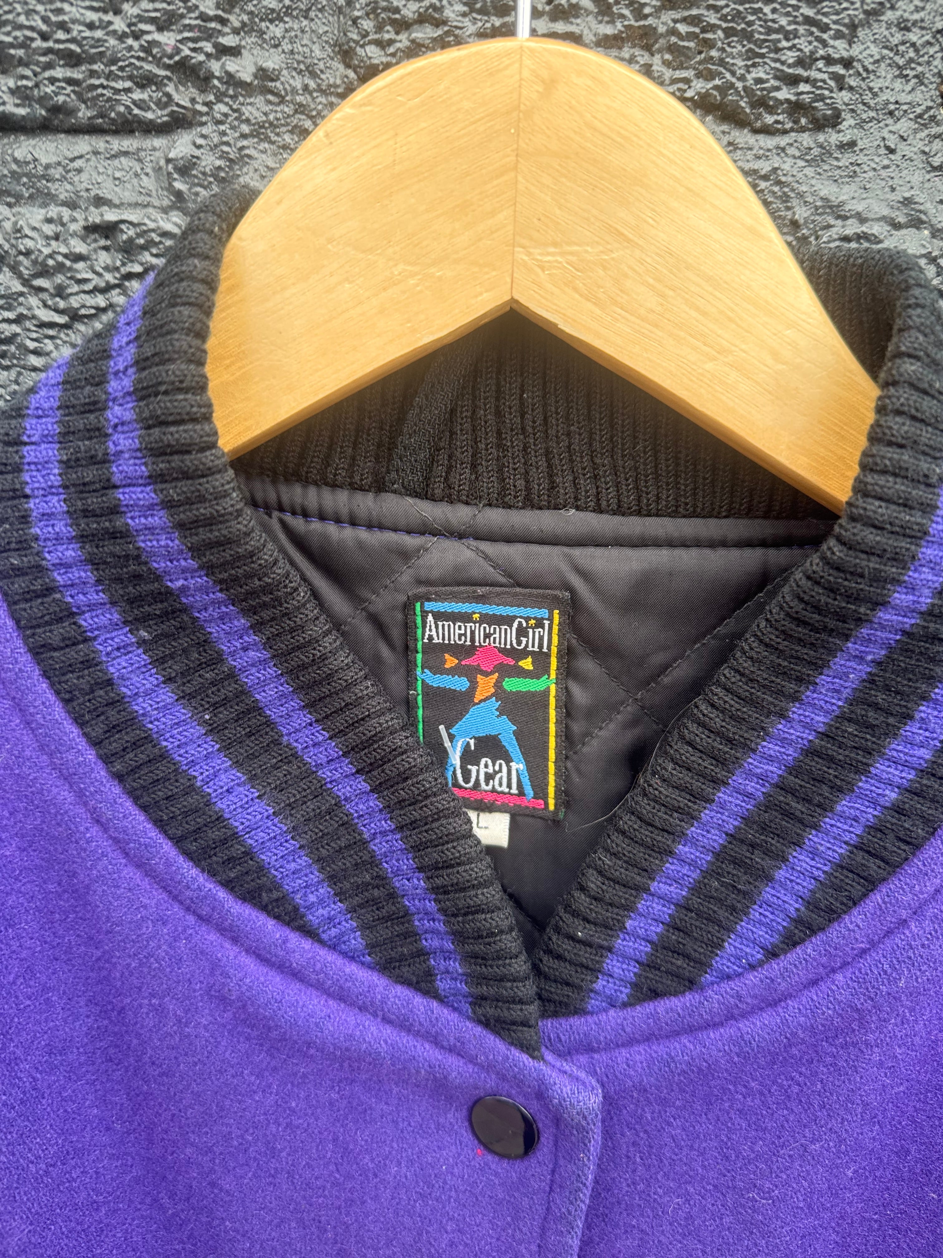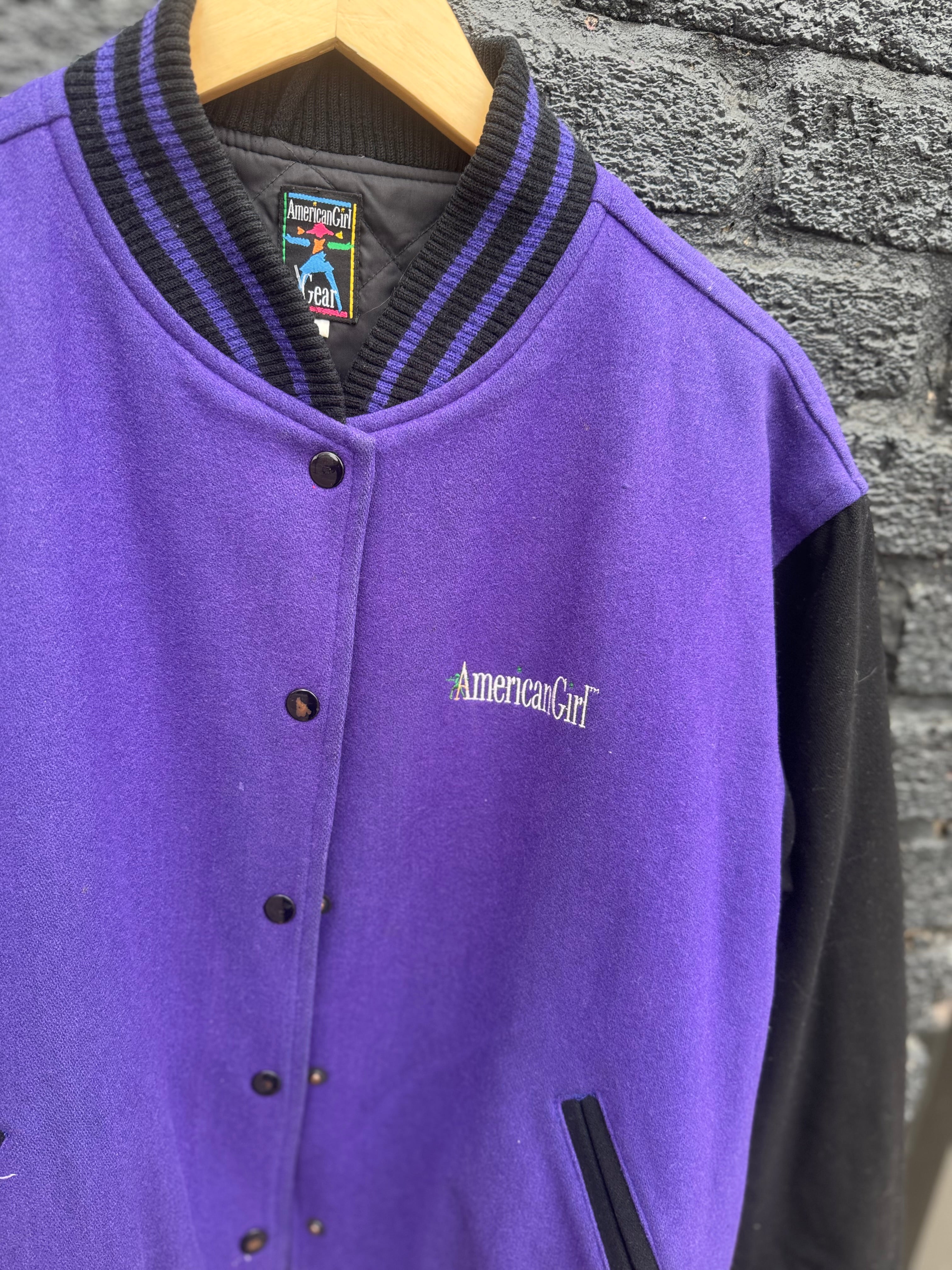 Vintage 90s American Girl Gear Purple & Black Wool Varsity Jacket Size Youth L