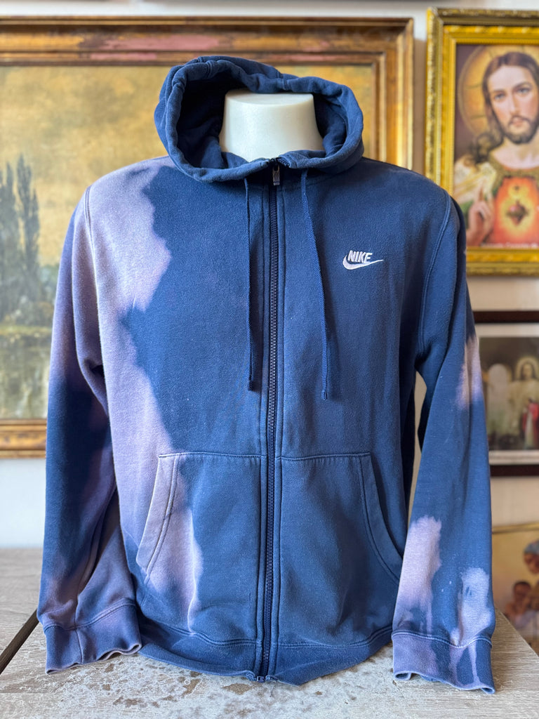 Nike Navy Blue Bleached Zip Up Hoodie Size Large