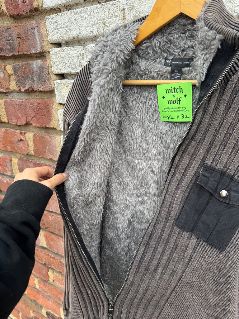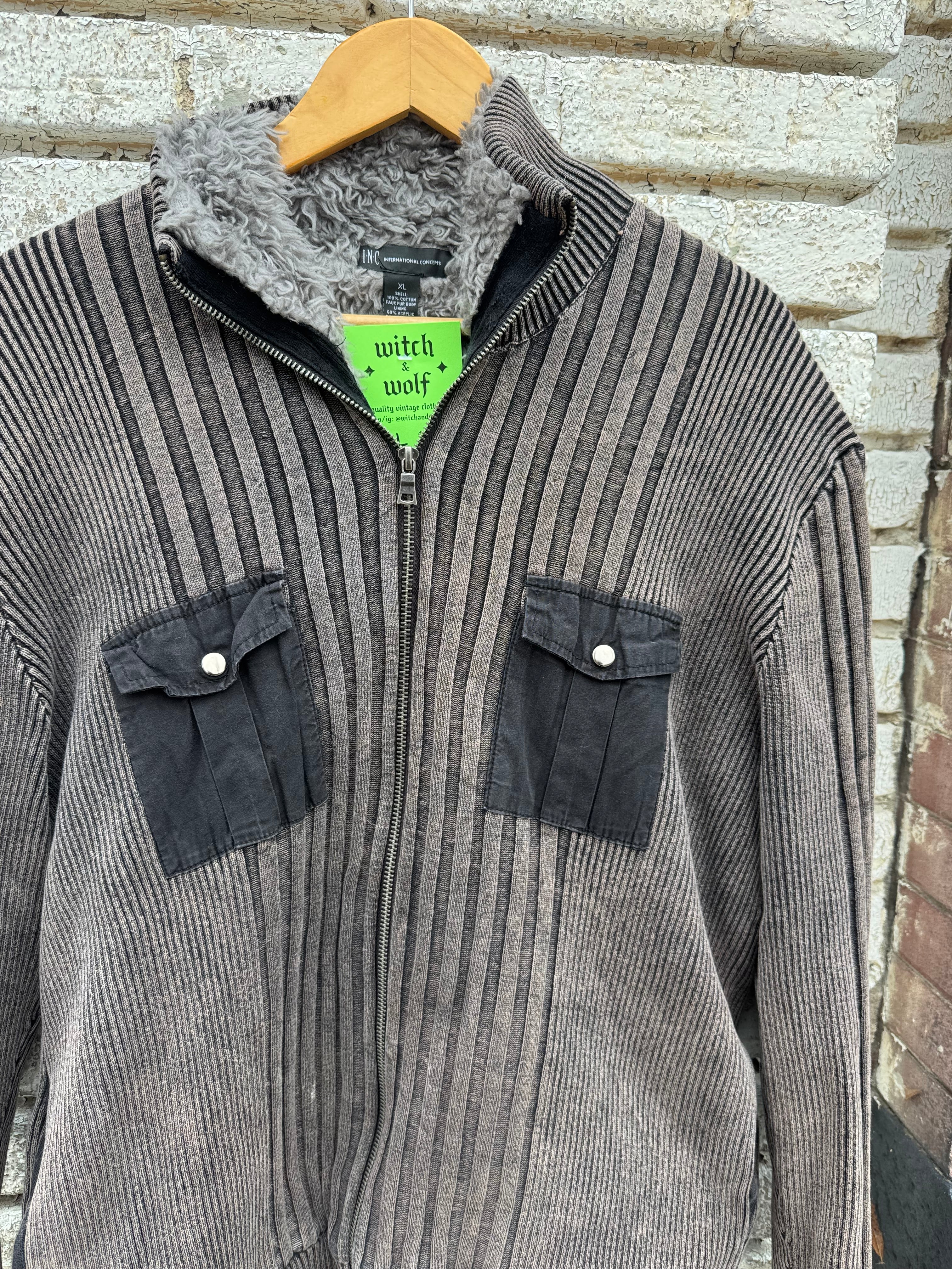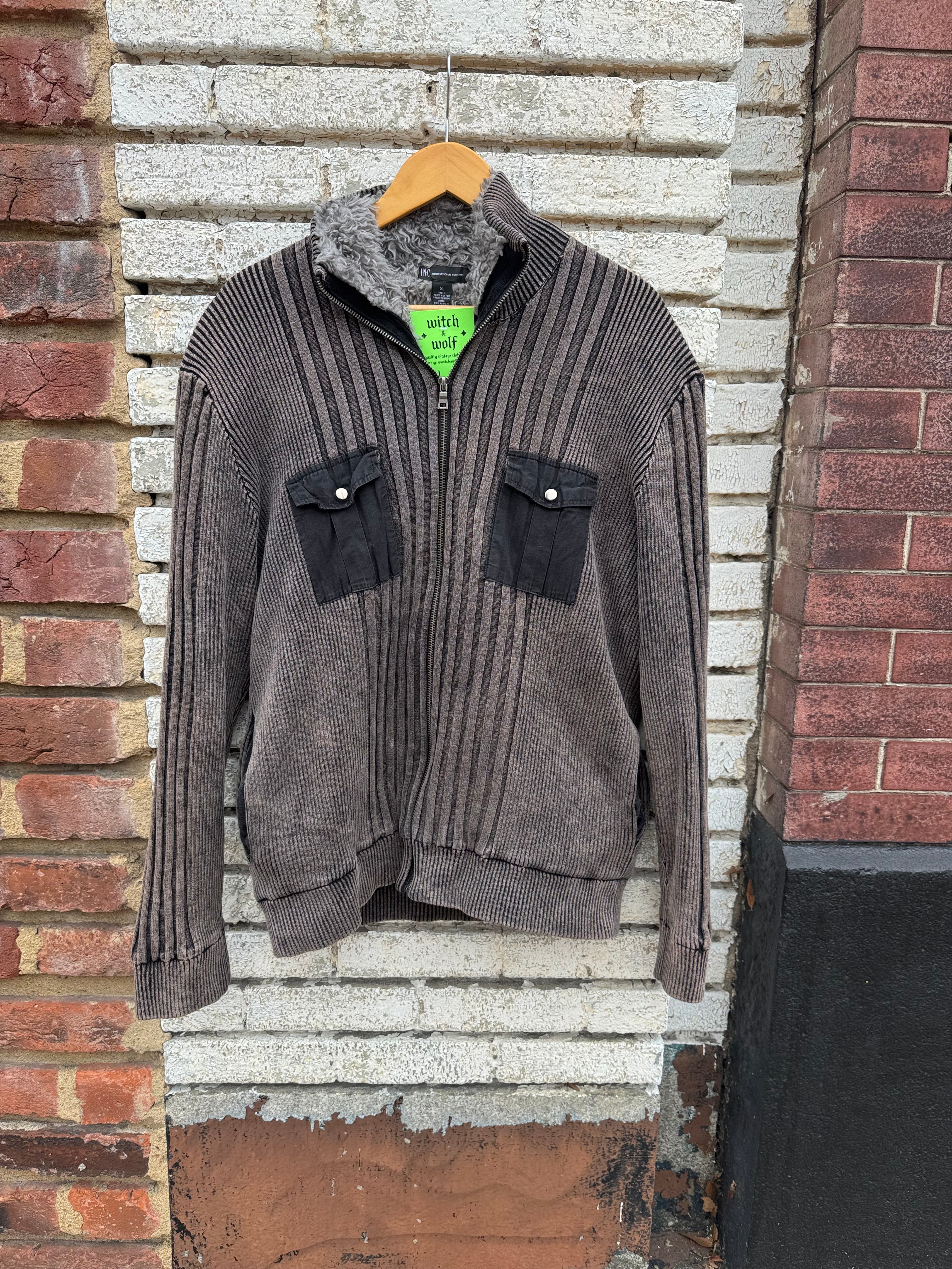 Y2K Ribbed Sherpa Lined Zip Up Knit Size XL