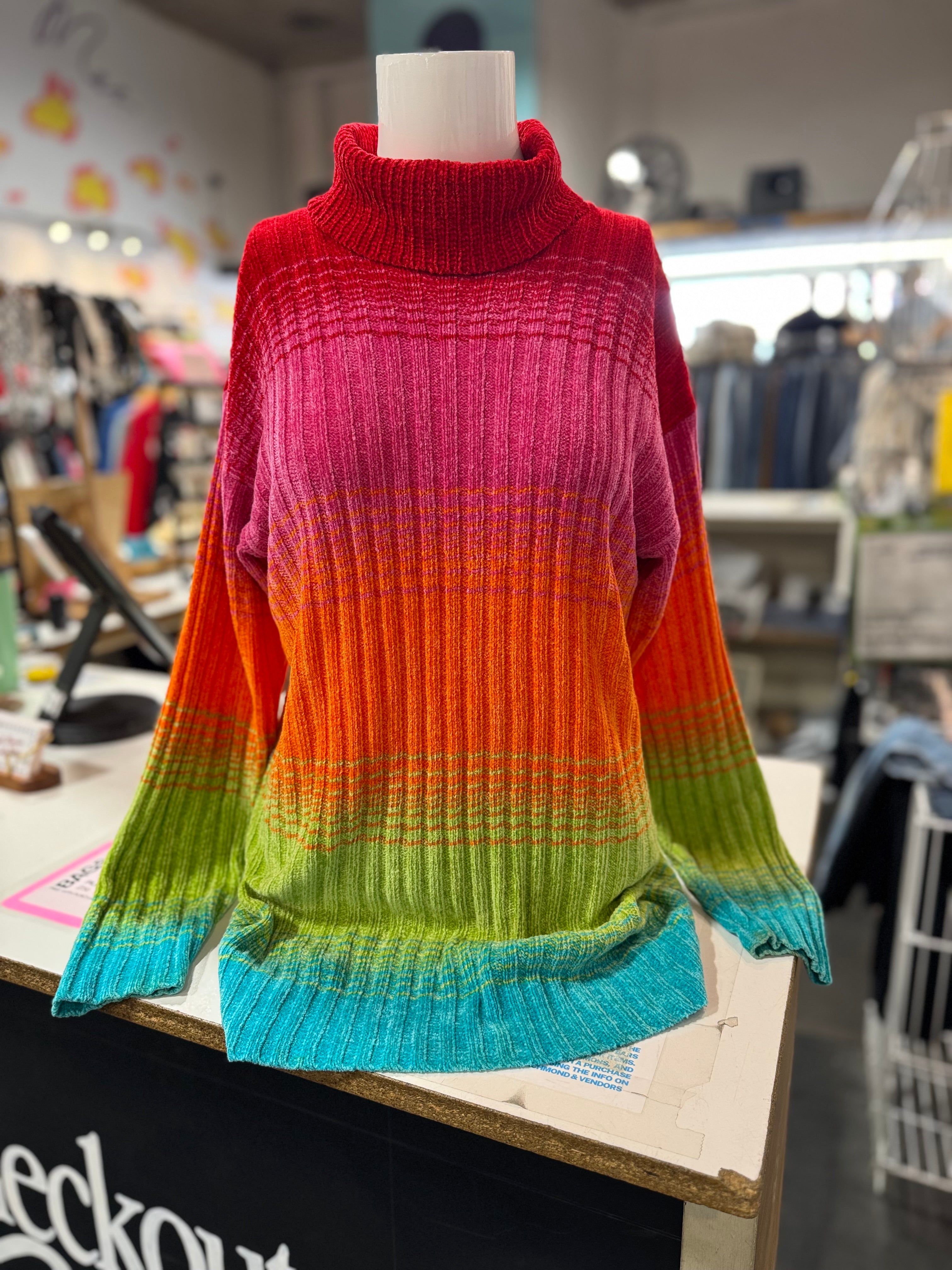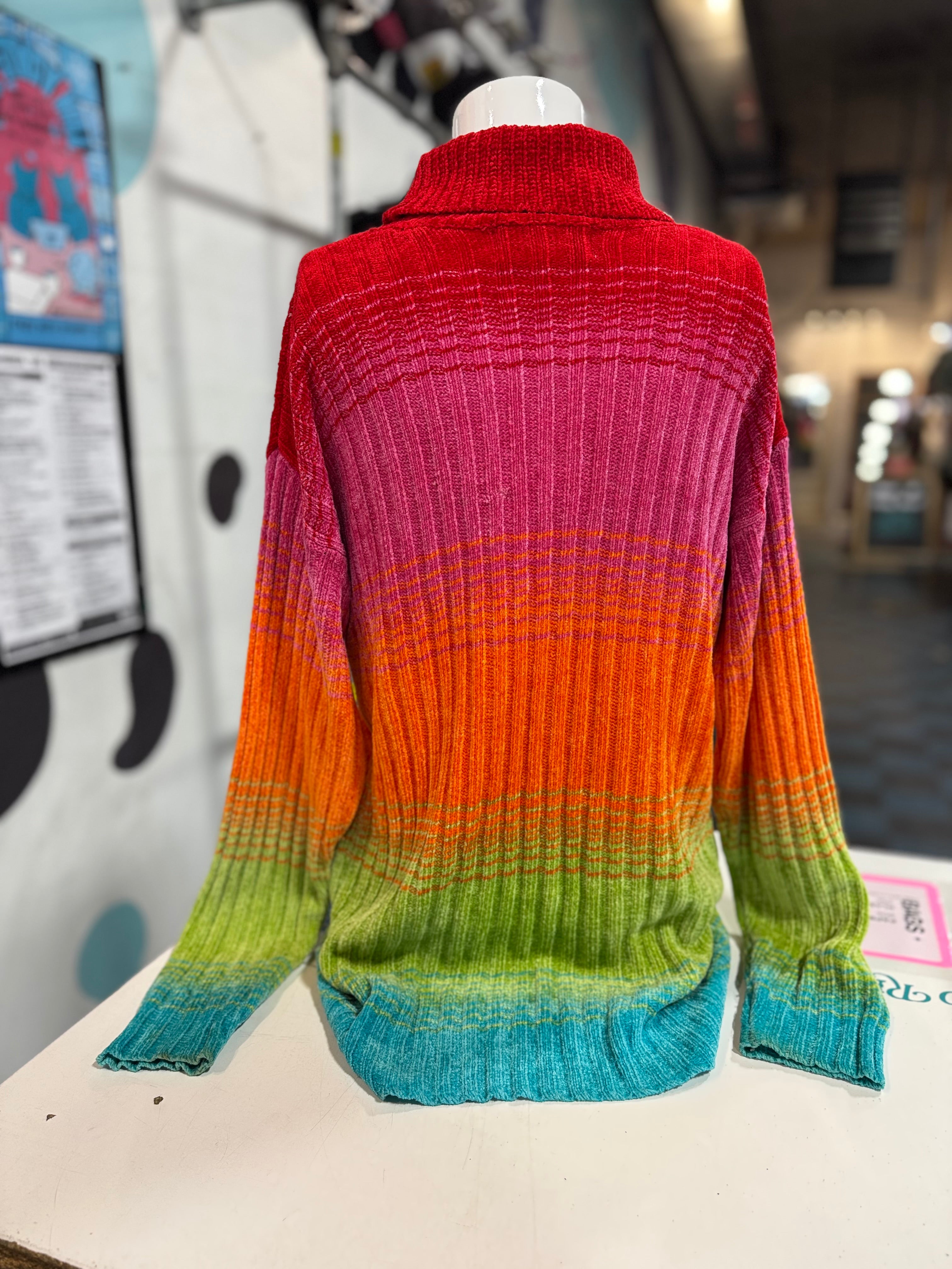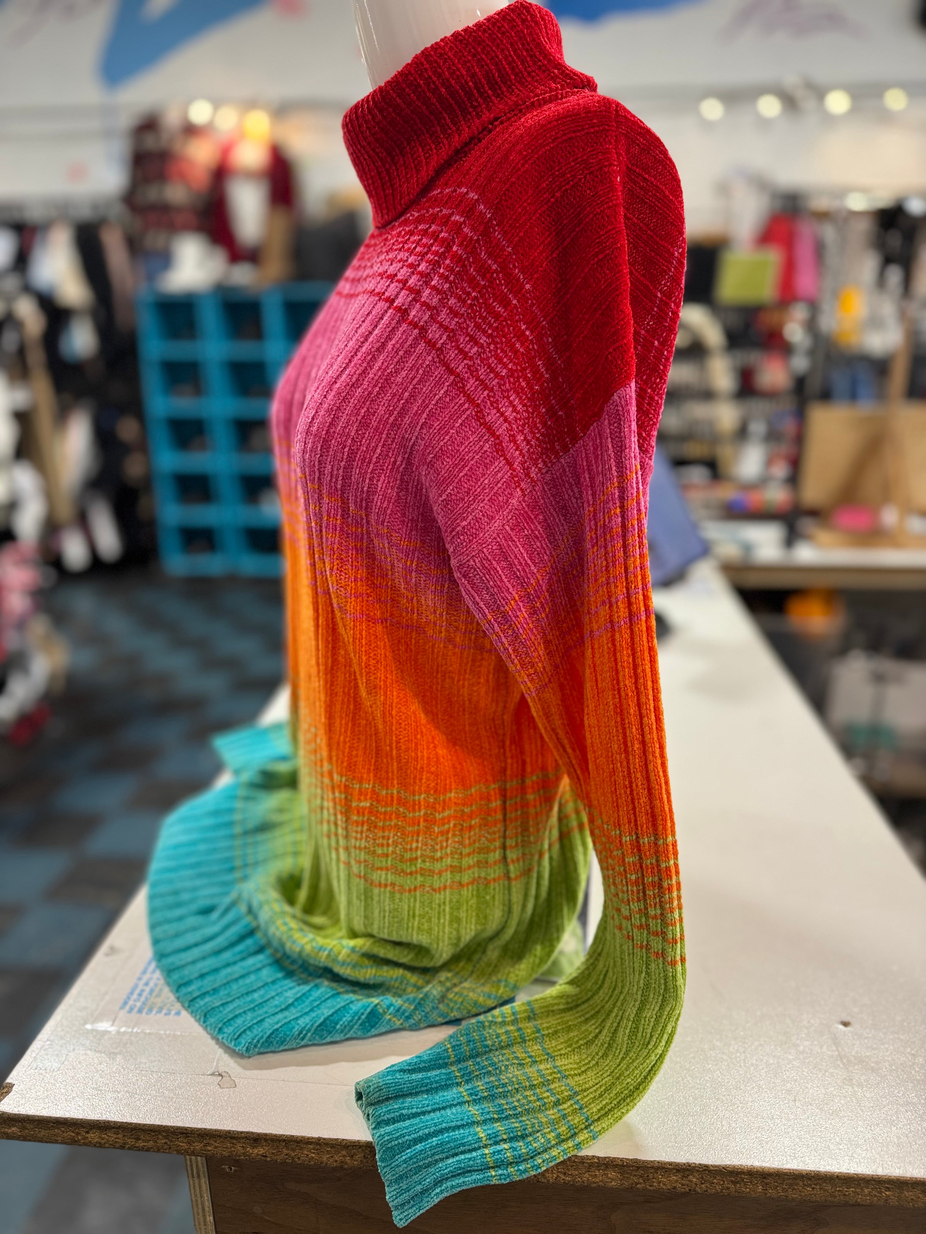 90s Rainbow Chenille Rainbow Turtle Neck Size S