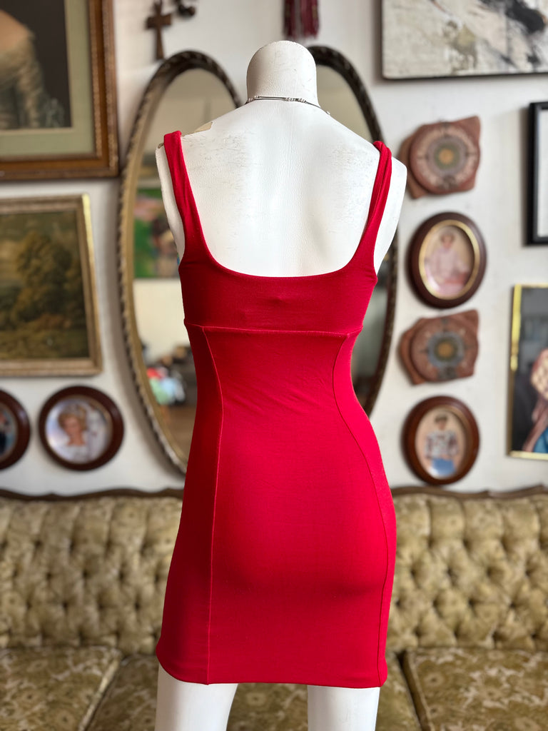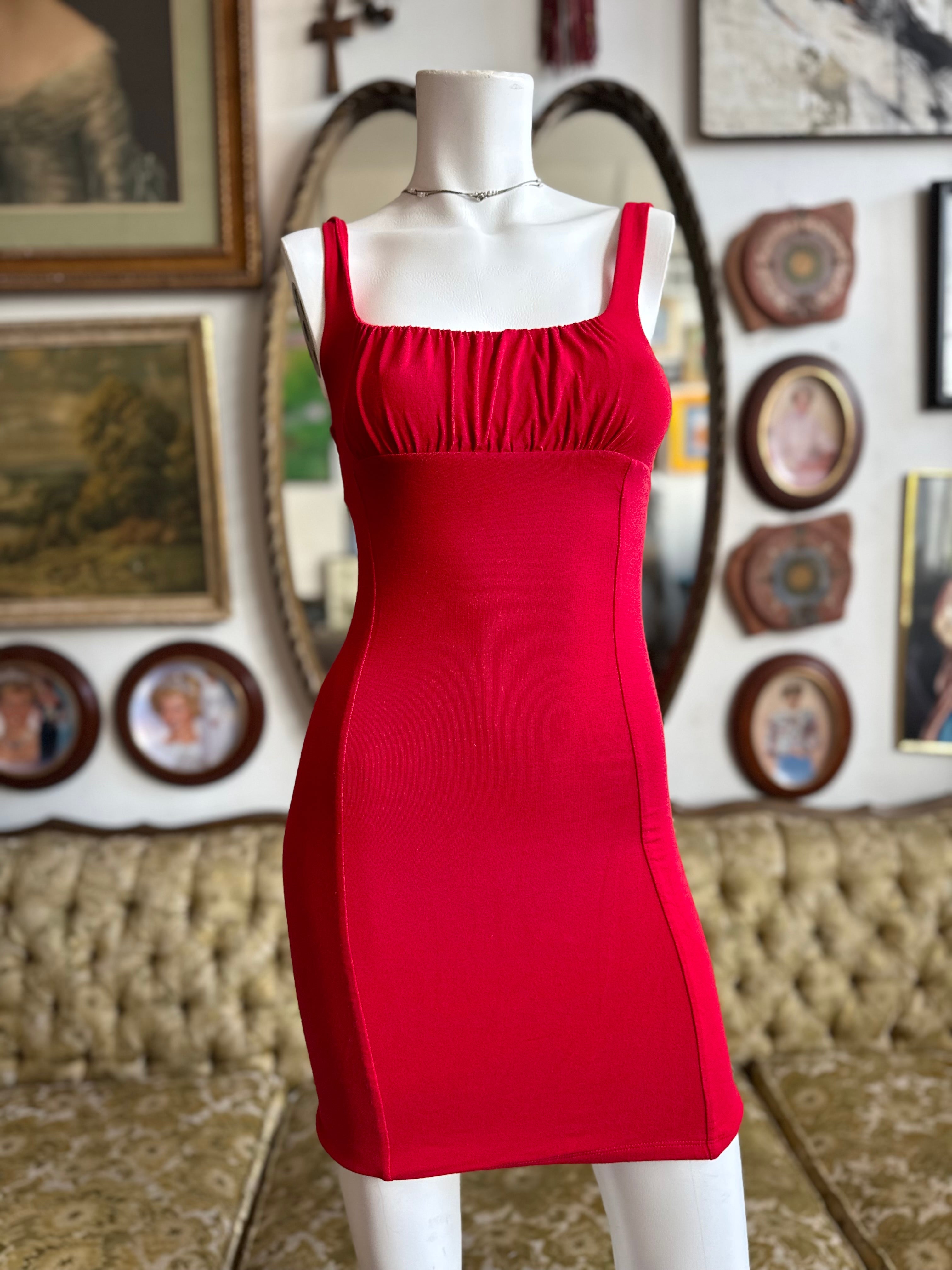 Red Bodycon Wilfred Free Orbit Mini Dress w Ruched Bust Size XS