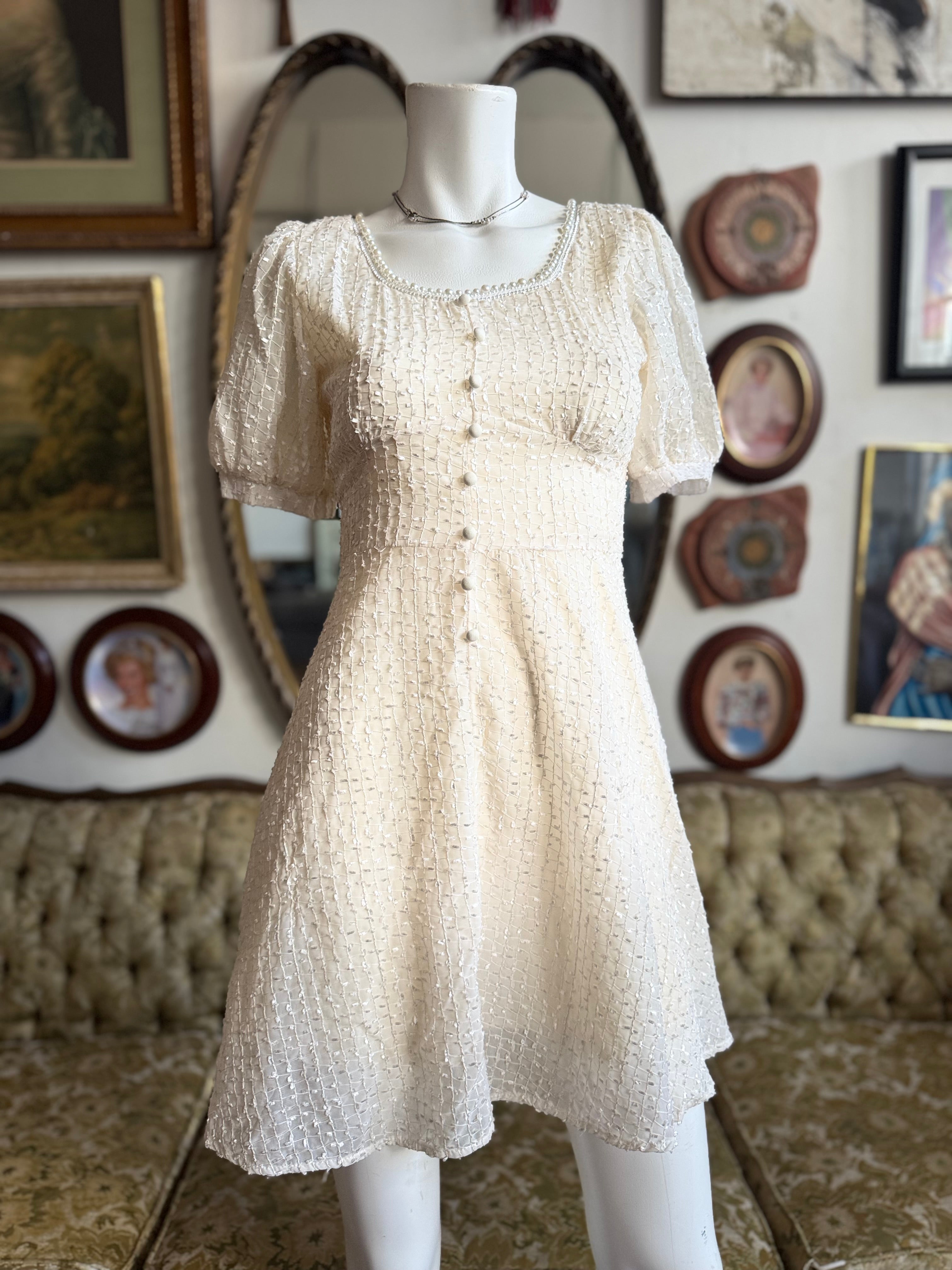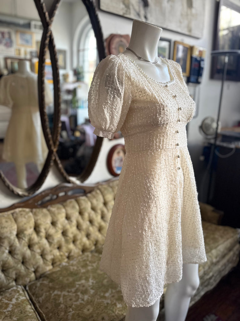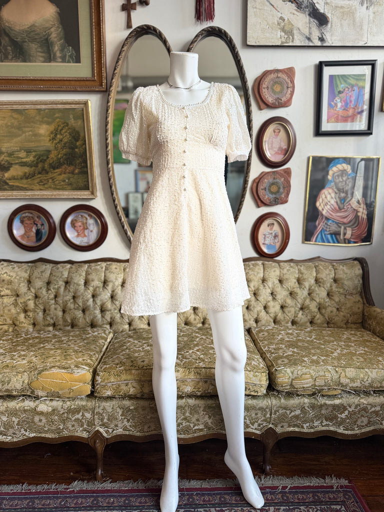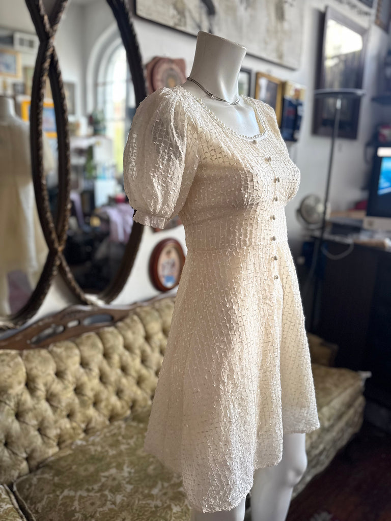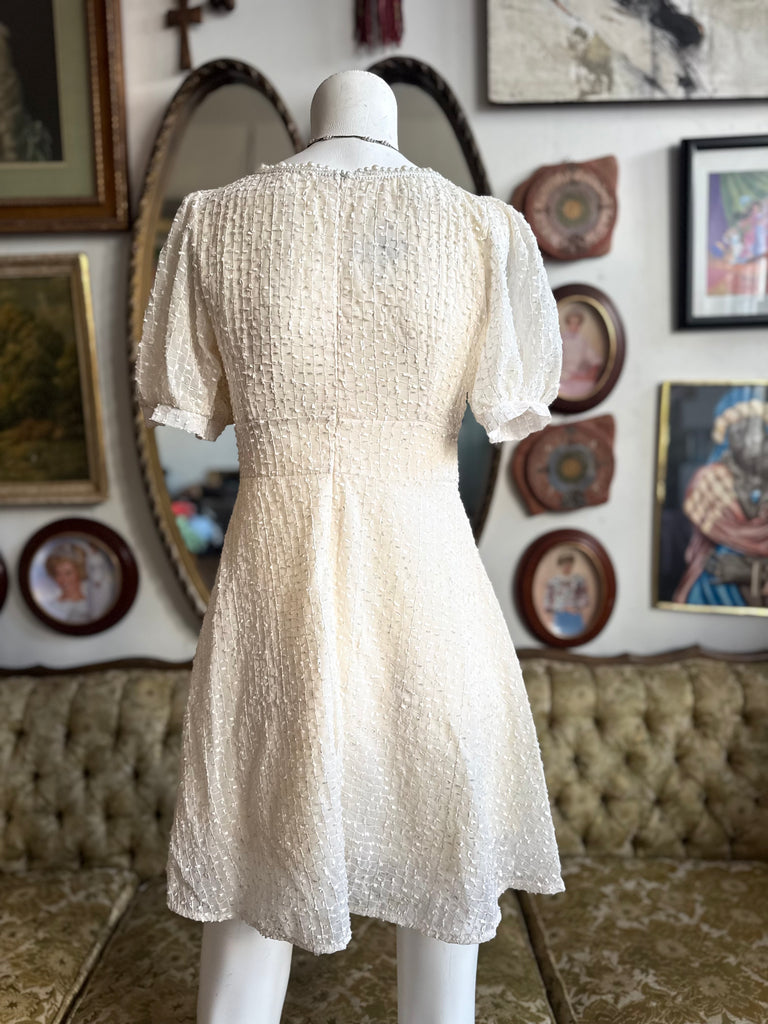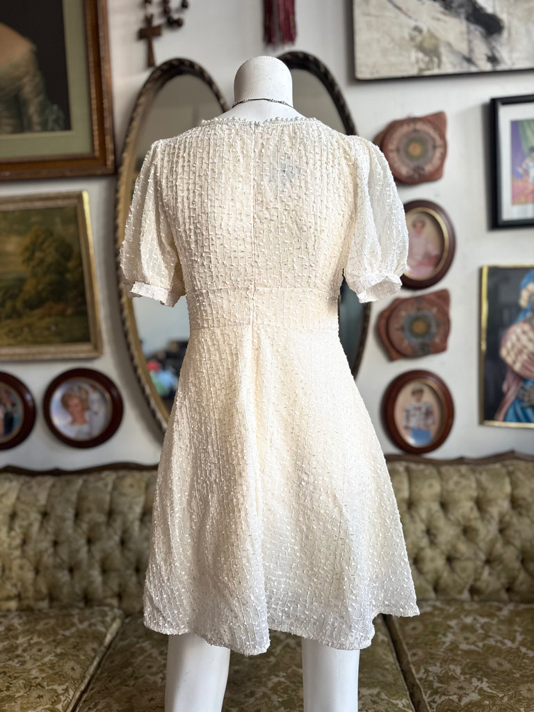 Textured Cream Puff Sleeve Mini Dress Size Medium