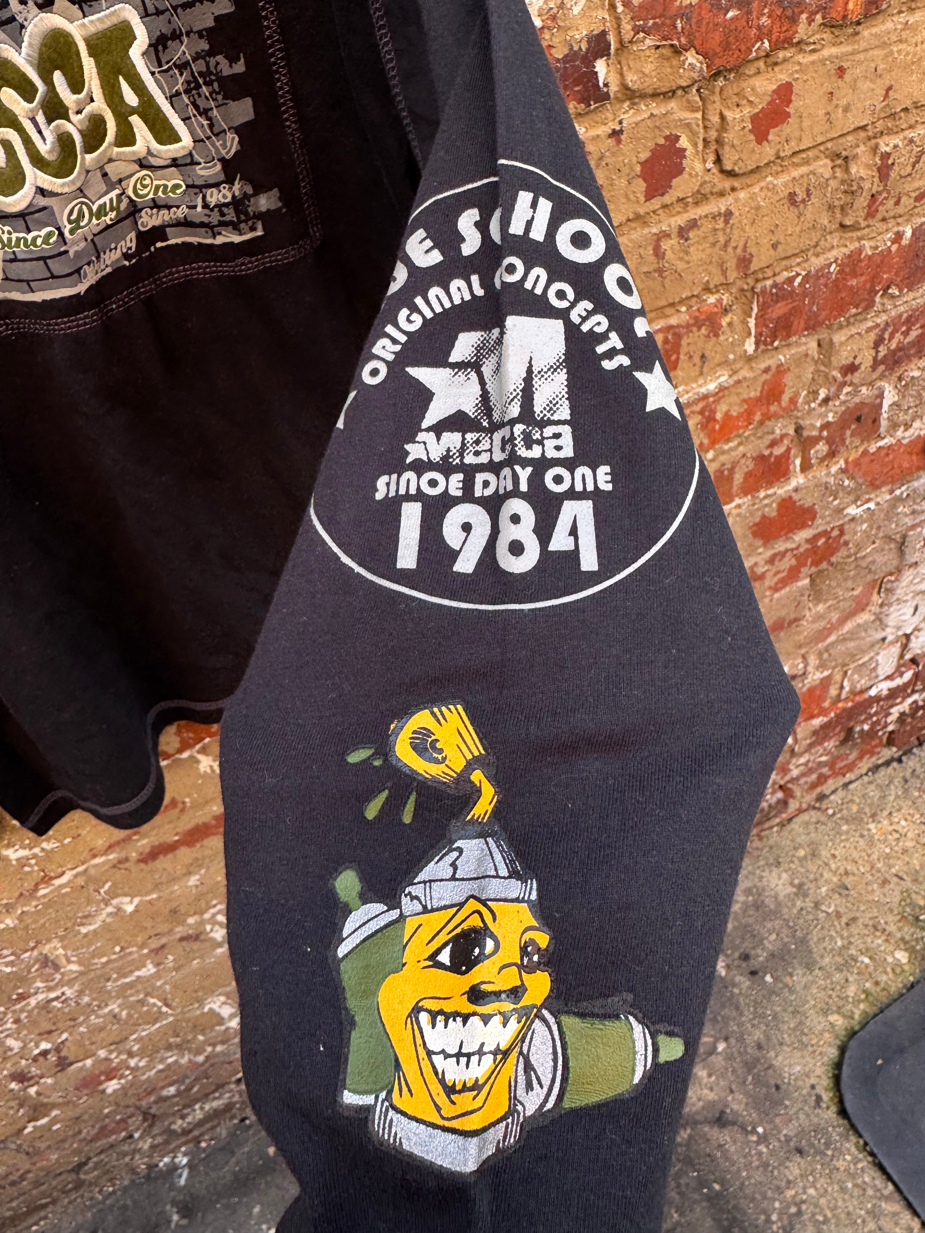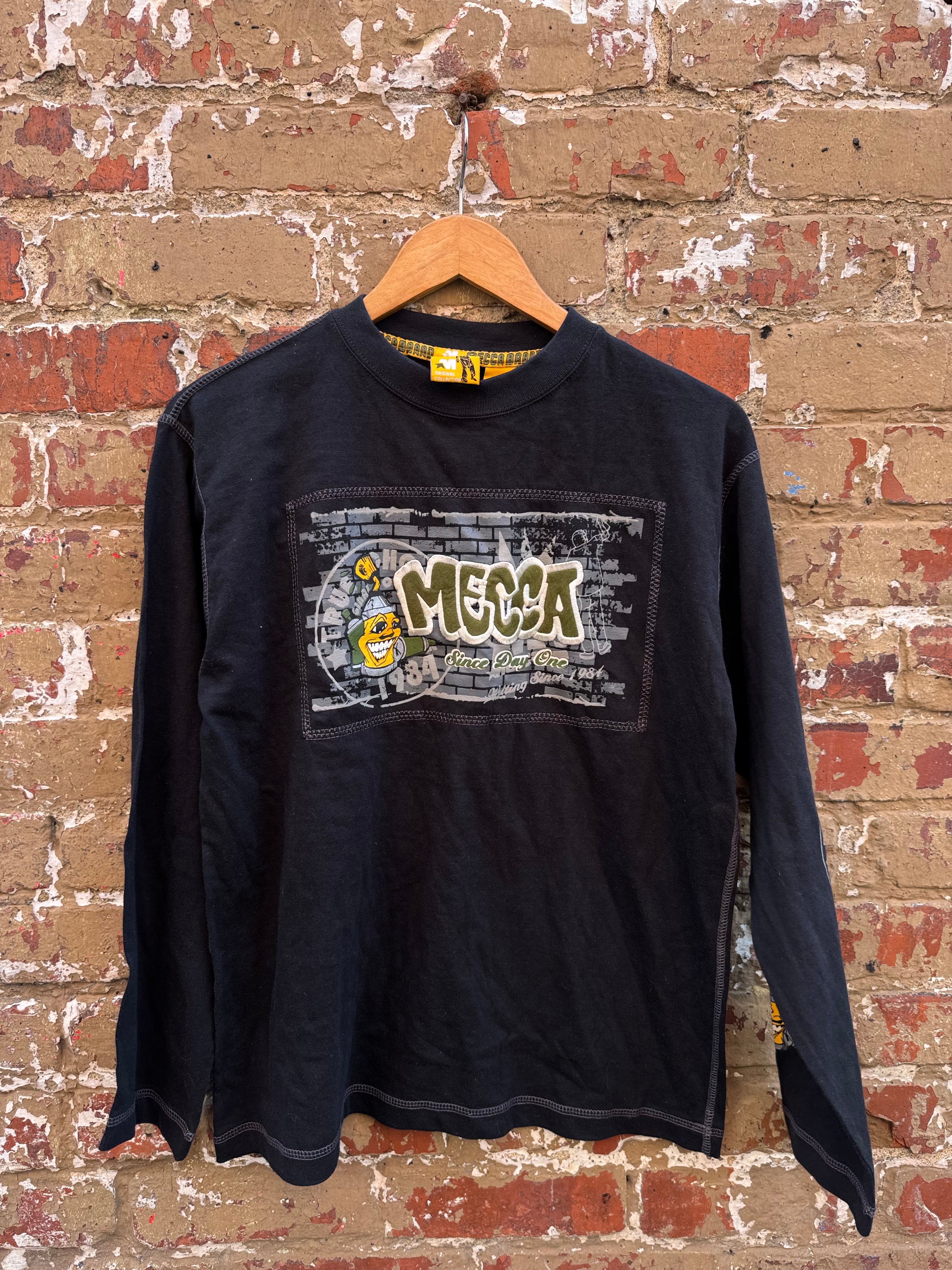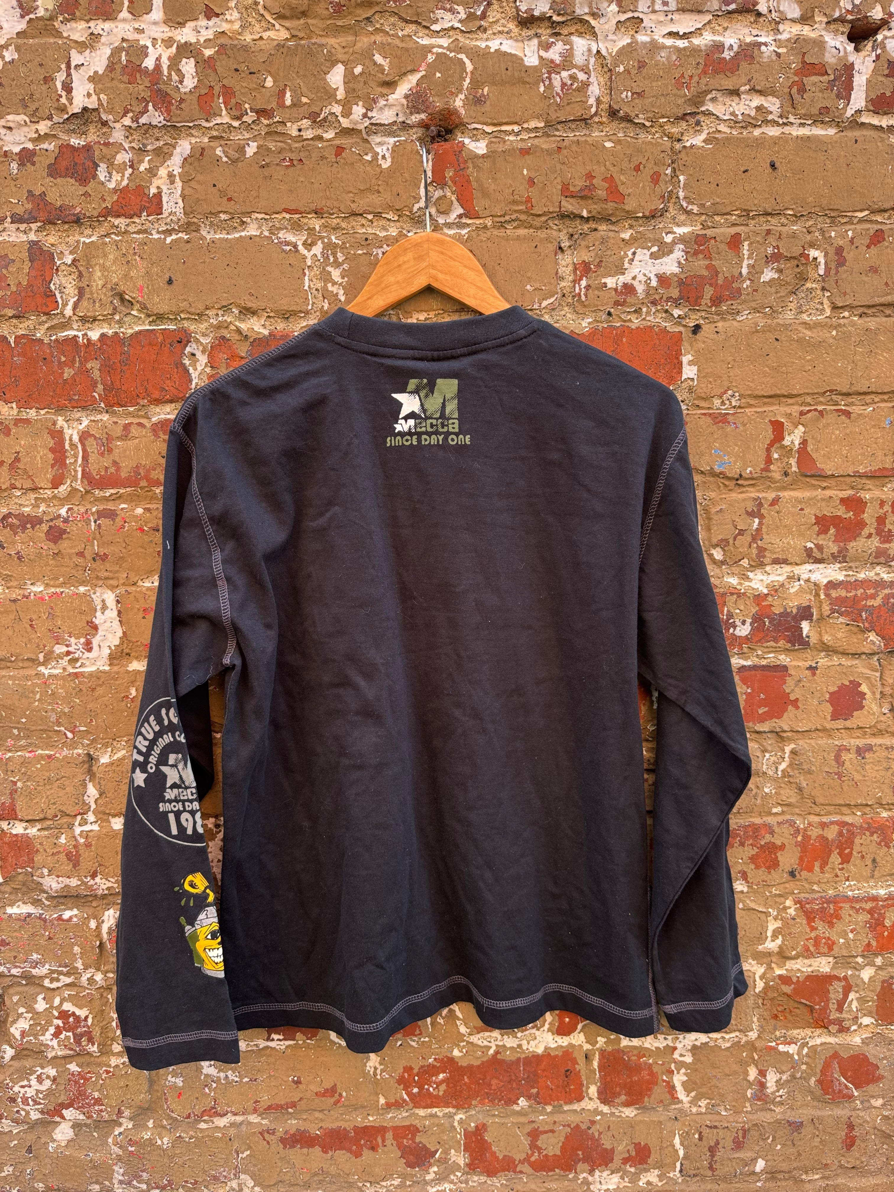 Y2k Deadstock Mecca Black Embroidered Spray Can Print Longsleeve Tee Size S