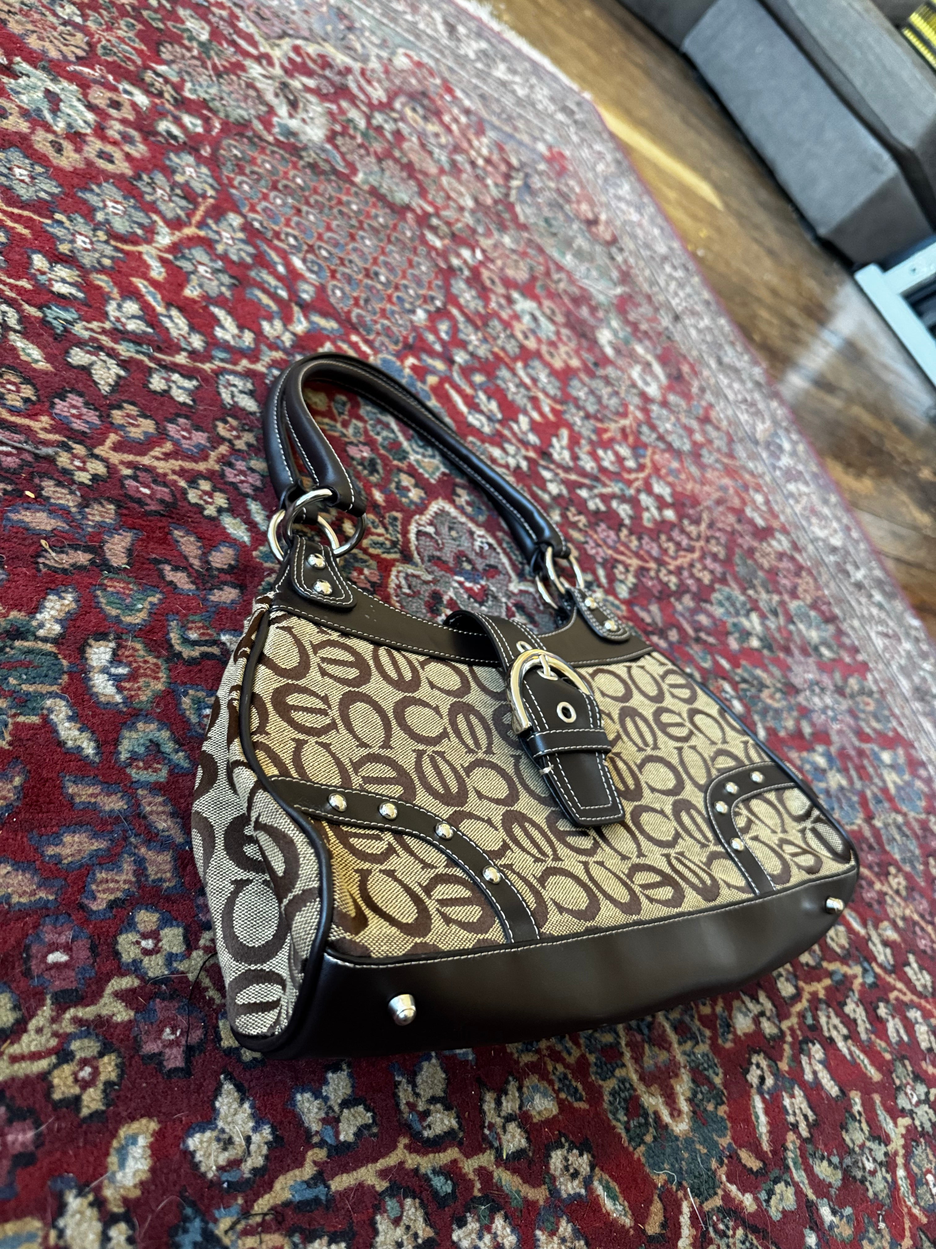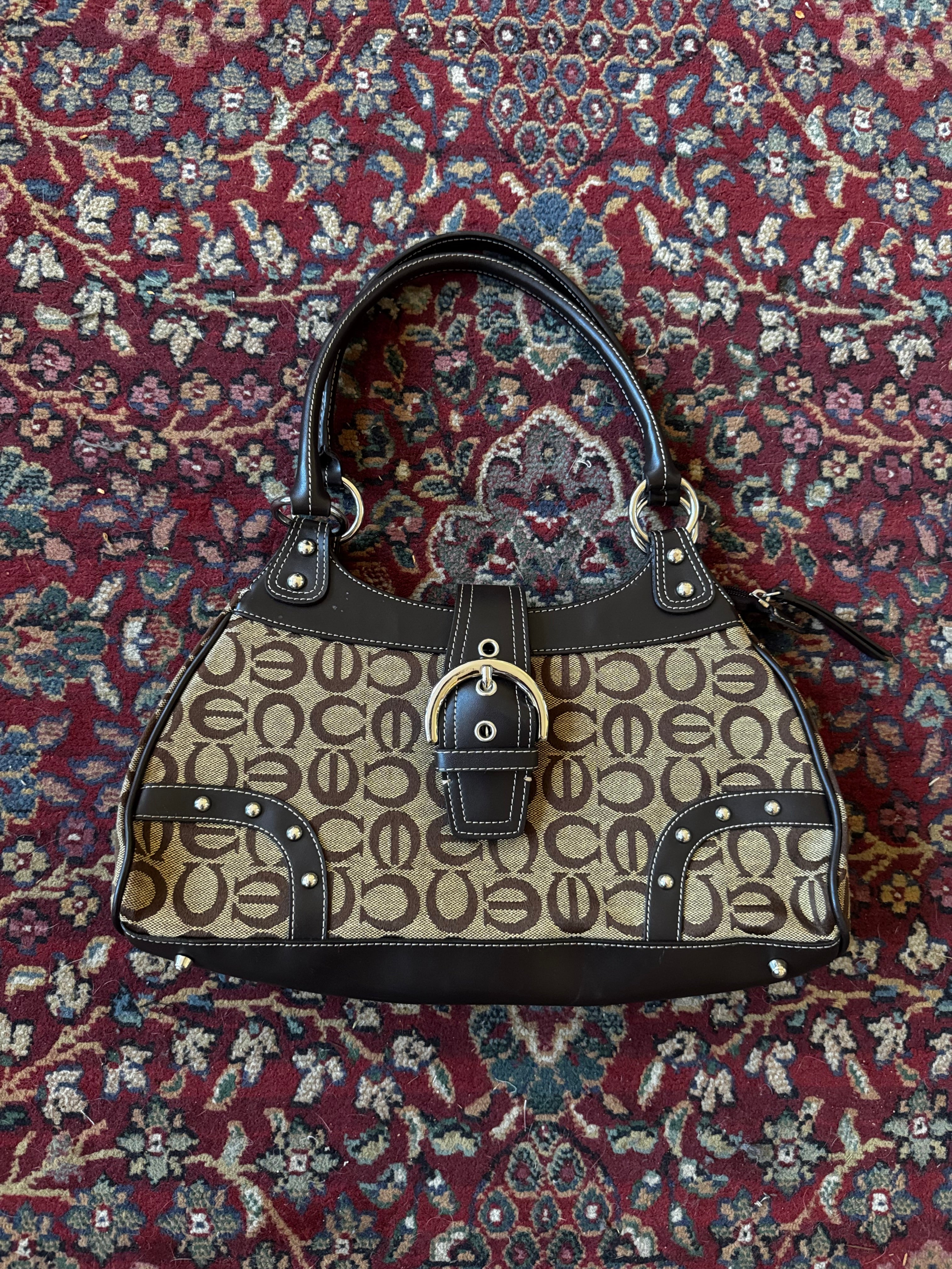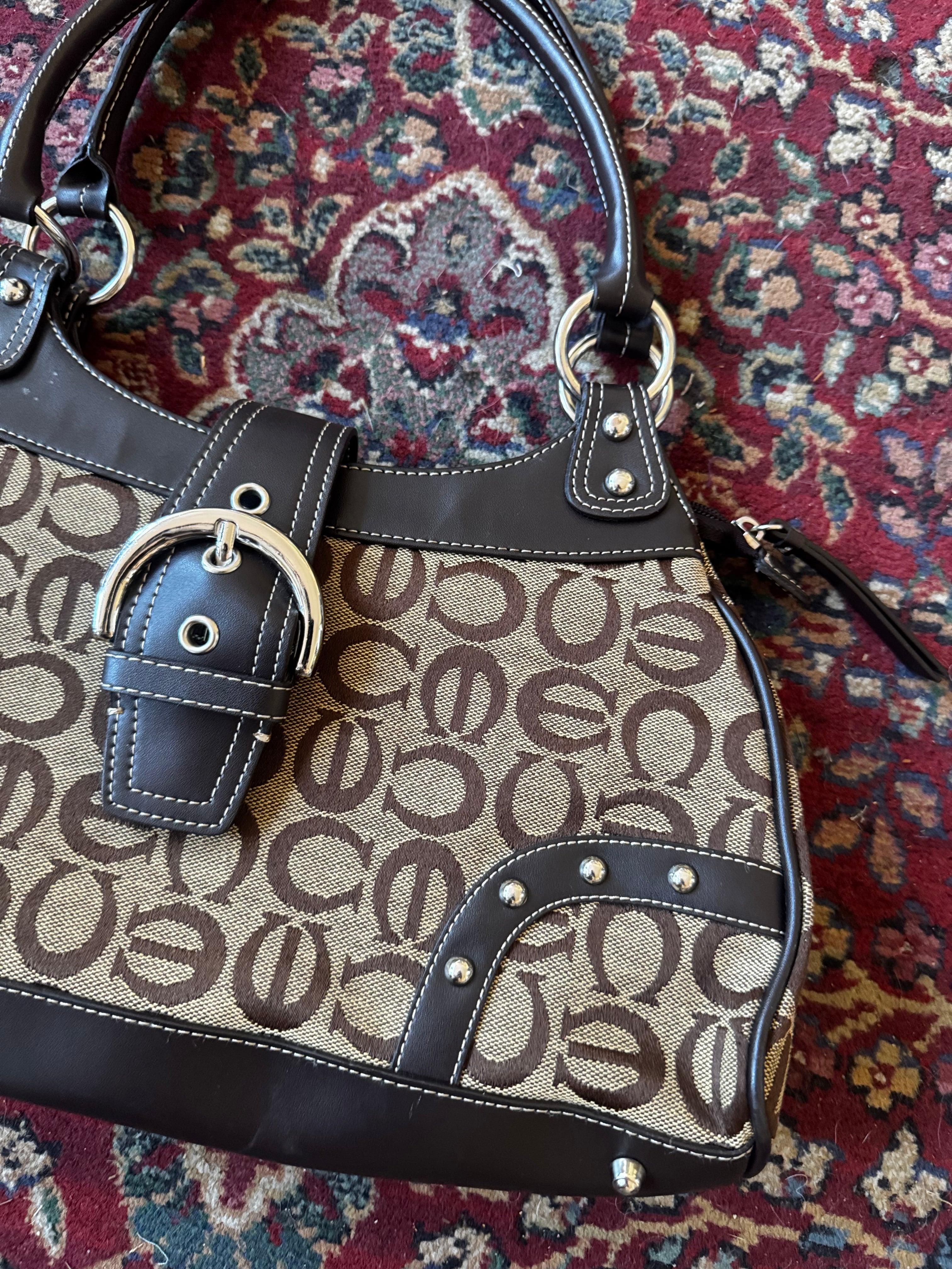 Brown & Tan Logo Buckle Shoulder Bag