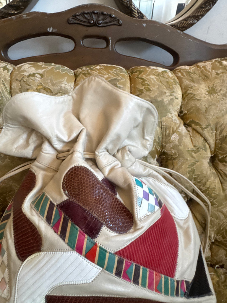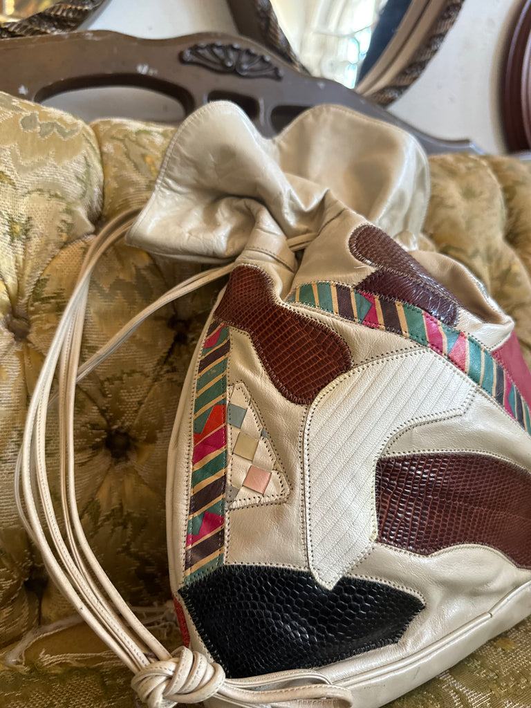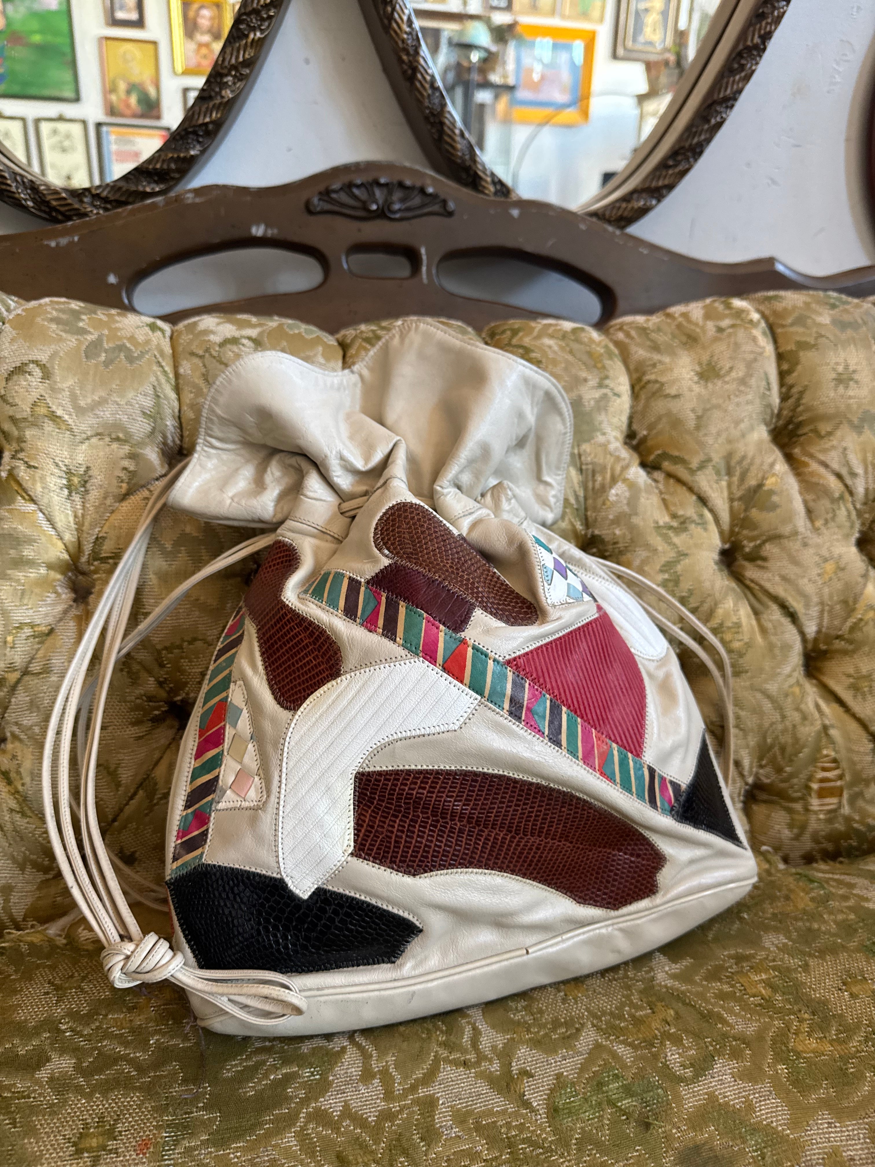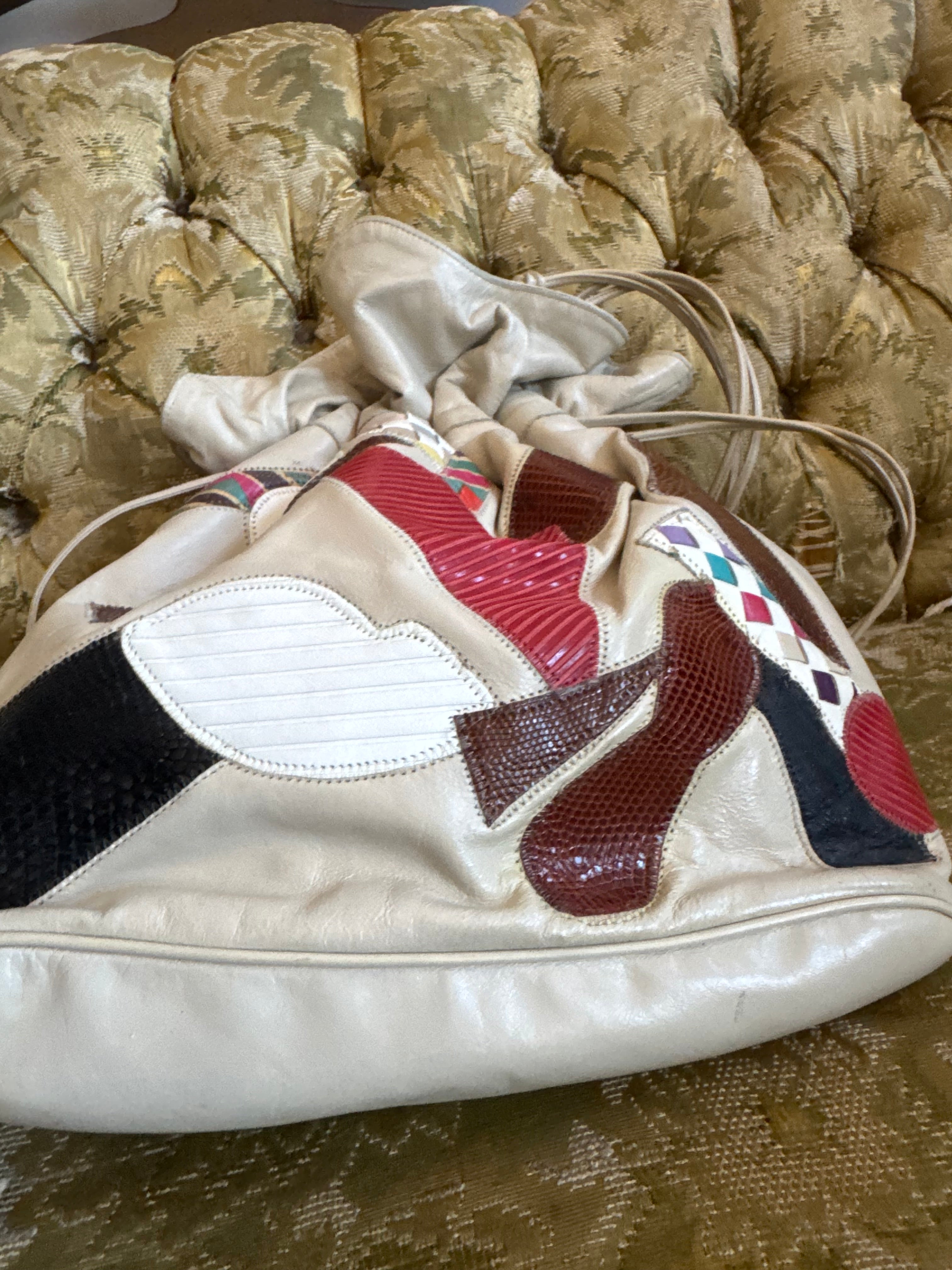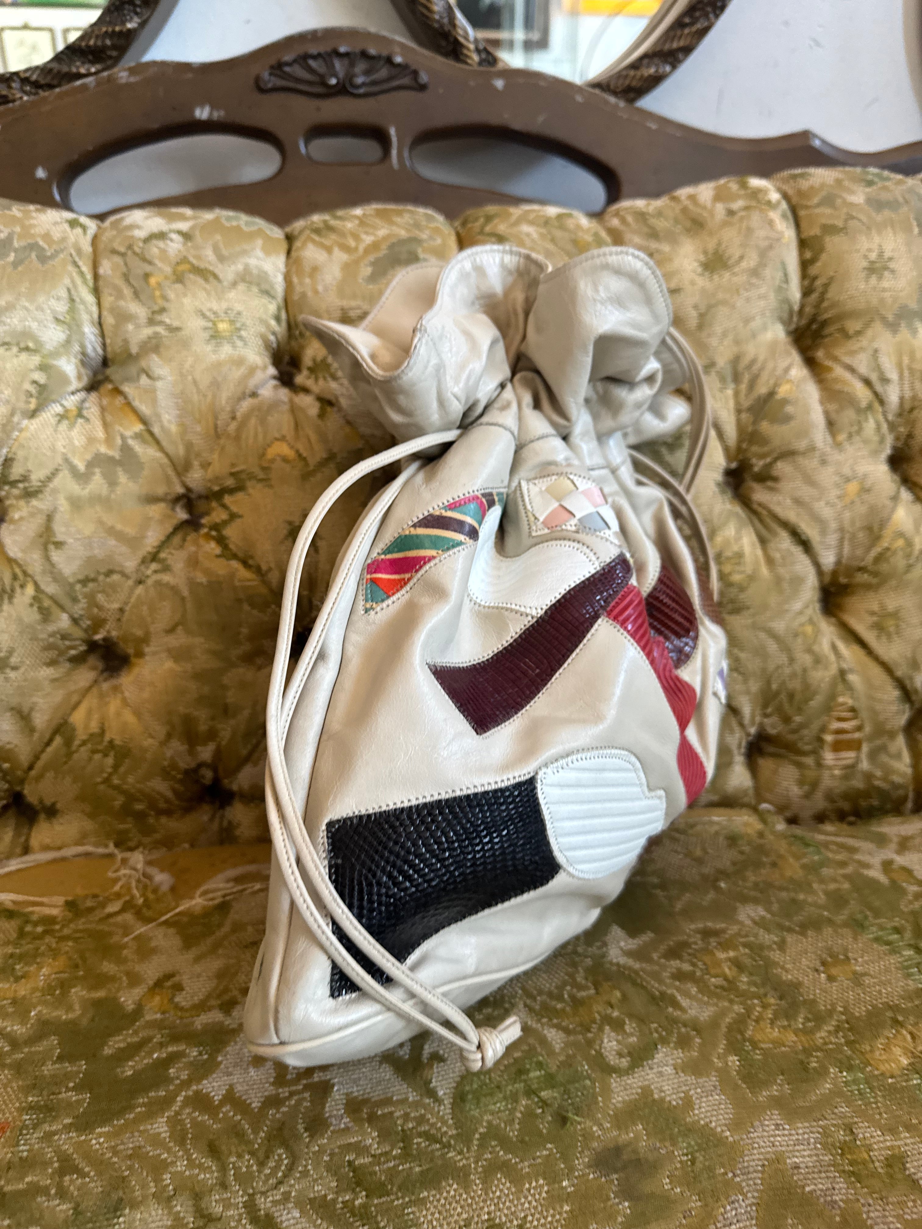 Vintage 80s Robert Bestien Cream Leather Abstract Patchwork Bag