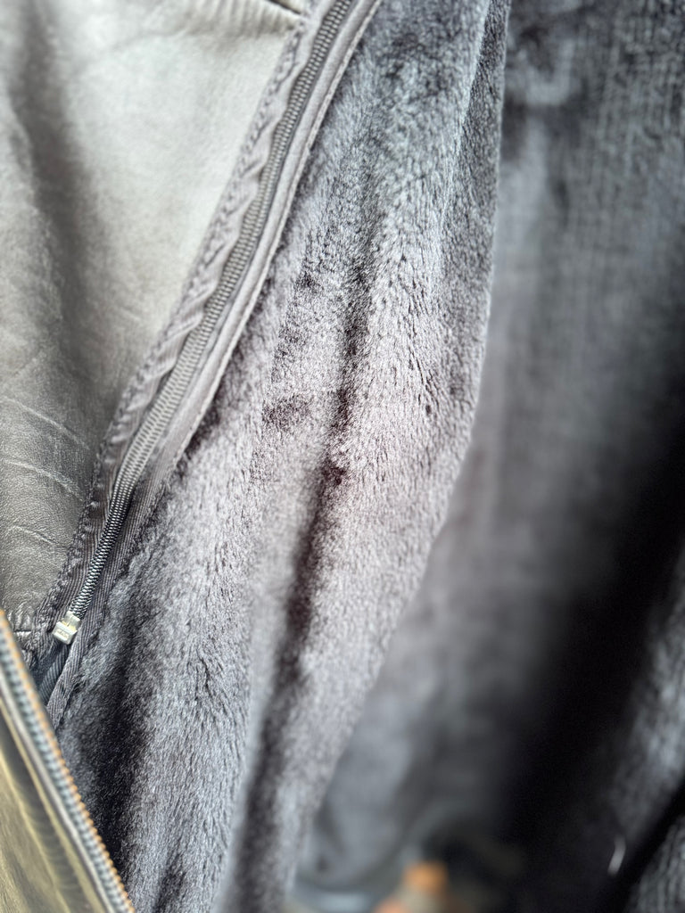 Description: vintage Nexus, New York brown leather zip up jacket. Featuring faux fur removable lining.