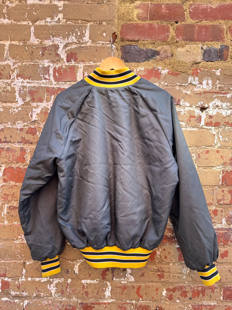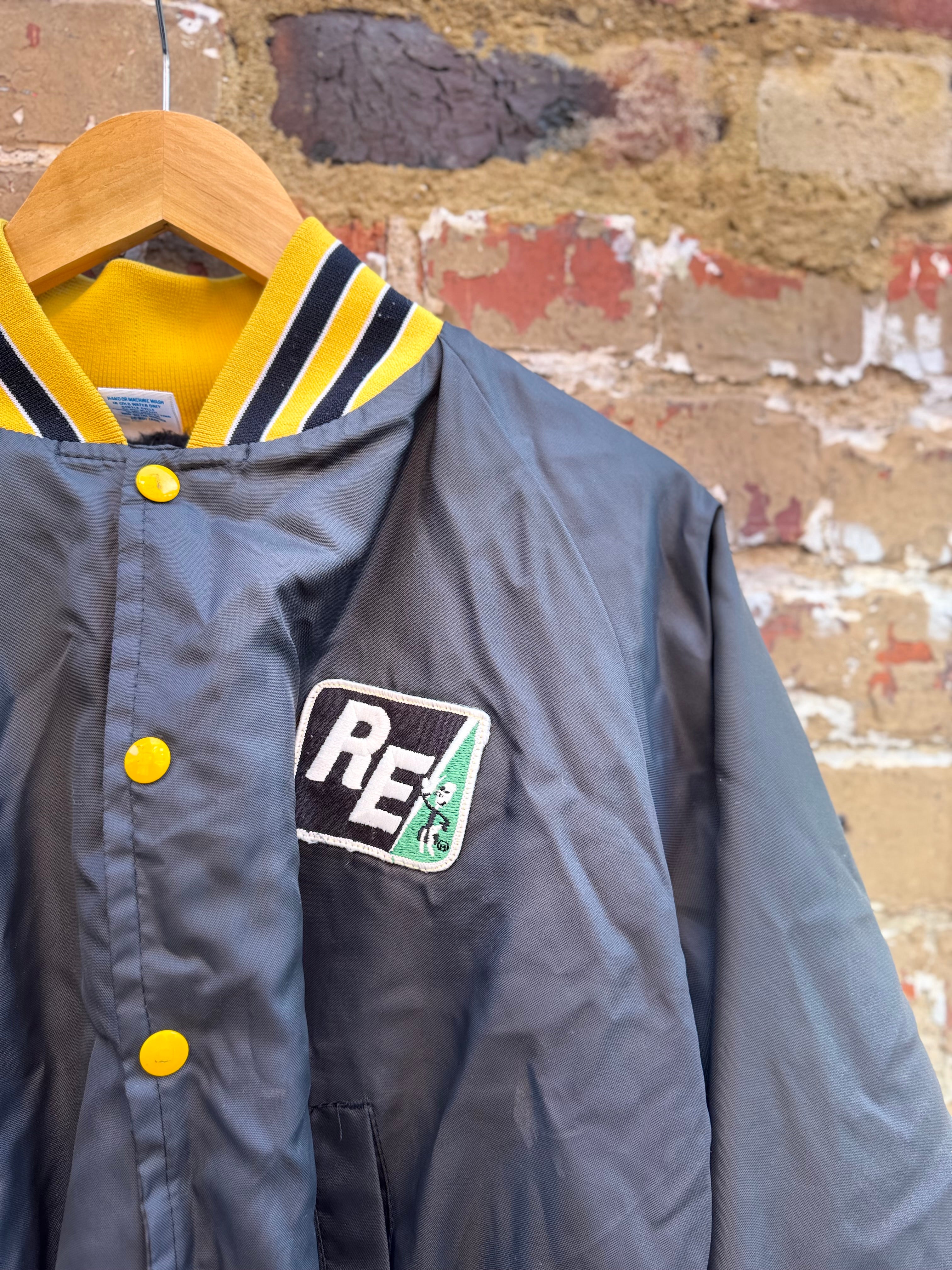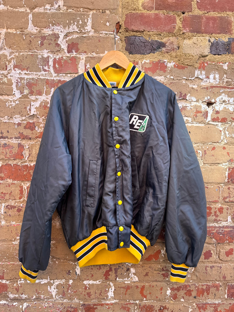 80s Rare Yellow and Black Varsity Snap Button Nylon Jacket Mens Large