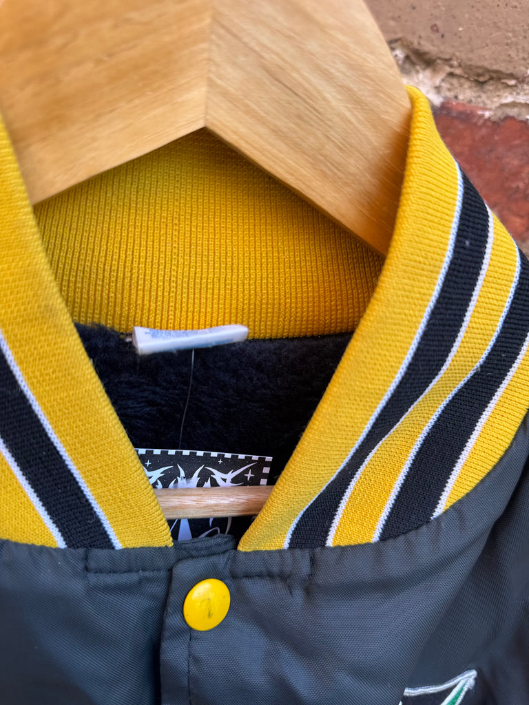 80s Vintage Yellow and Black Varsity Snap Button Nylon Jacket Mens Large