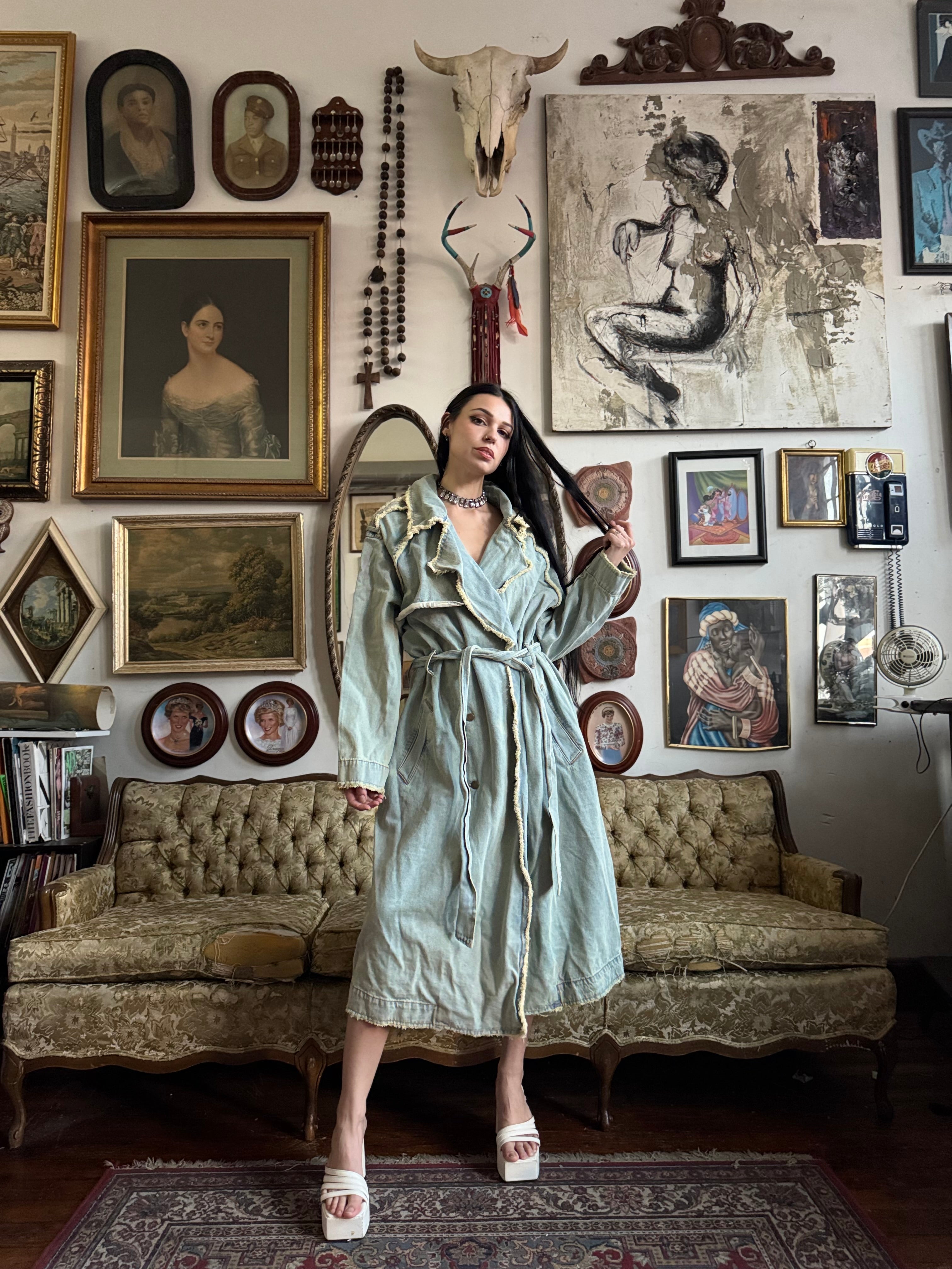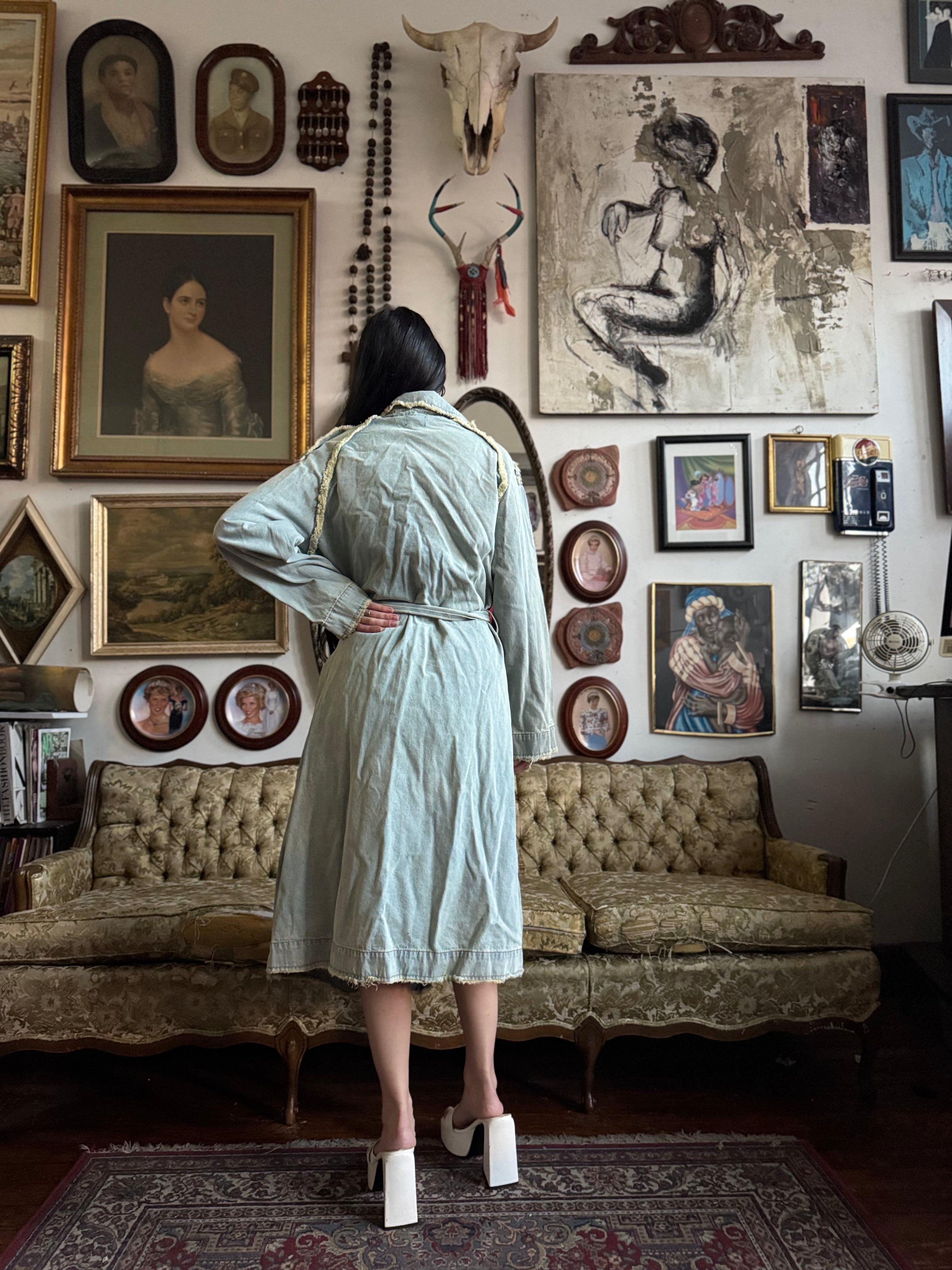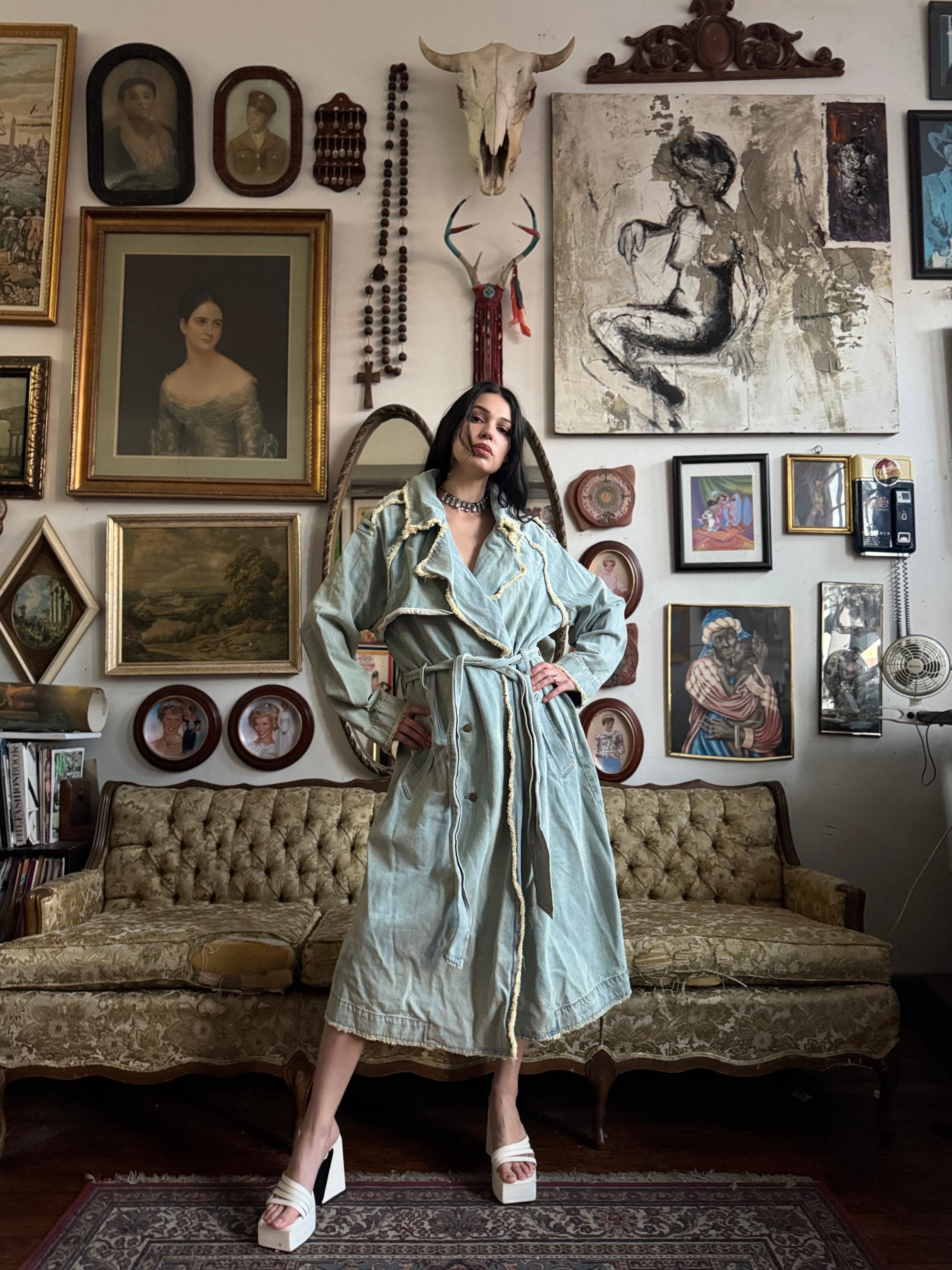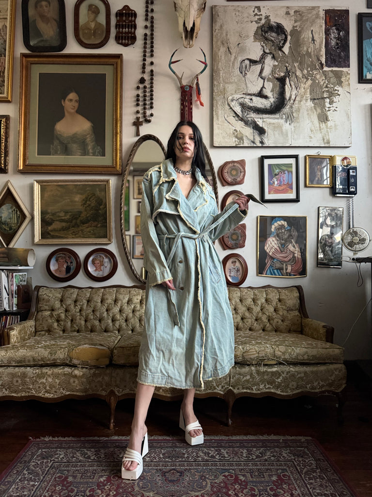 NWT Oversized Premium Fray Hem Denim Trench Coat by Boohoo Ladies Size 8