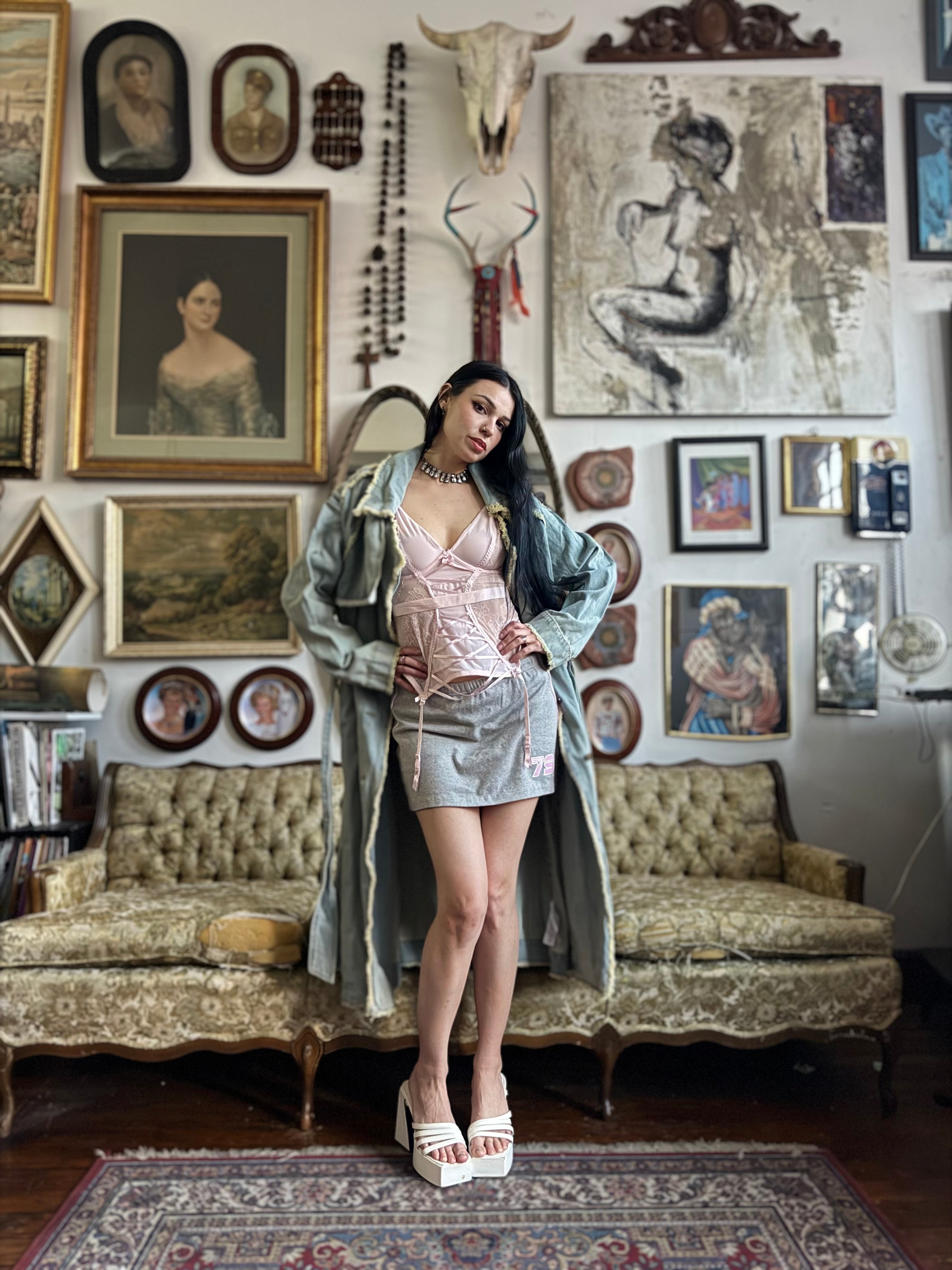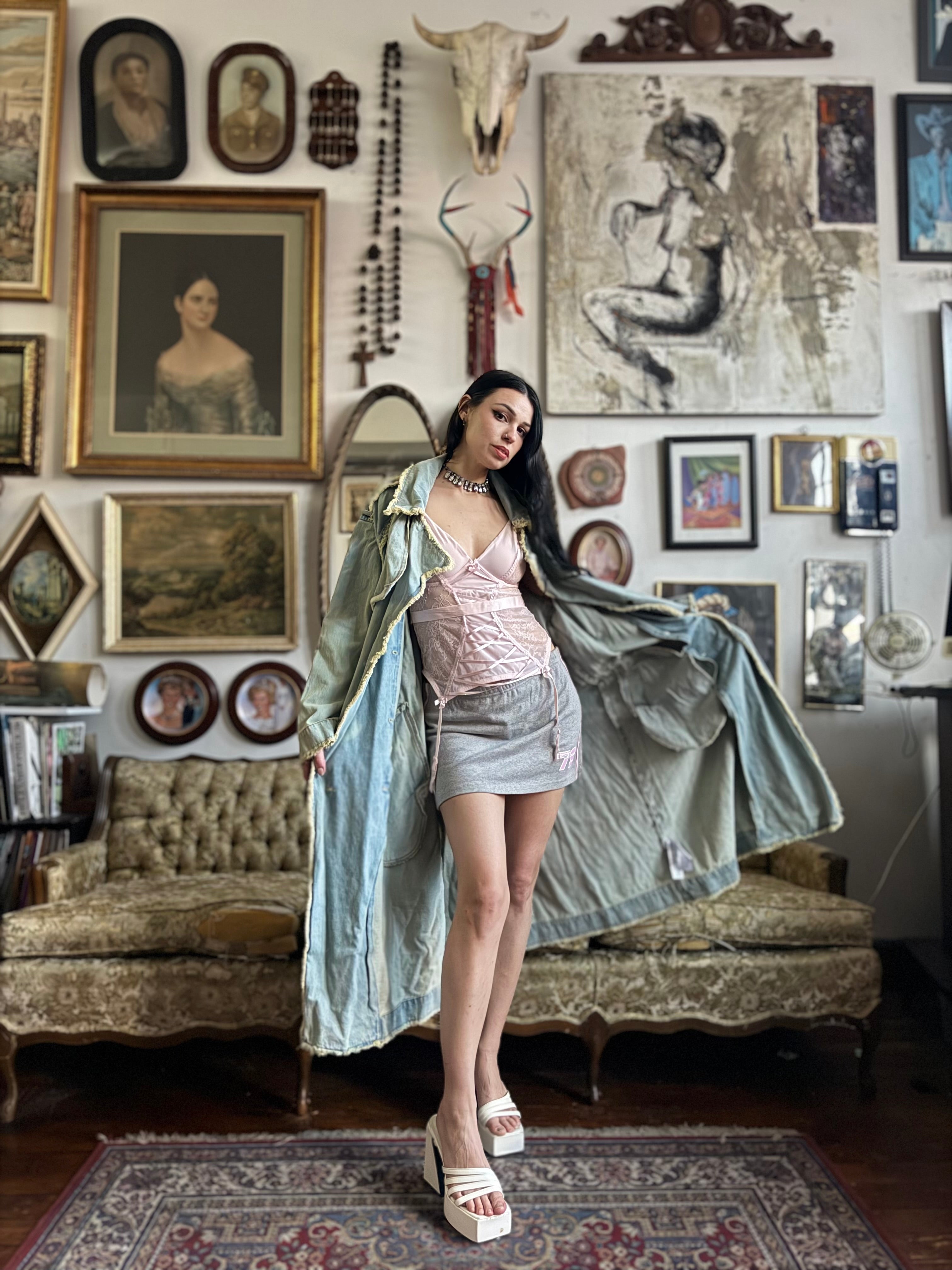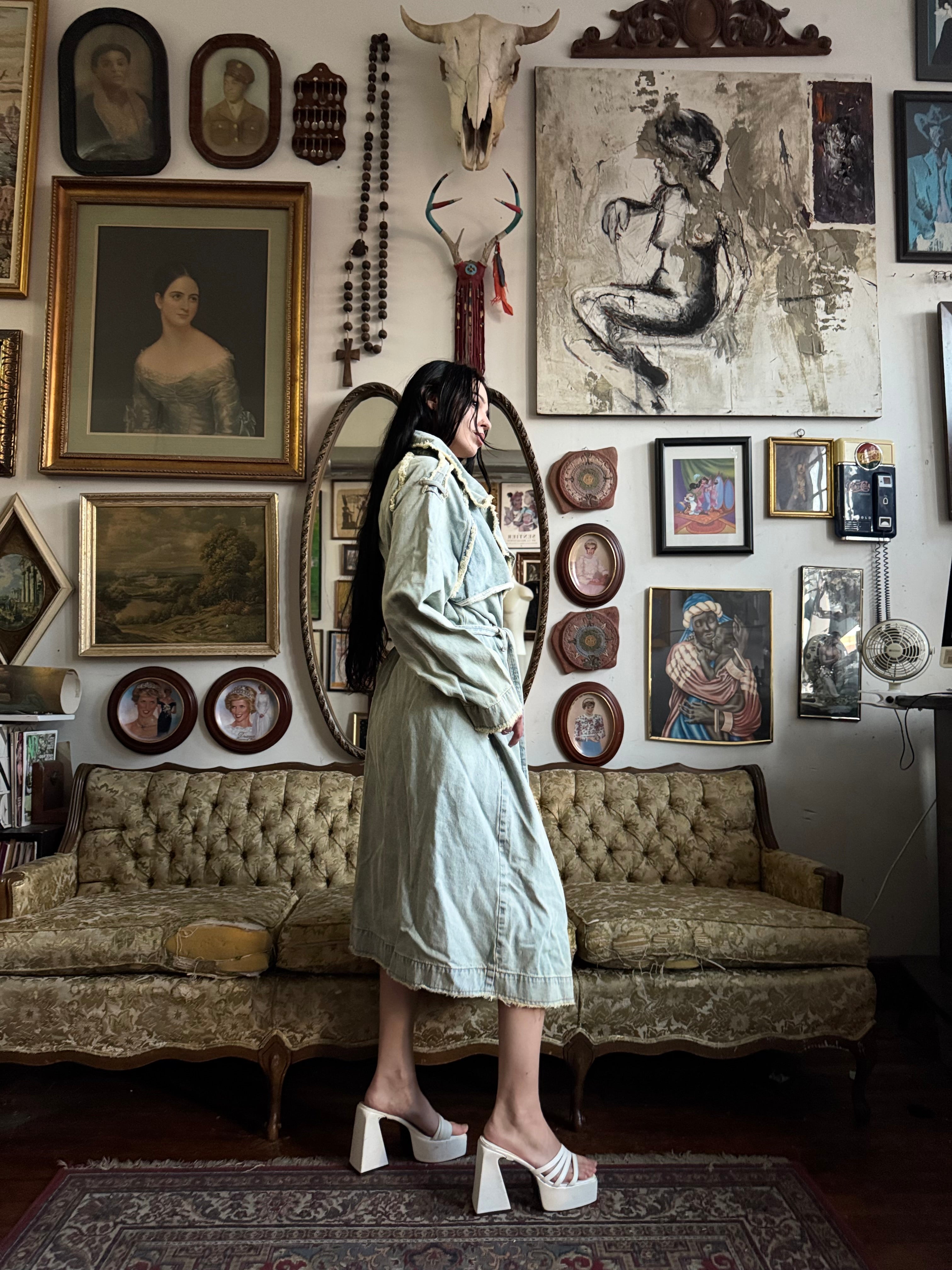 NWT Oversized Premium Fray Hem Denim Trench Coat by Boohoo Ladies Size 8