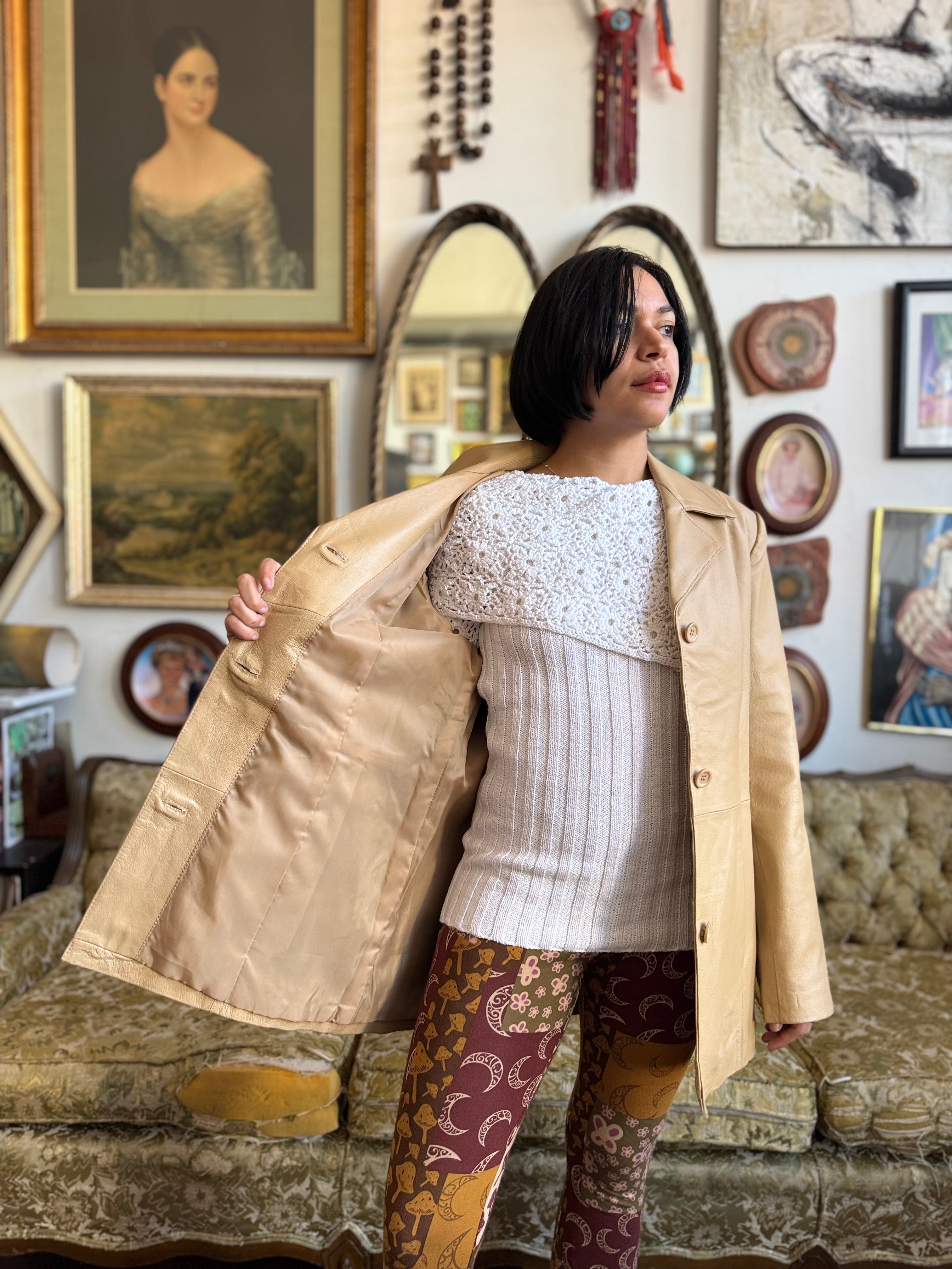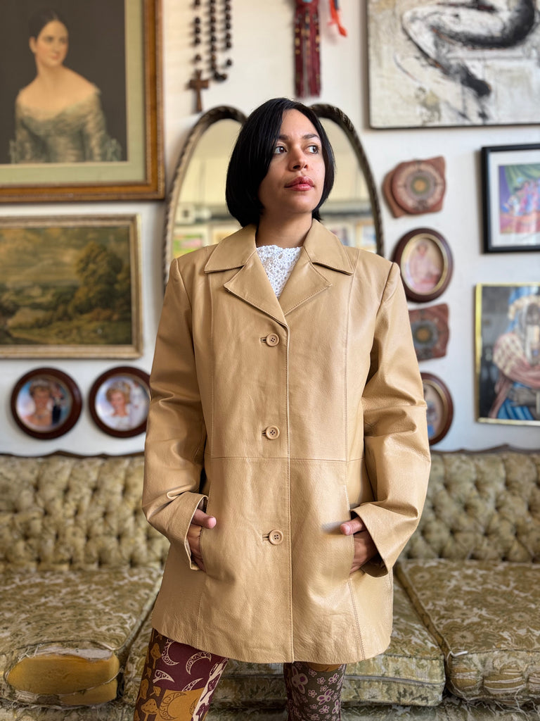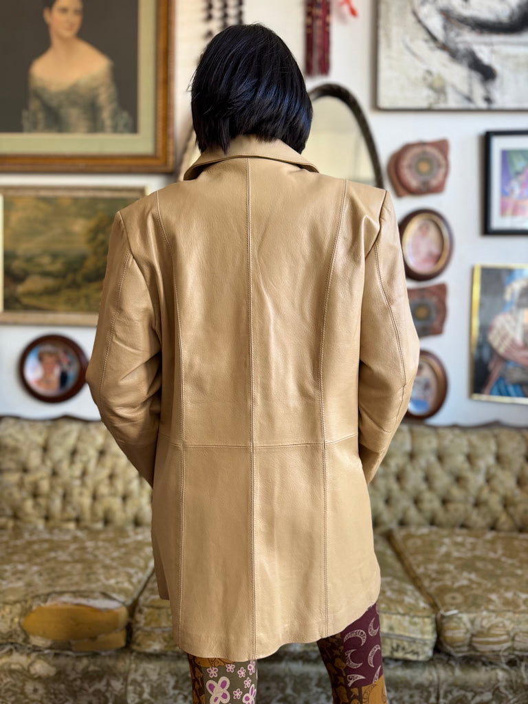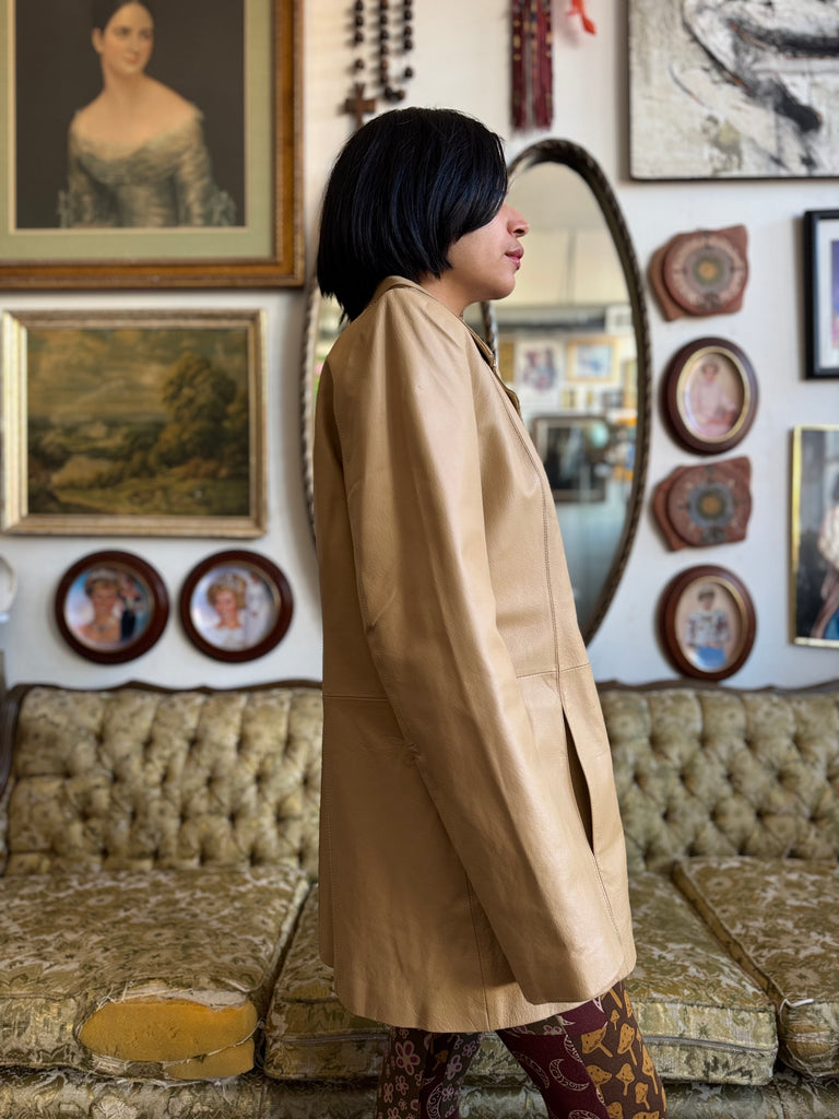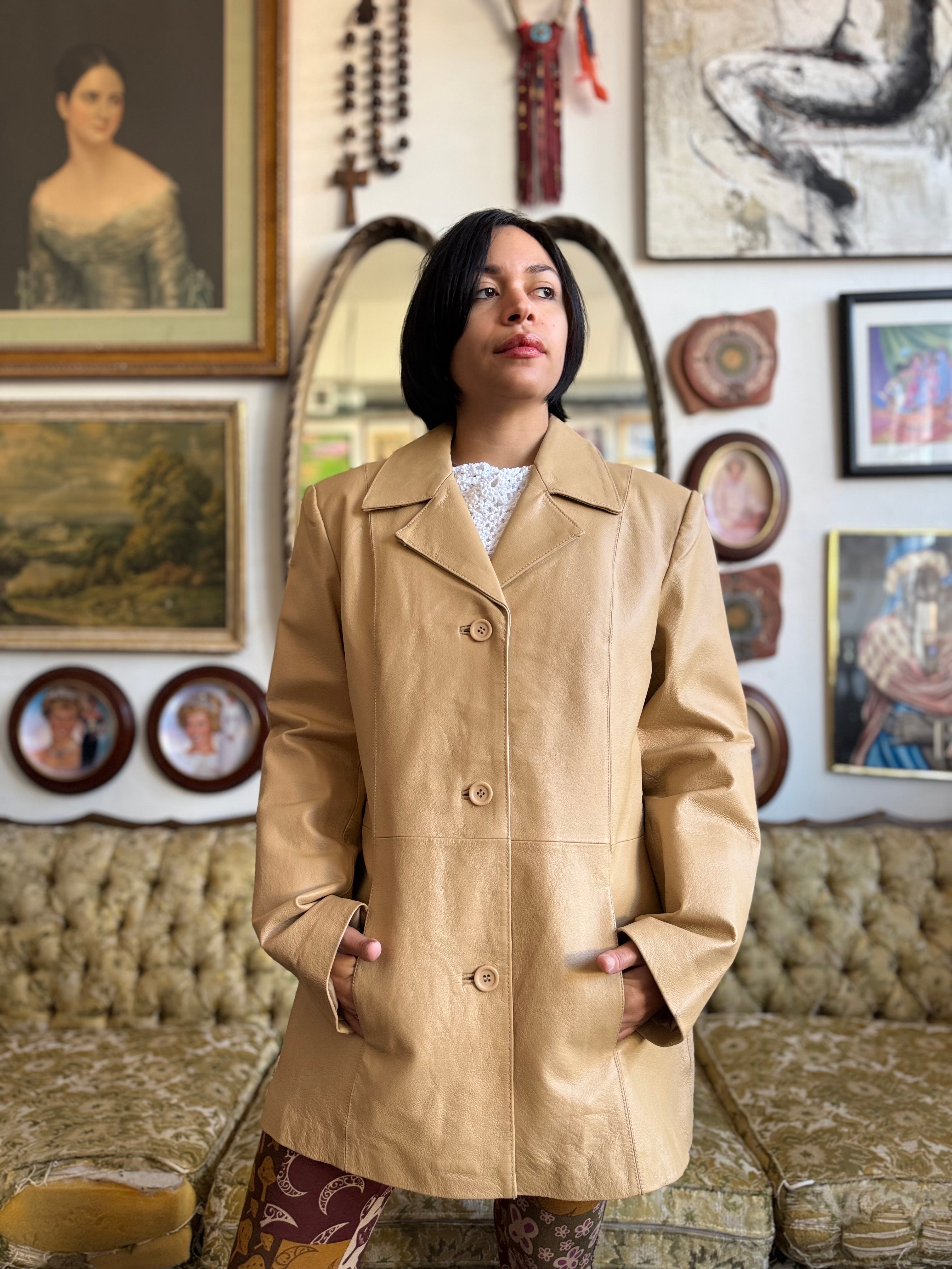 Y2K Latte Leather Blazer Jacket Ladies Size Medium by Jessica Holbrook