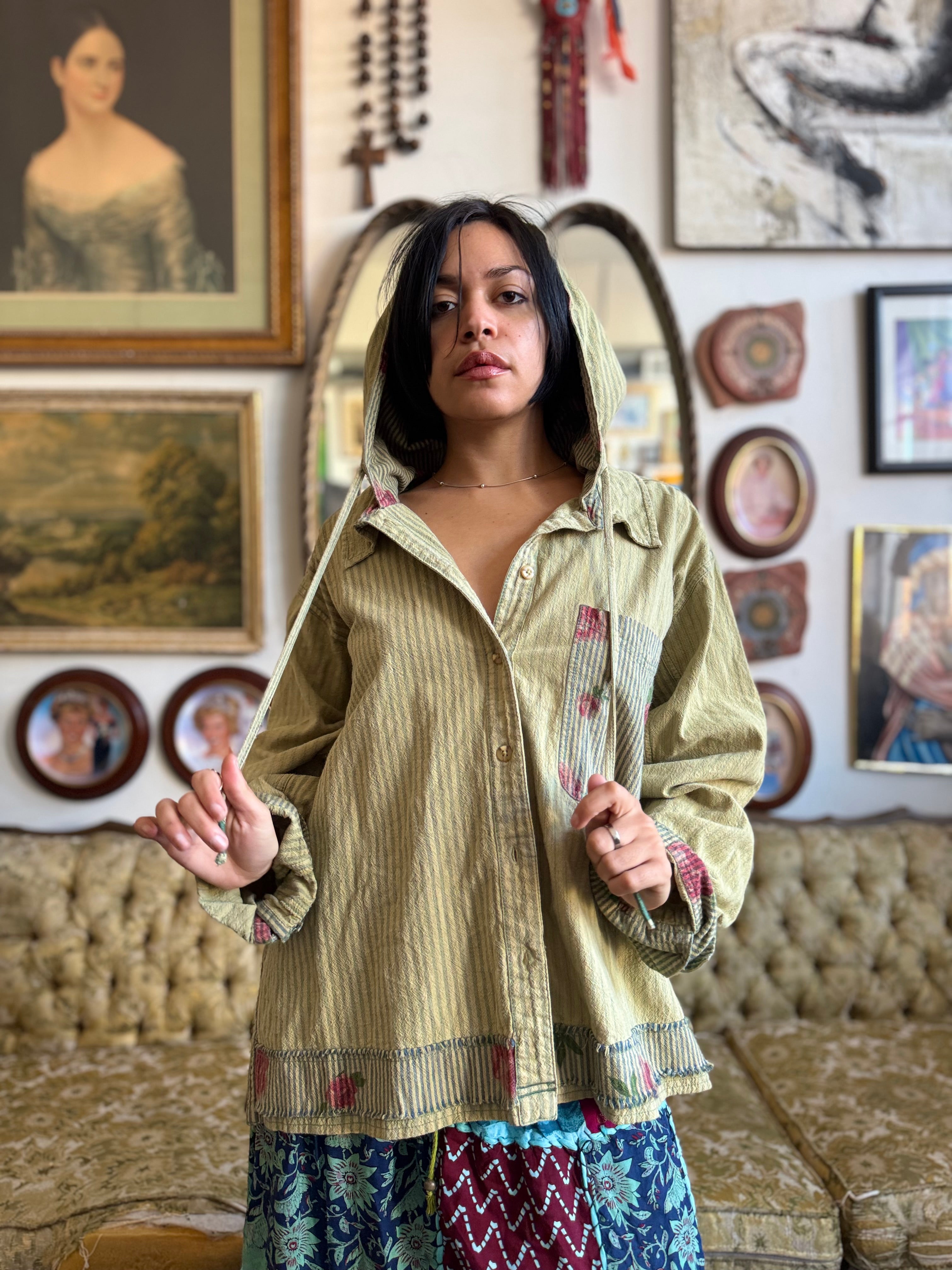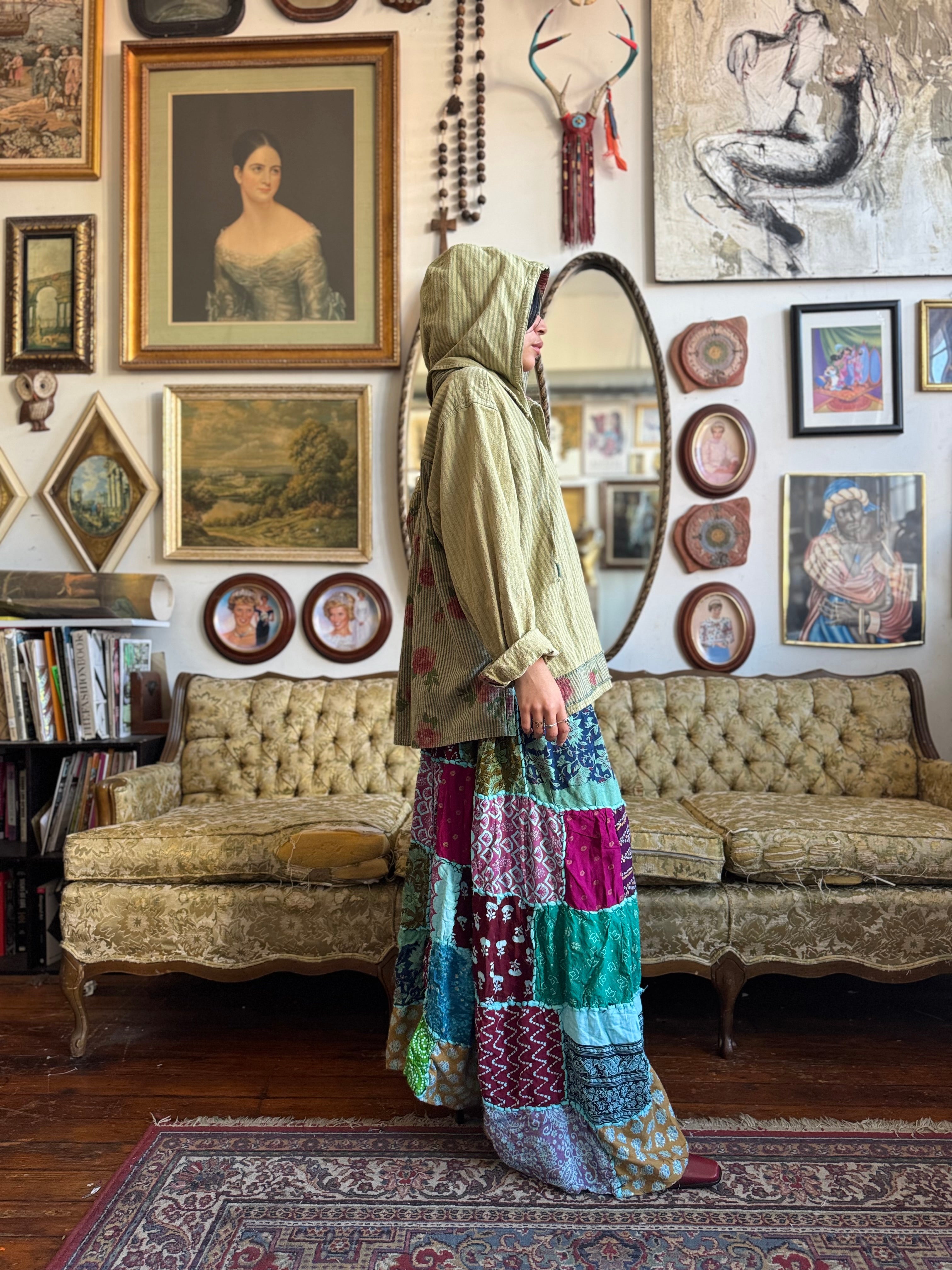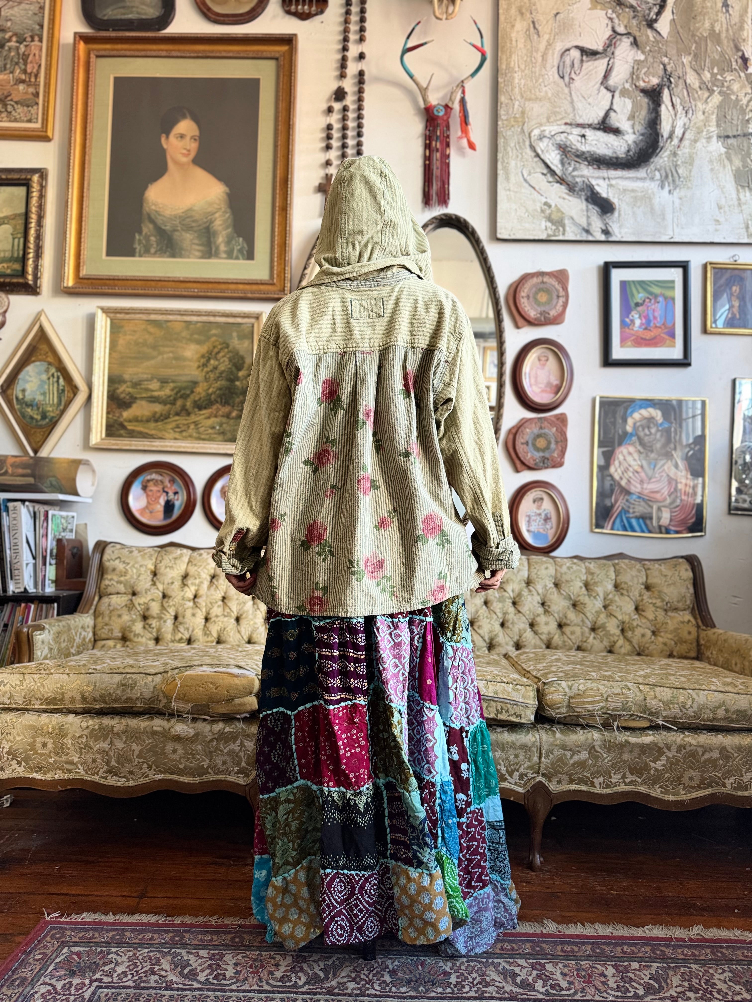 We The Free About To Slide Green Floral Patchwork Sweatshirt Ladies Size Large