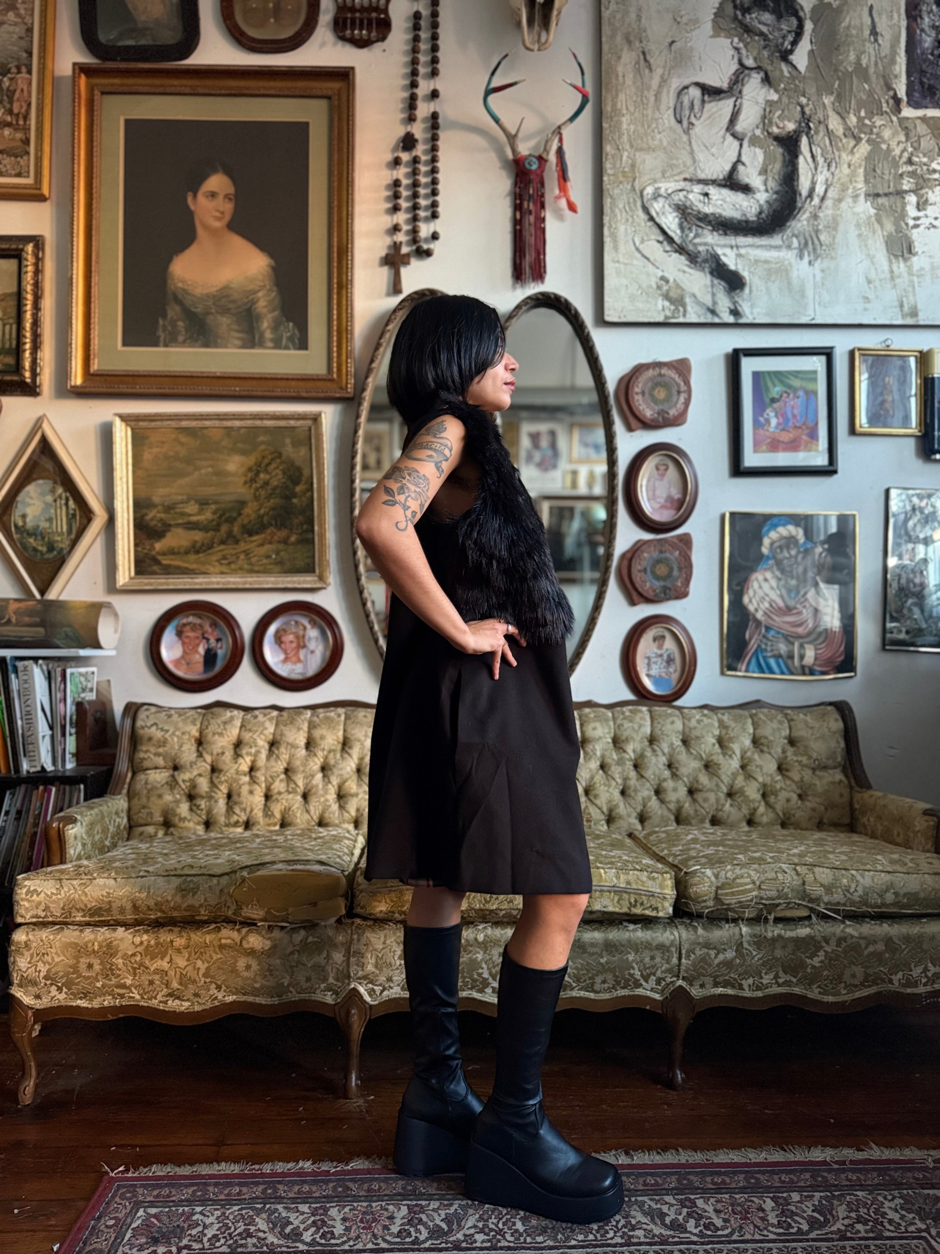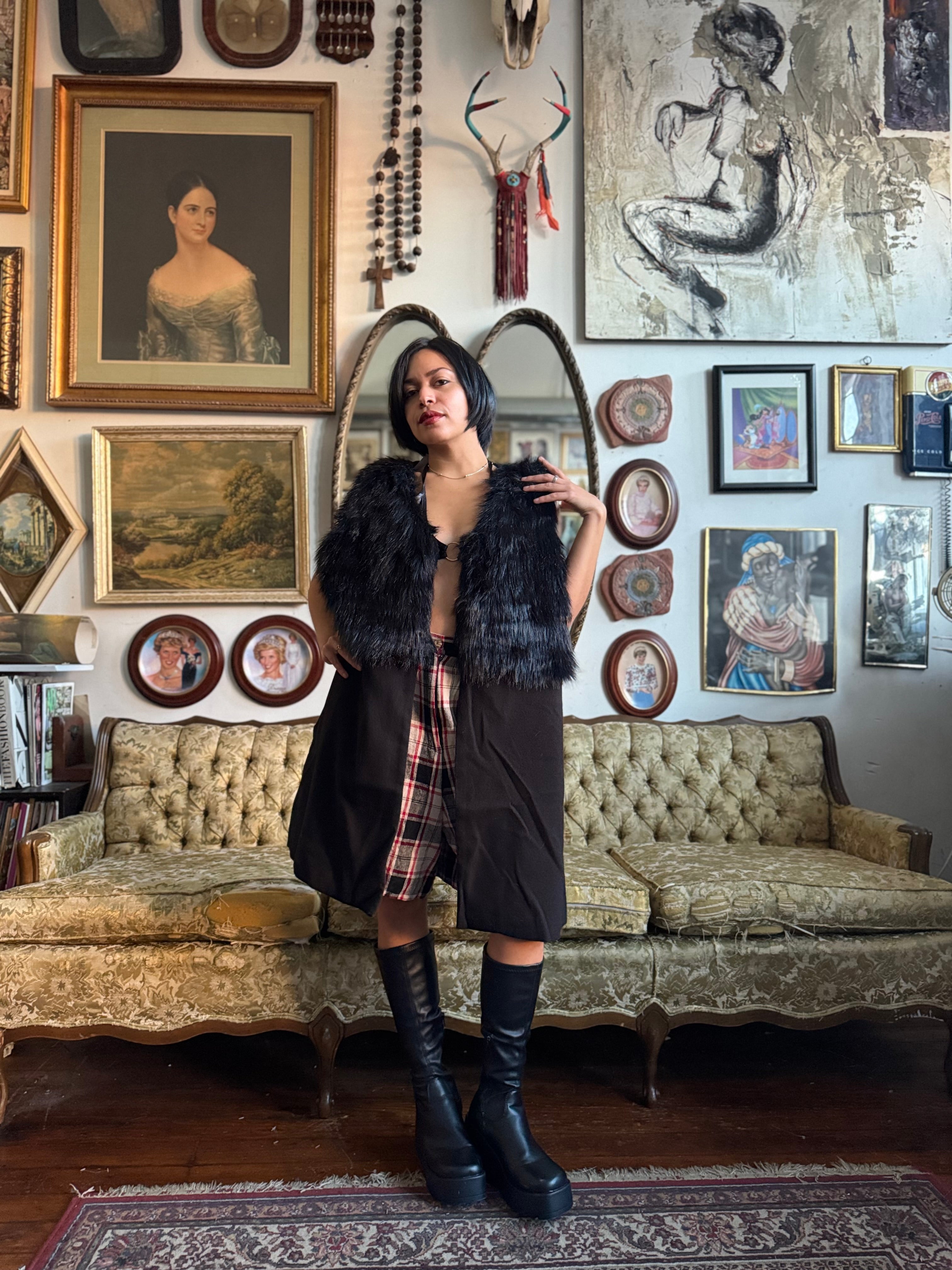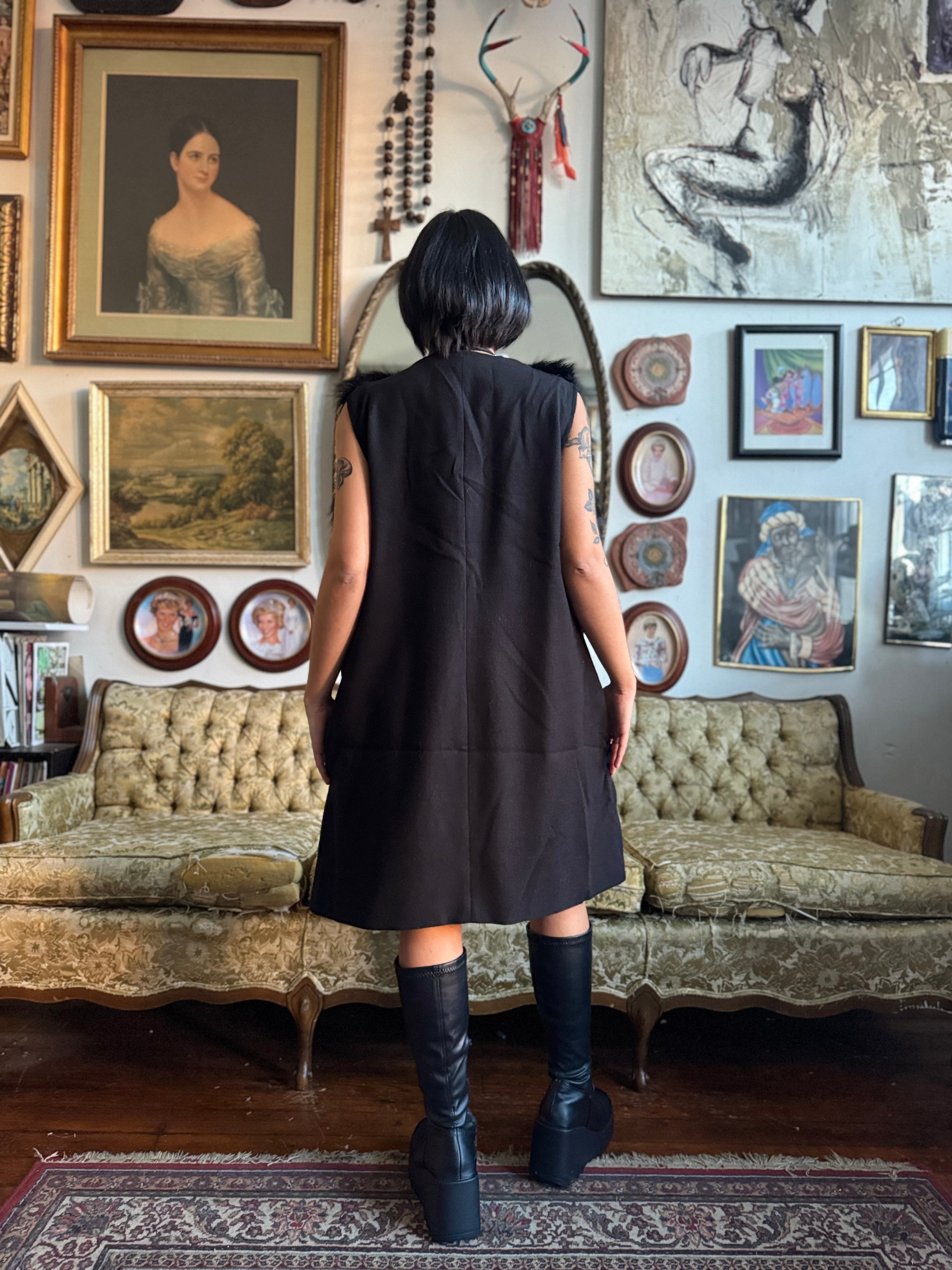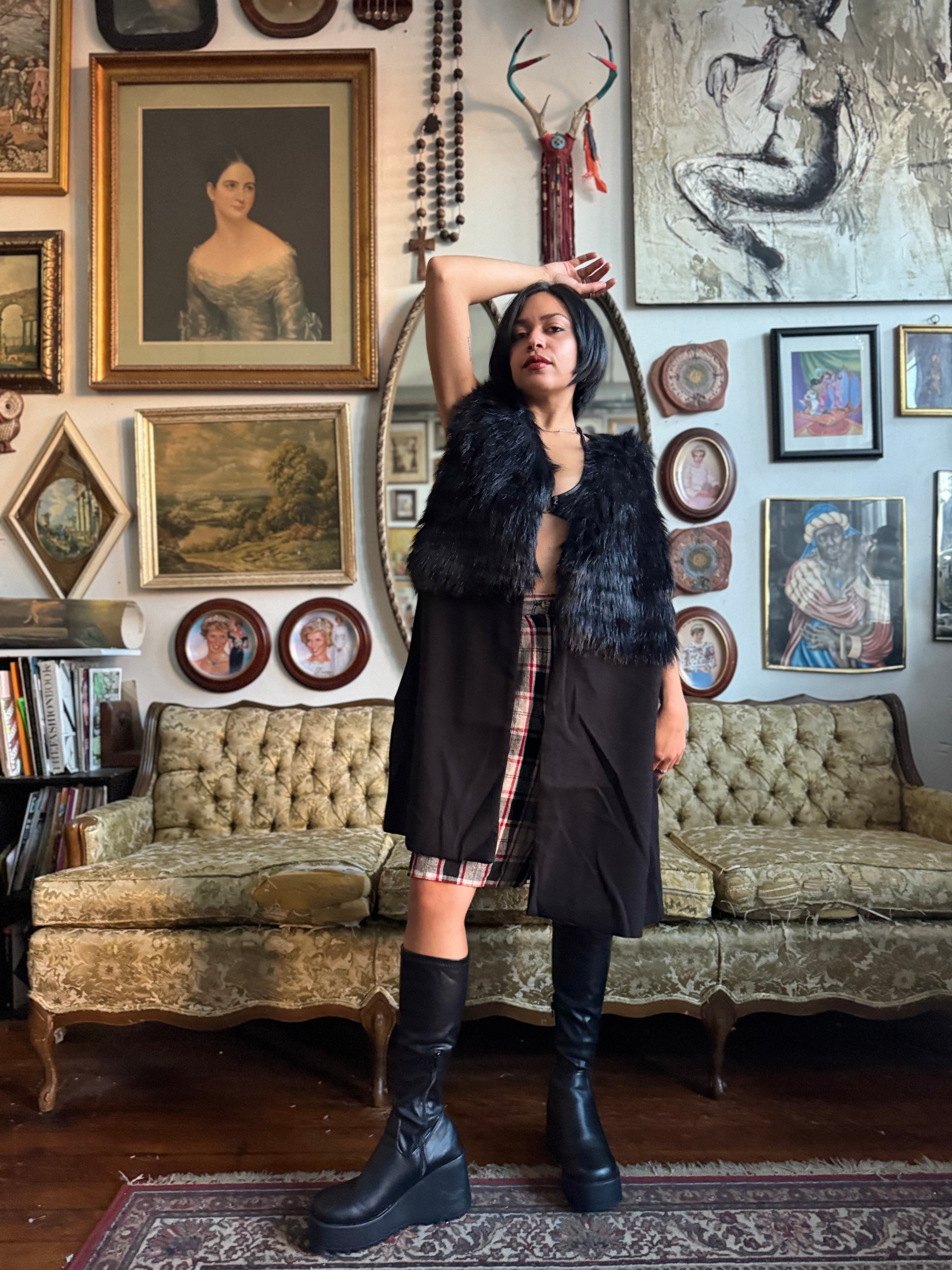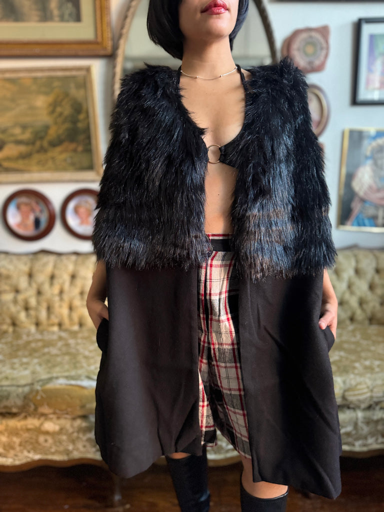Material: main & faux fur: 100% polyester; lining: 97% polyester, 3% elastane