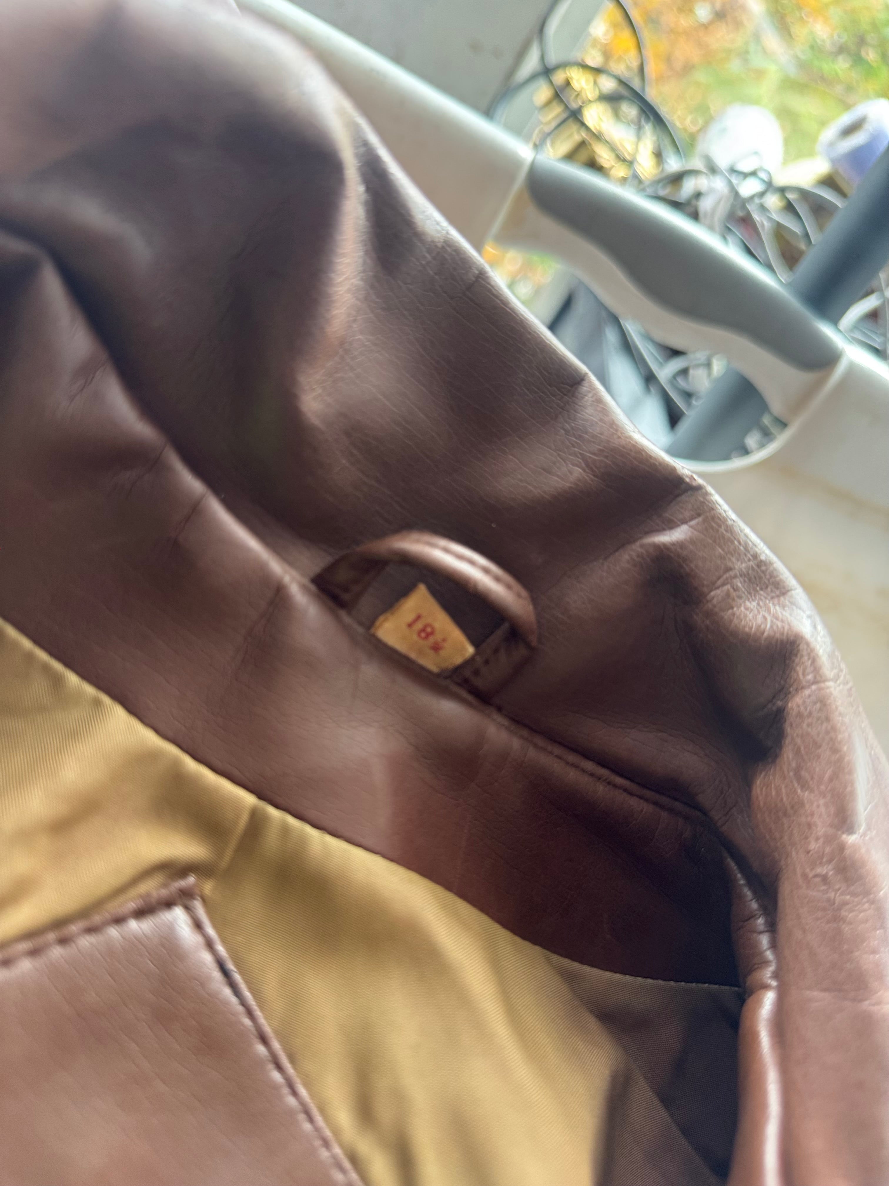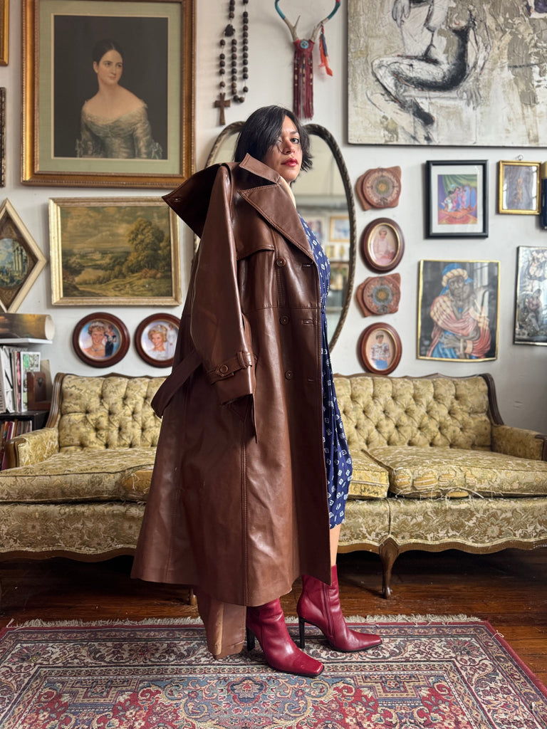 70s Faux Leather Chocolate Brown Leather Trench Coat w Tie Ladies Size 18/2X by Amerex
