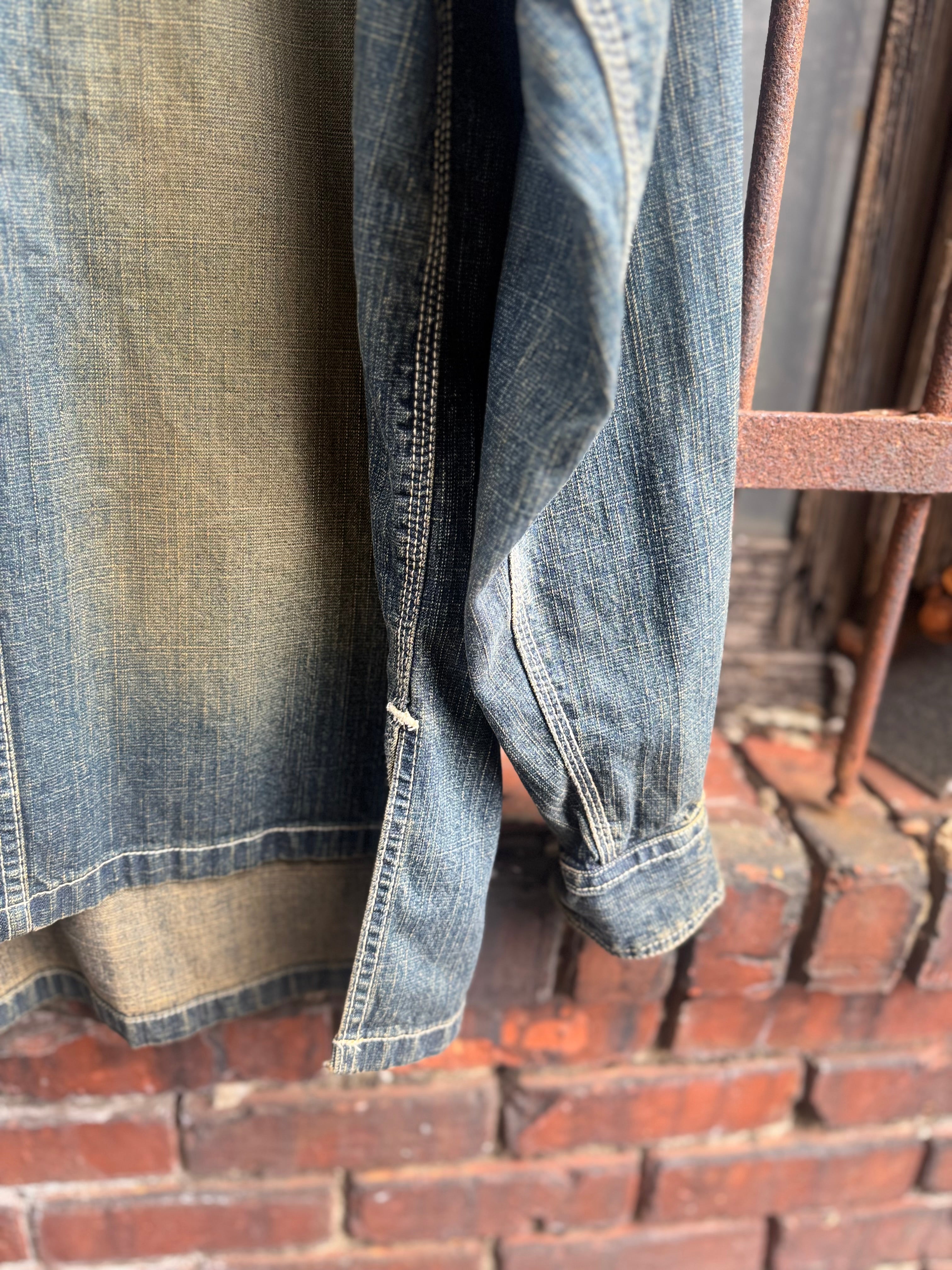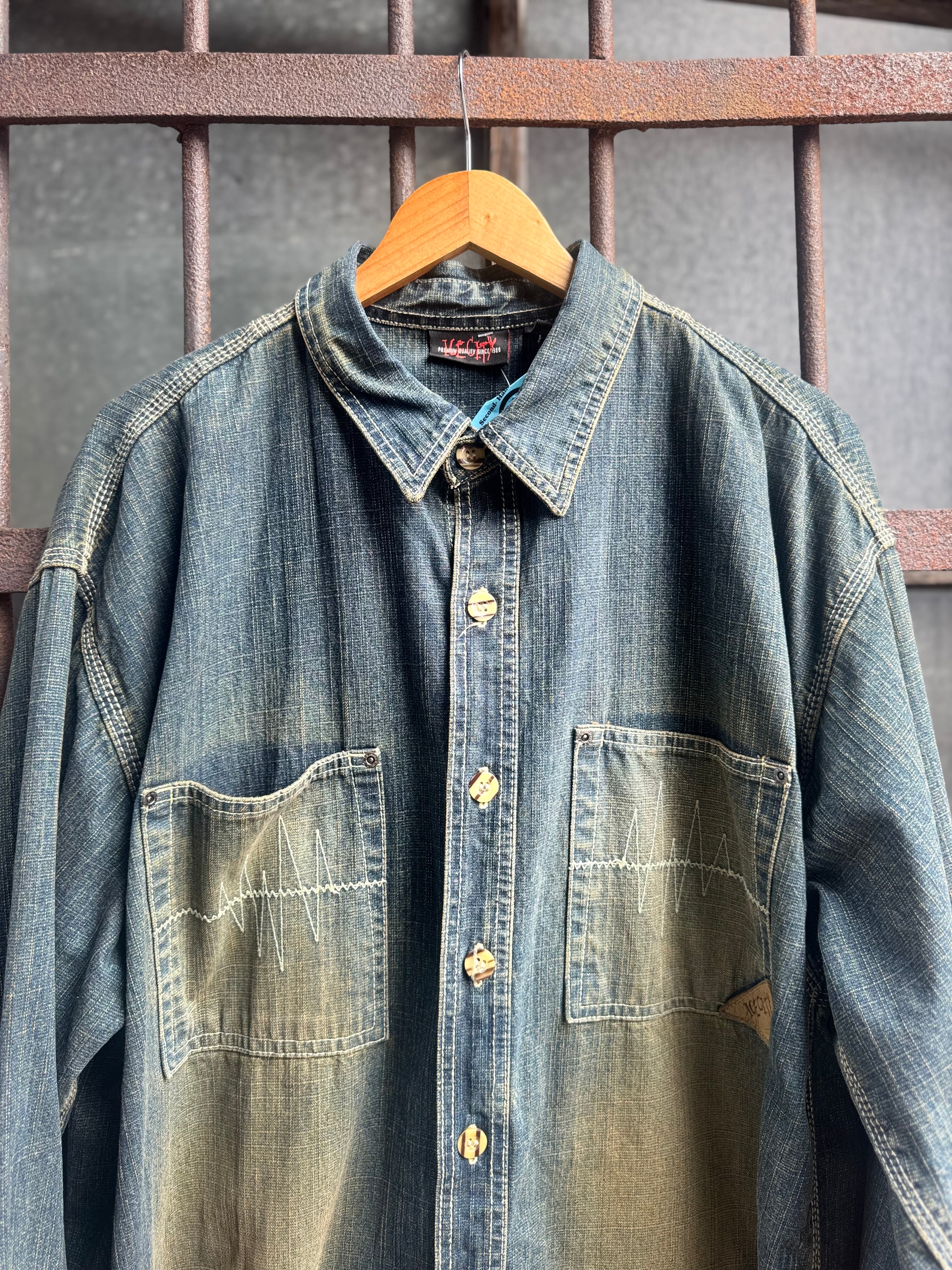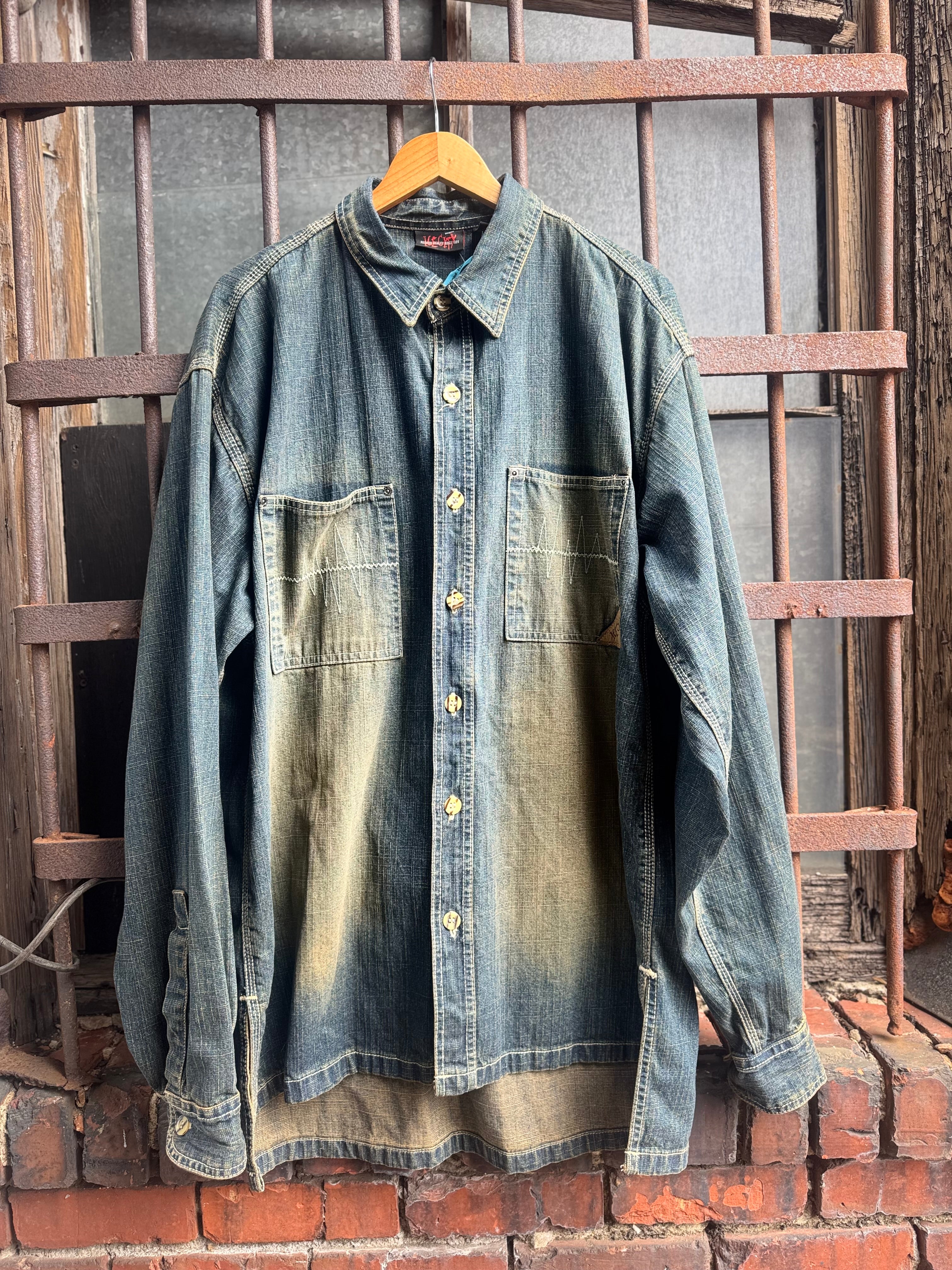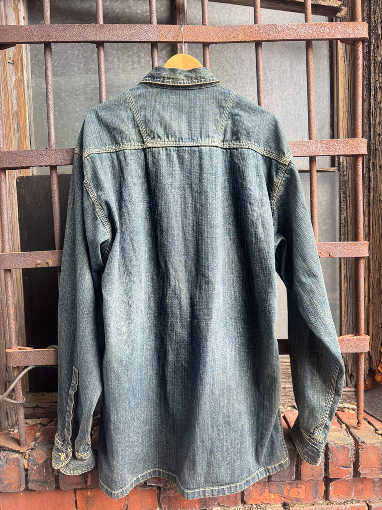 Y2K Ice City Denim Distressed Faded Shacket Size 2 XL