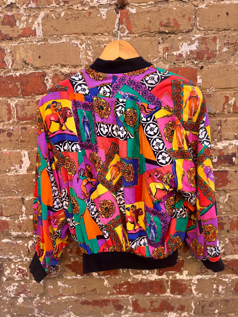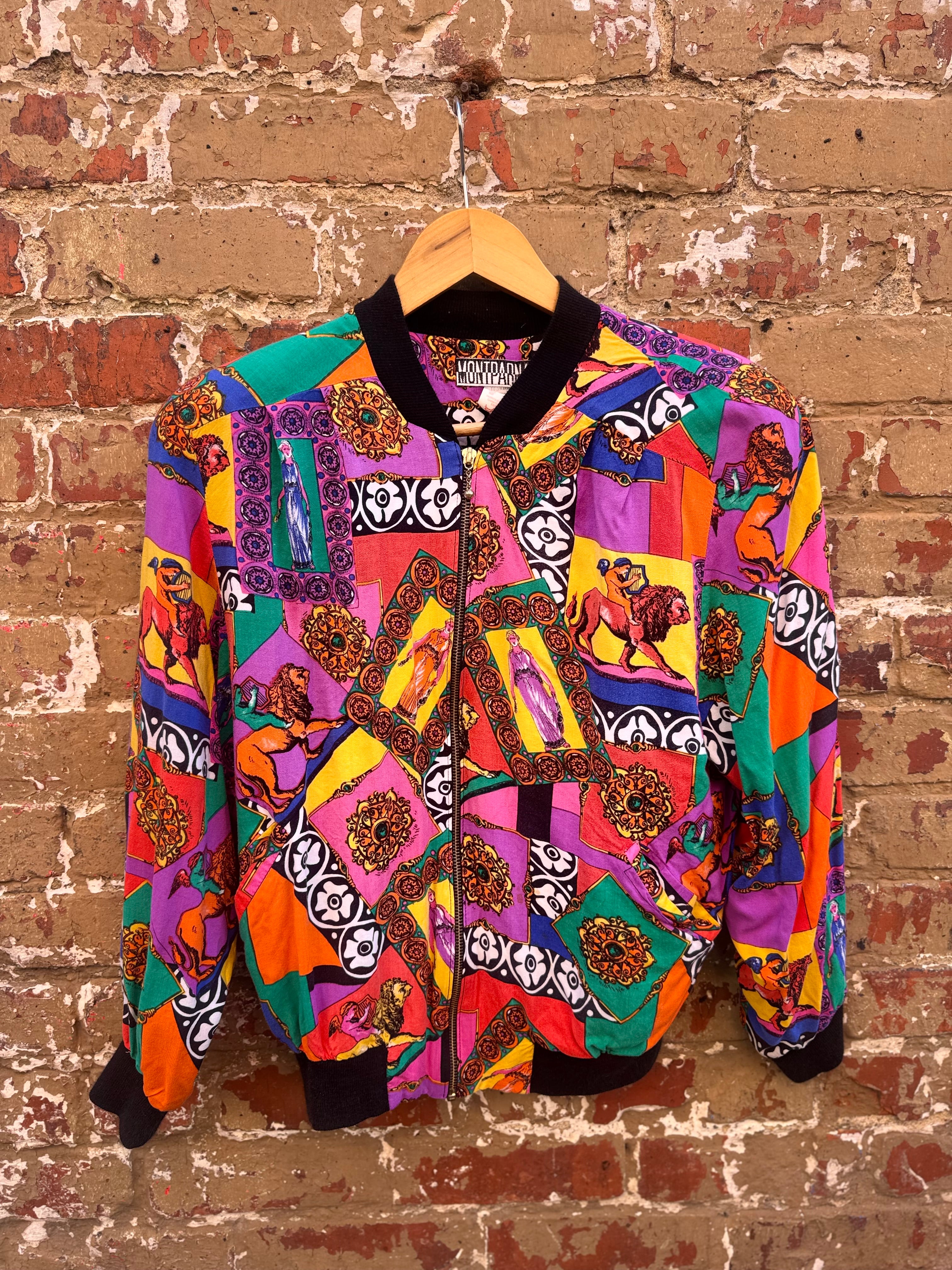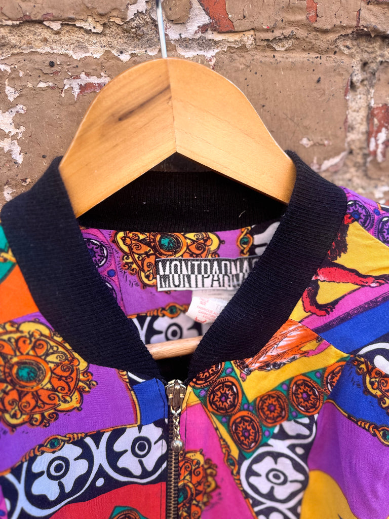 Vintage 90s Montparnasse Abstract Print Bomber Jacket Size XL