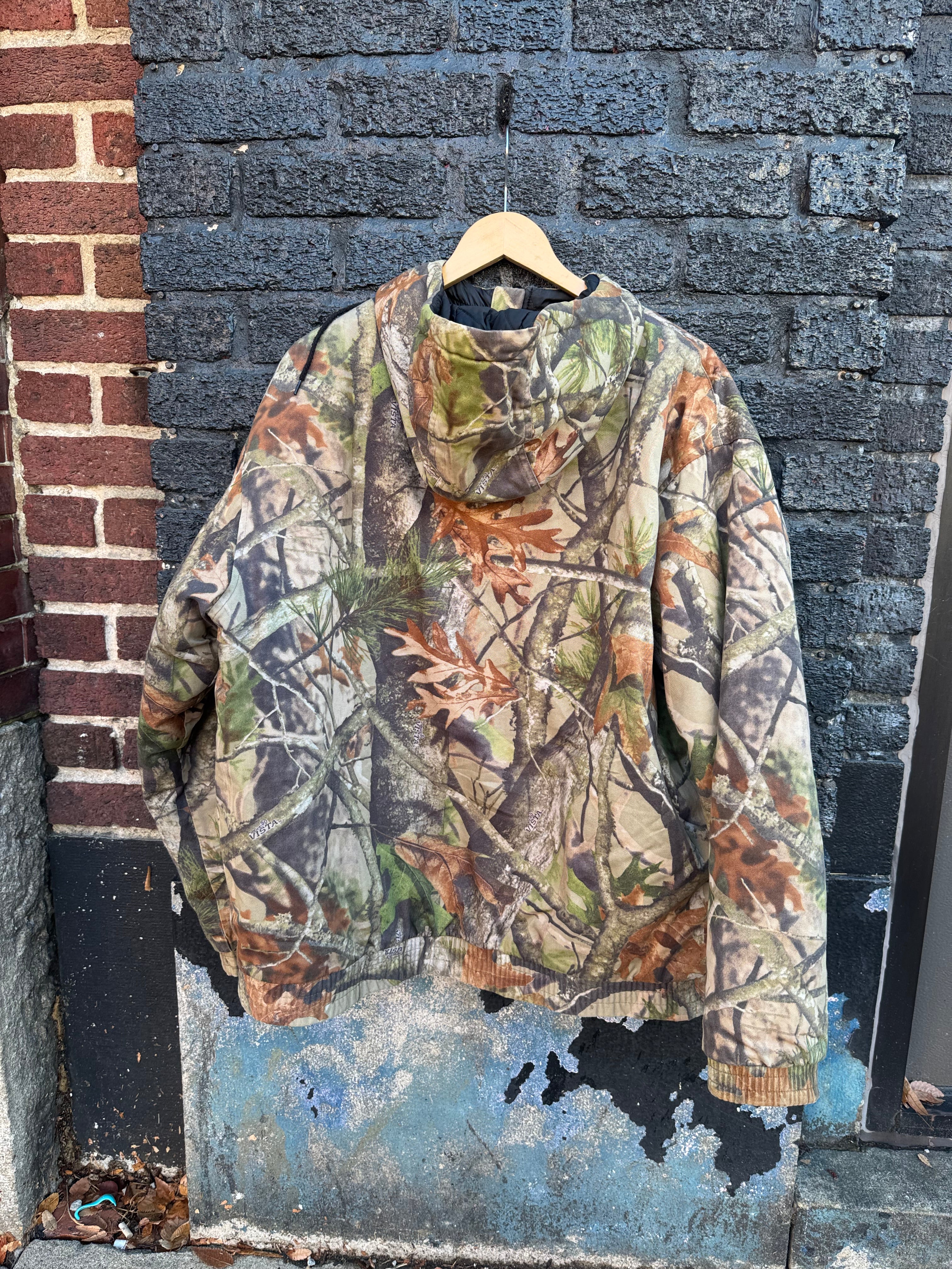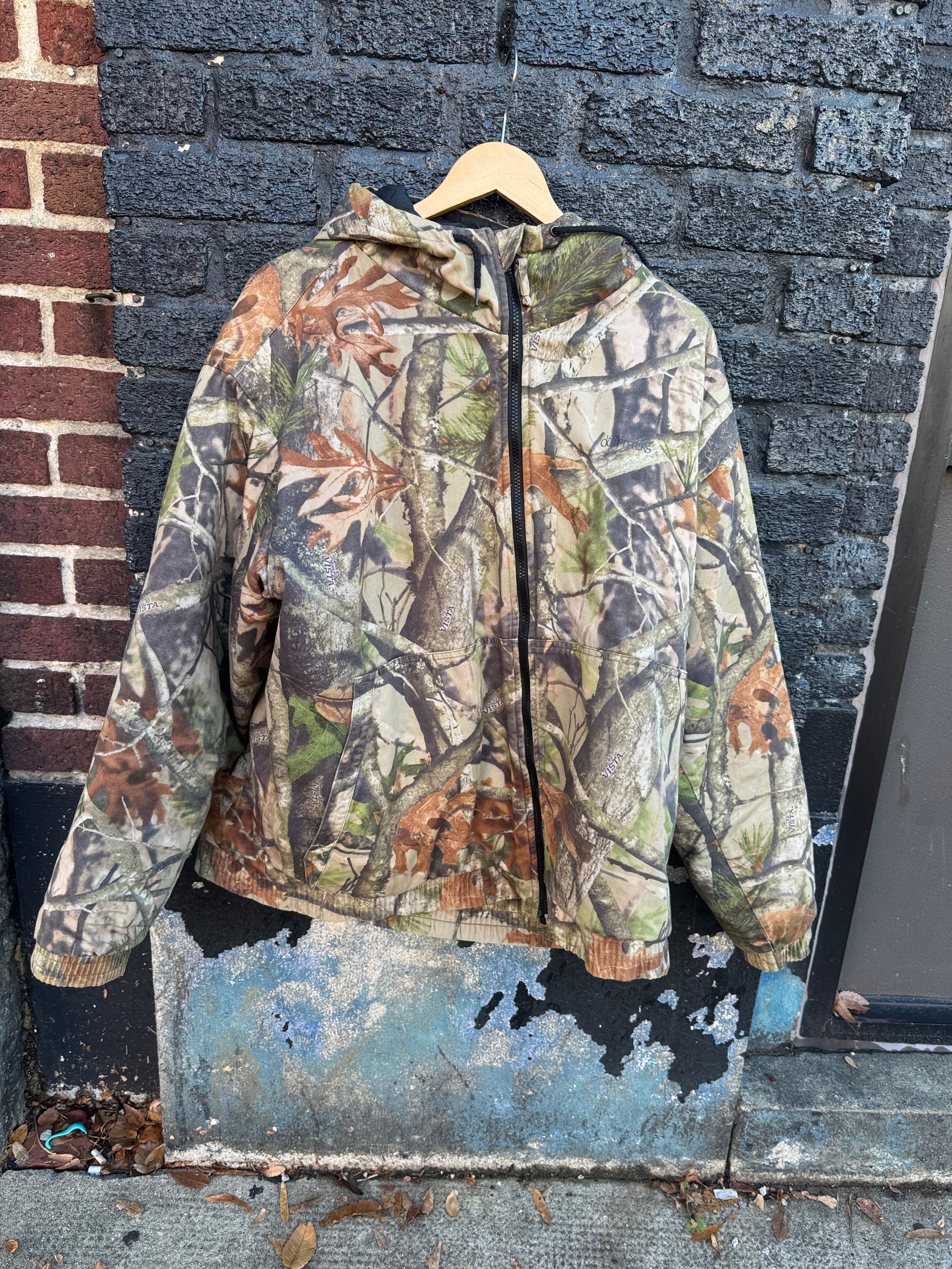Forest Print Camo Zip Up Hooded Coat Size XL