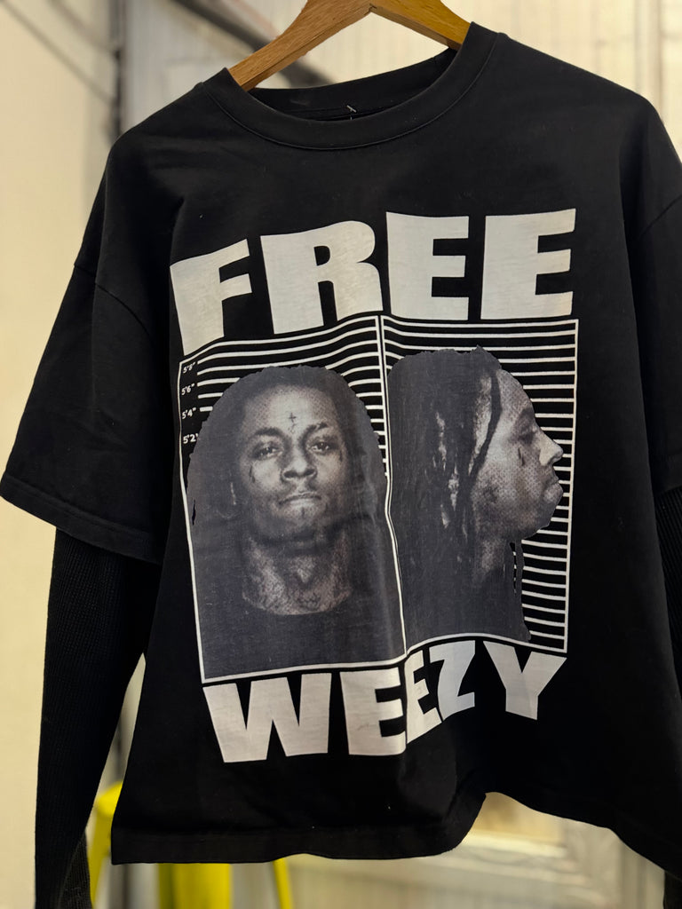 “FREE WEEZY” Thermal Layered Band Tee Size S