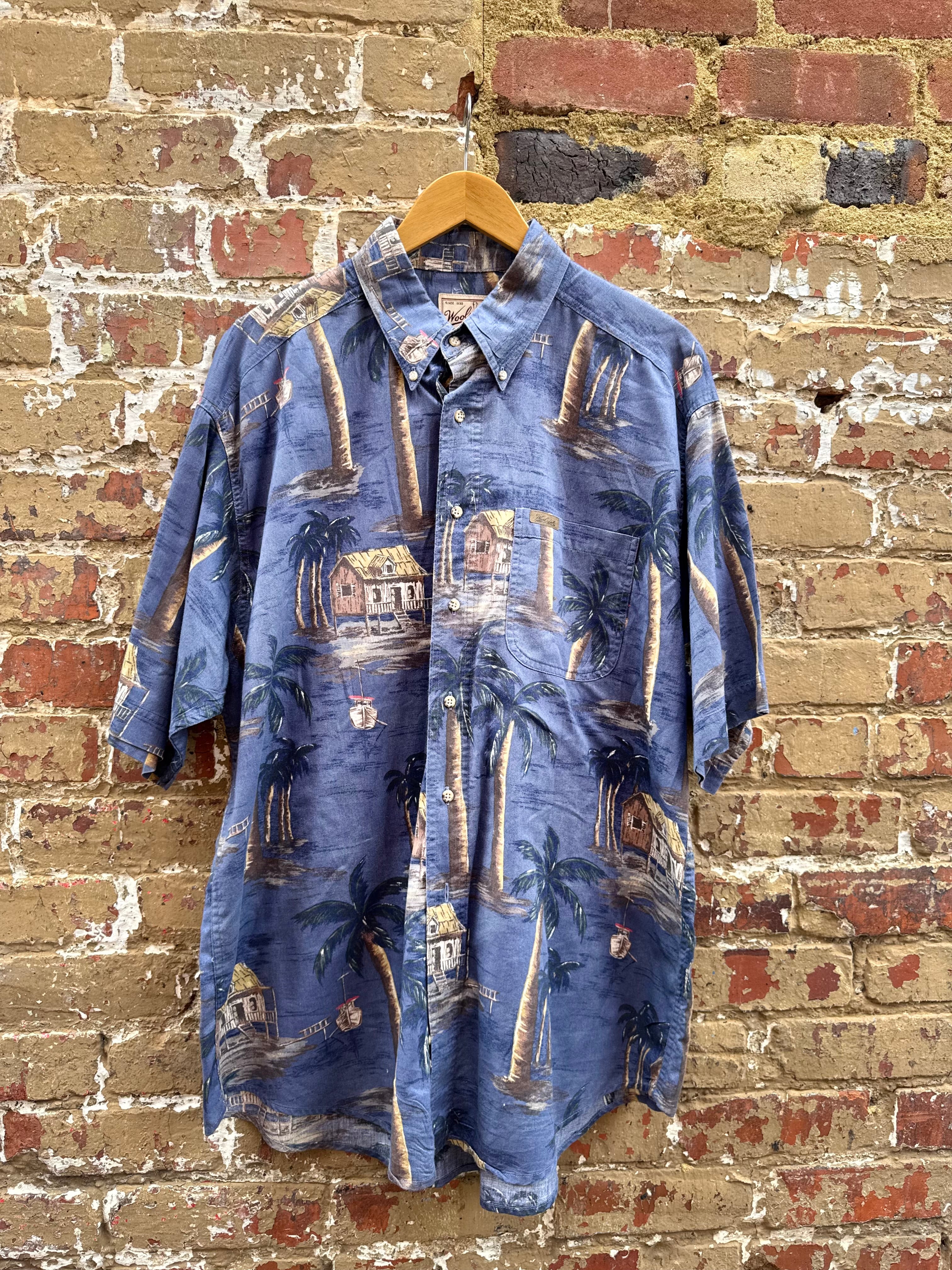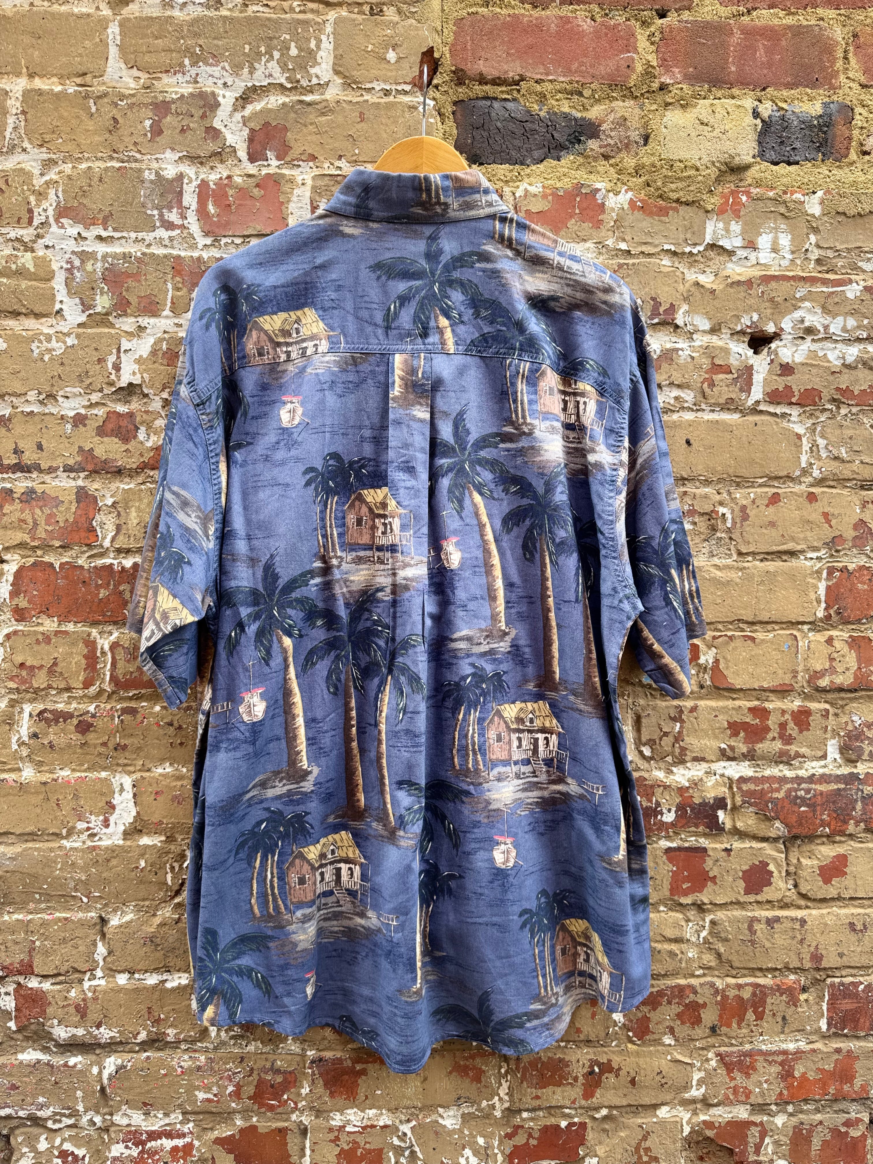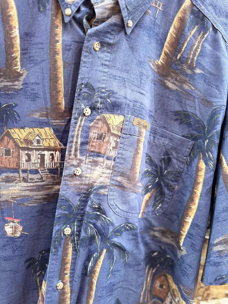 Blue Hawaiian Palm Tree Button Up Size XL