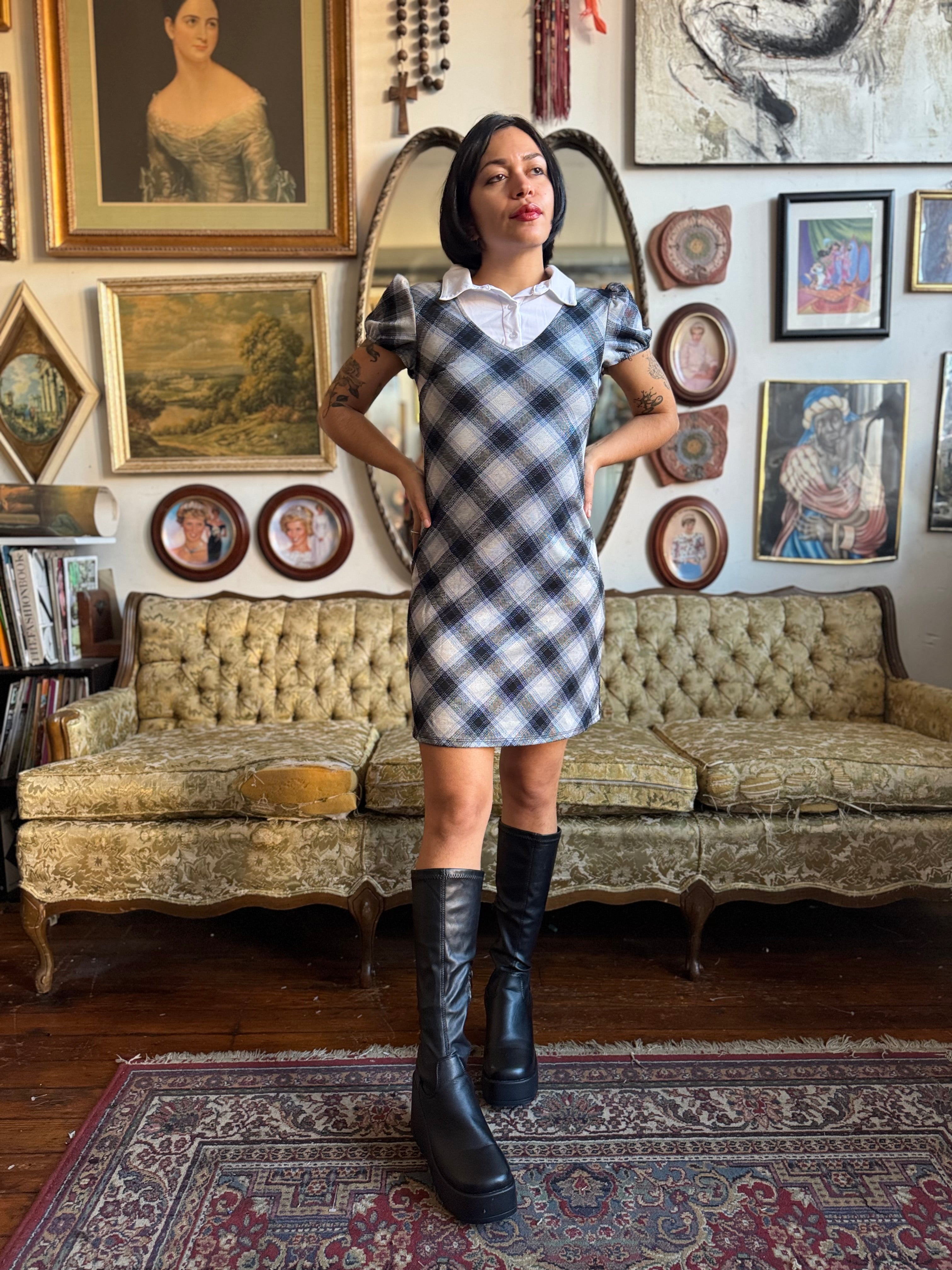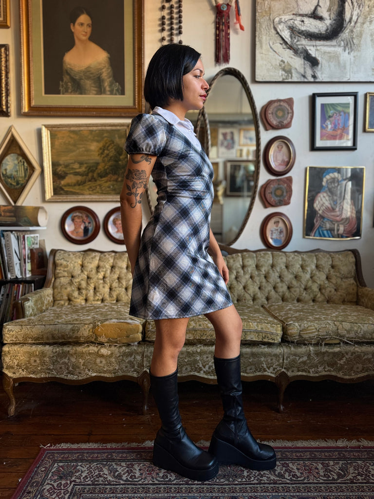 Grunge Plaid Collared Puff Sleeved Dress Size Small