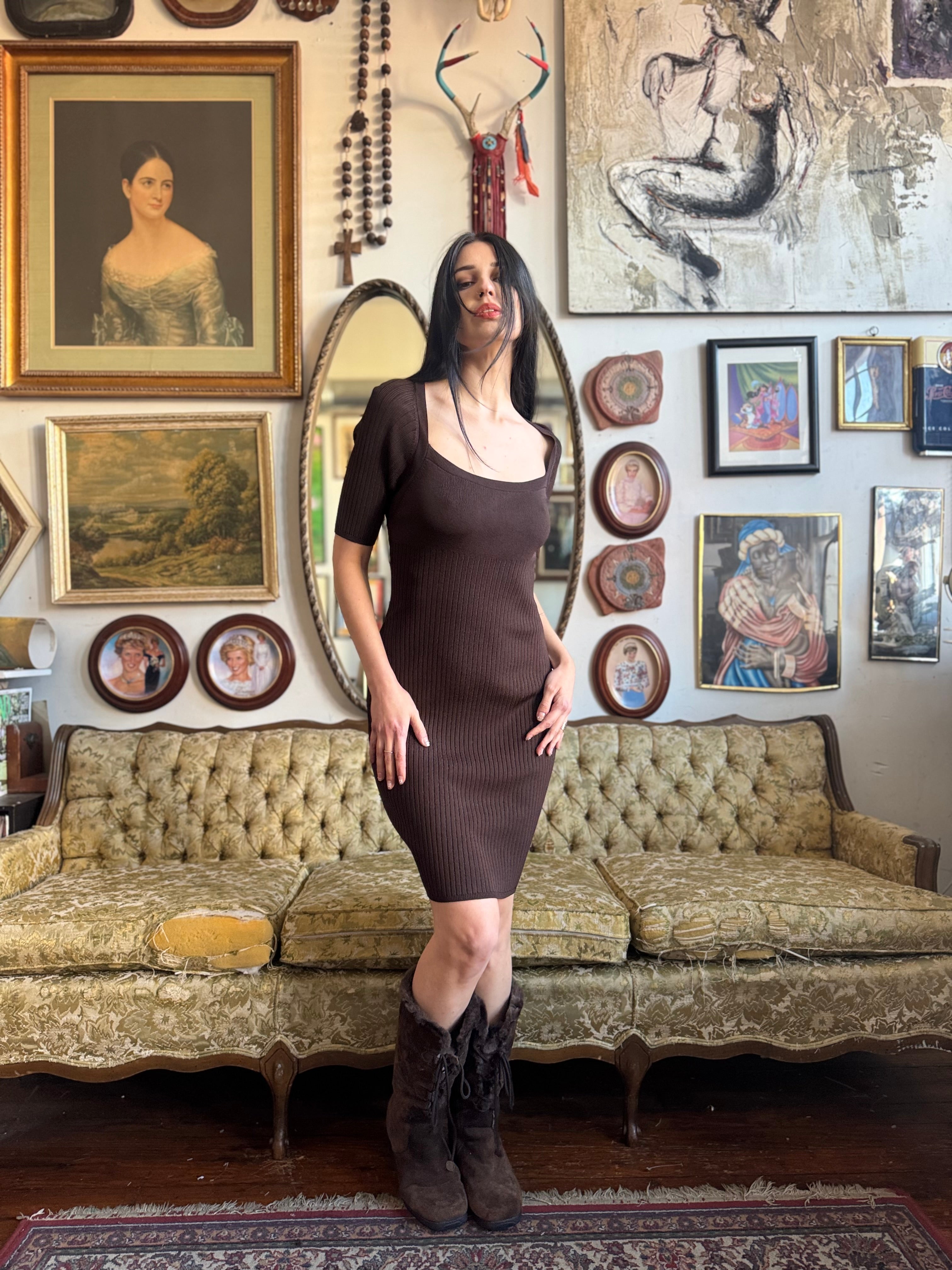 Guess Collection Iconic Brown Ribbed Mid Dress Size Medium