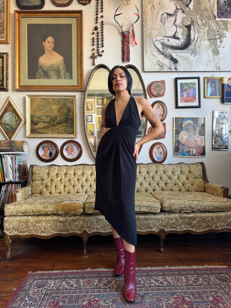 Halston Heritage Asymmetrical Halter Evening Dress Size XS/ 0