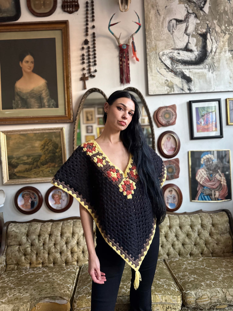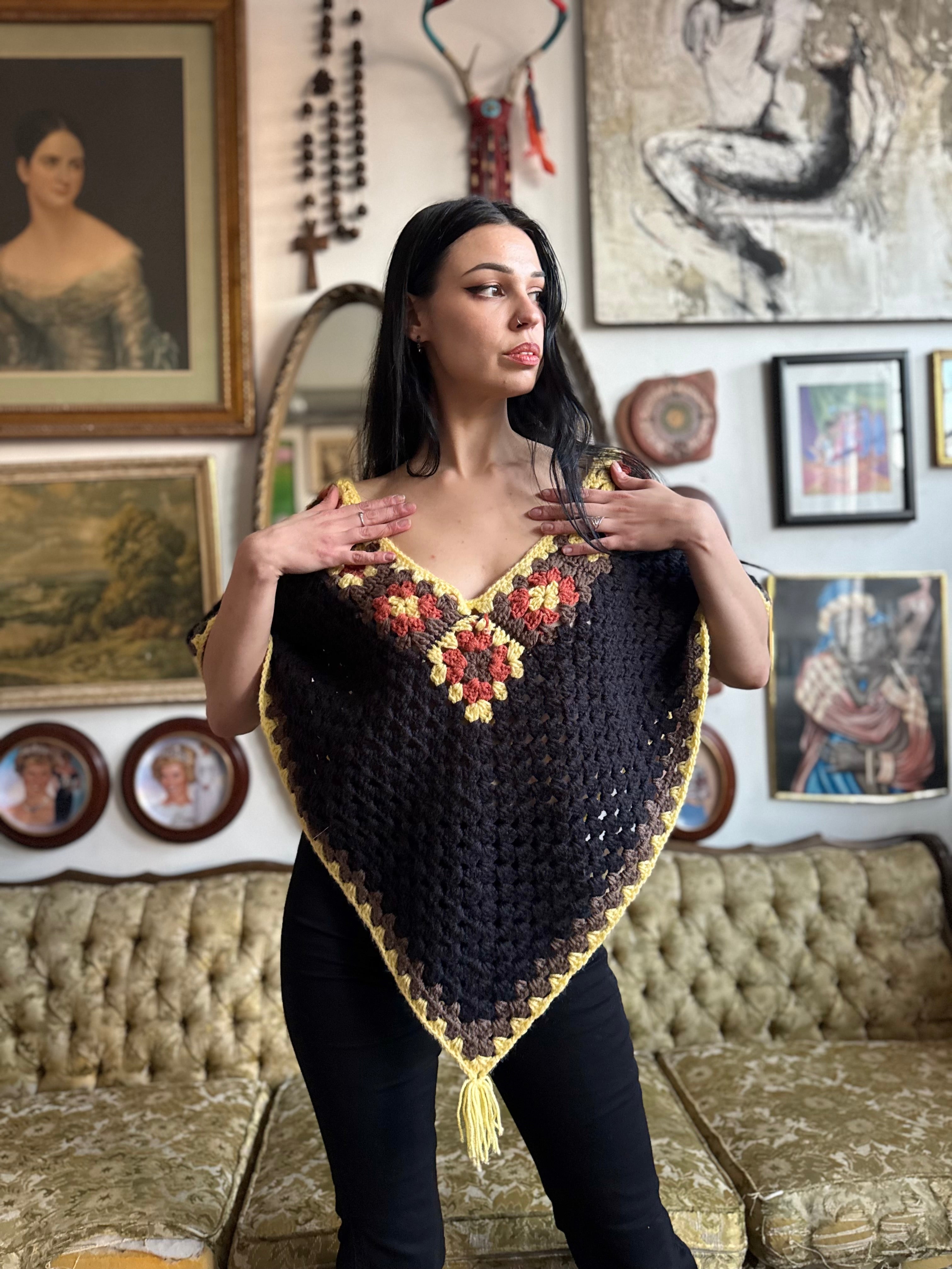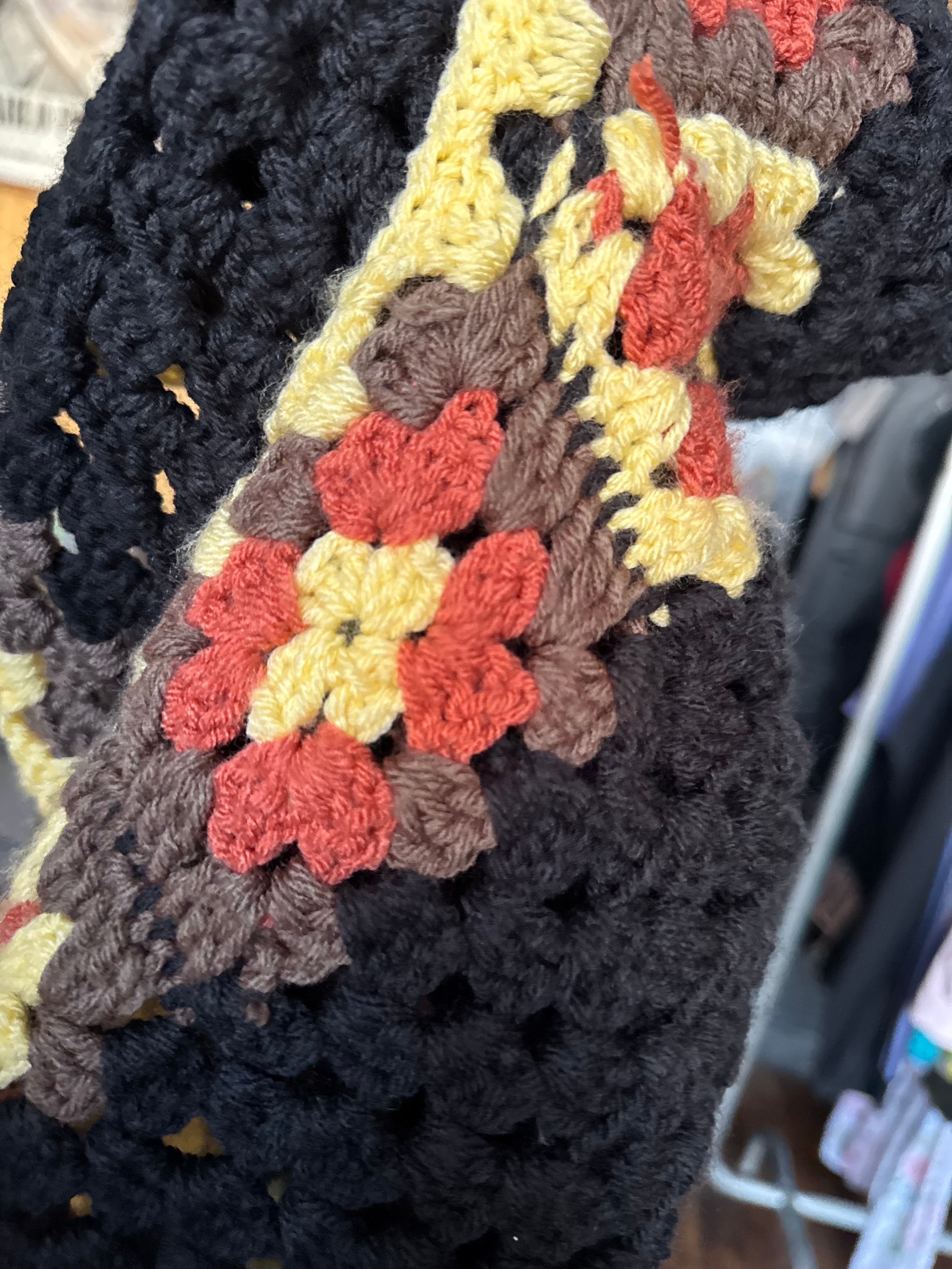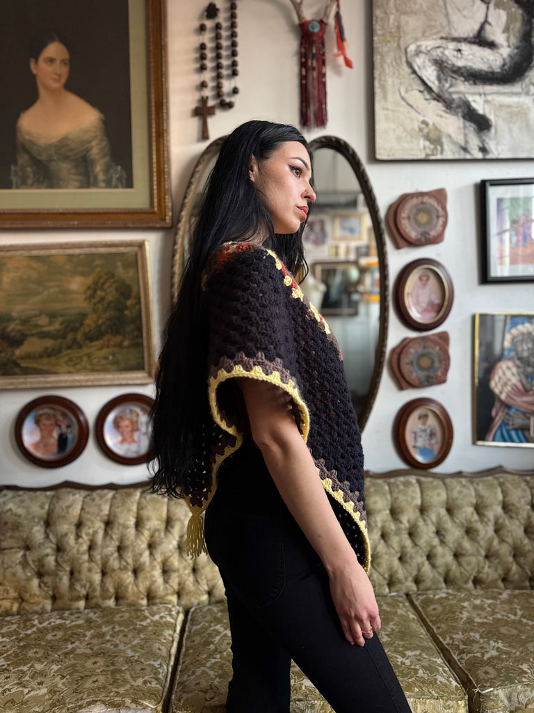 Vintage Handmade Crochet Shawl in Brown, Orange and Yellow