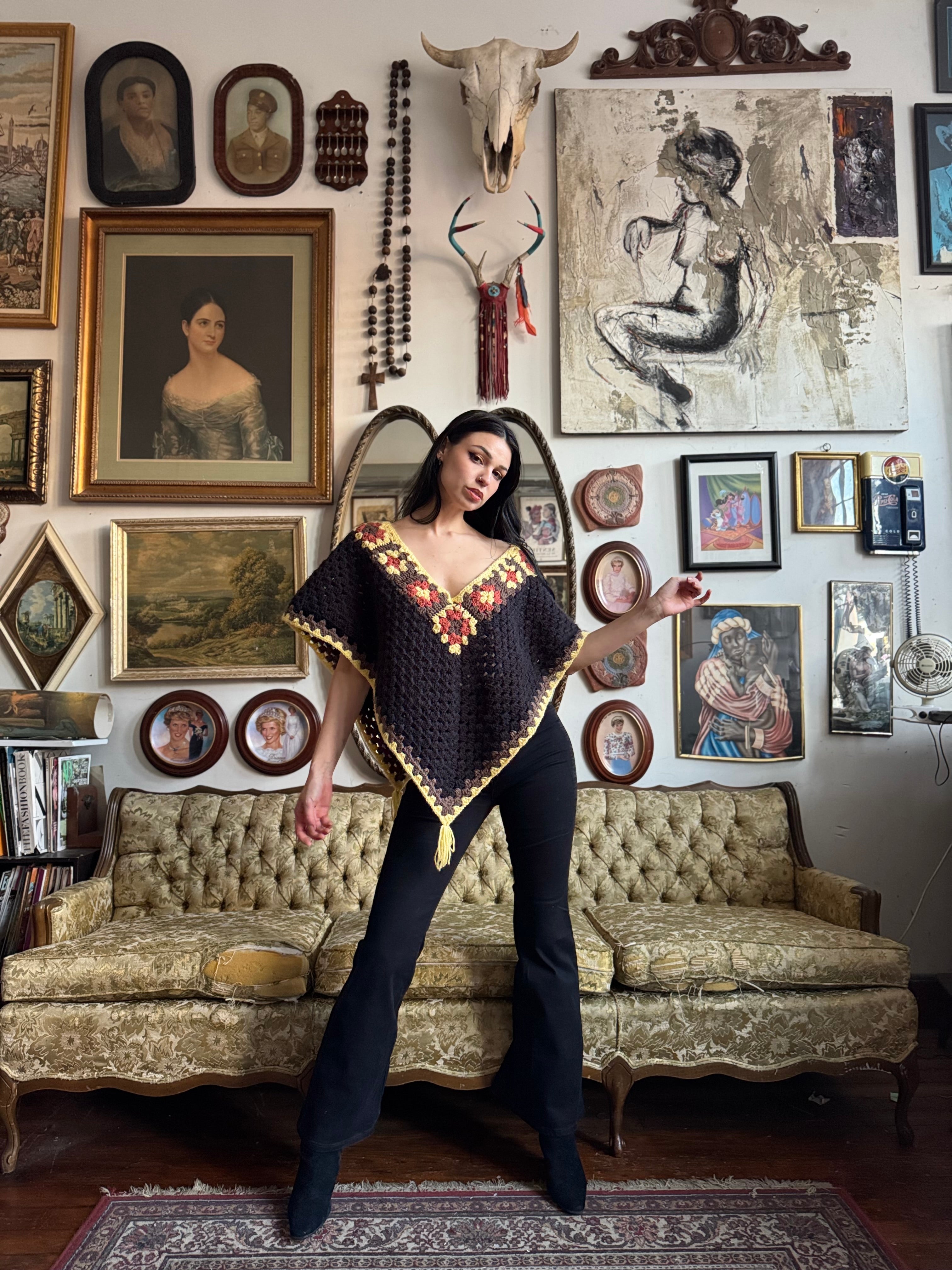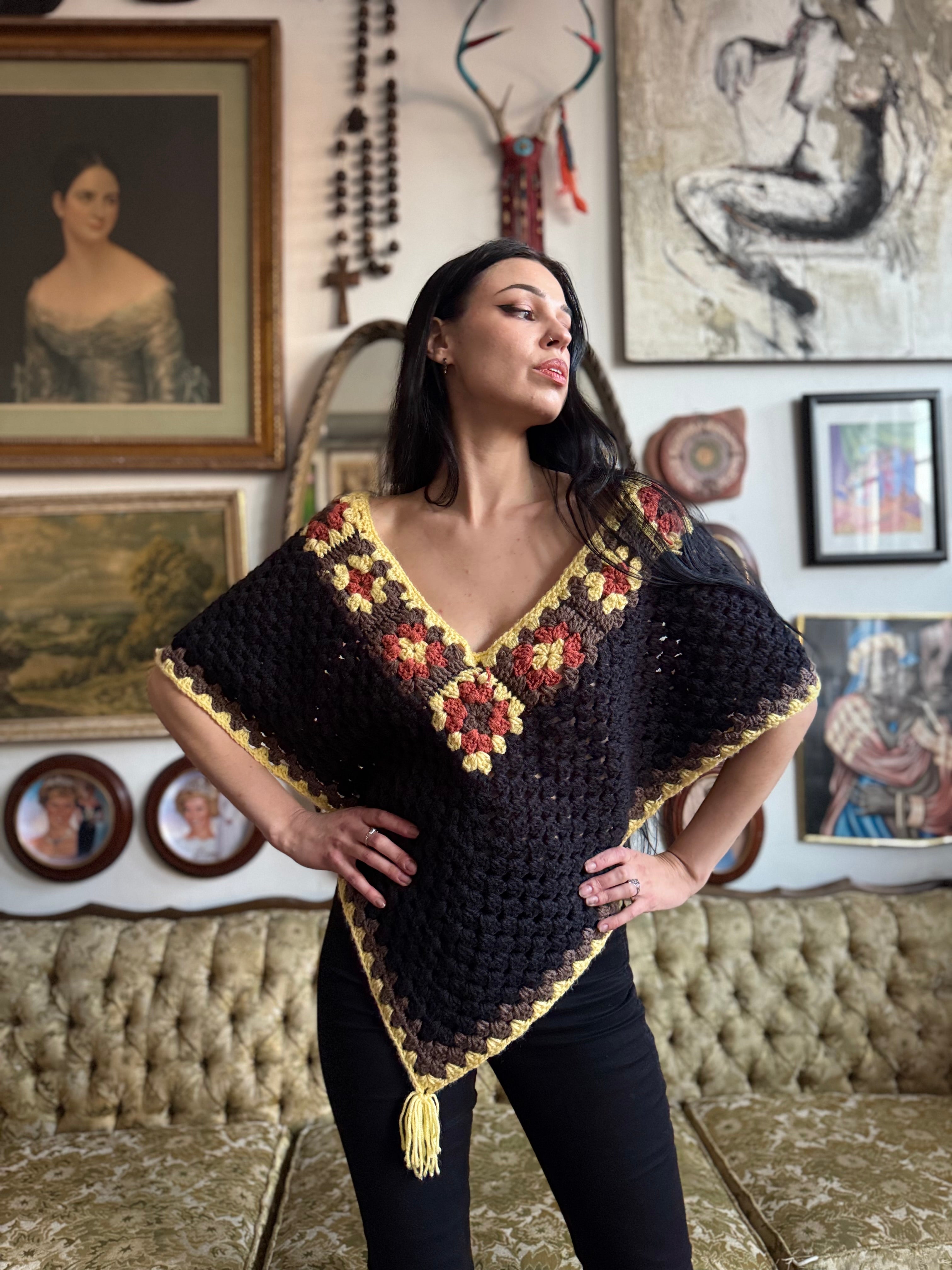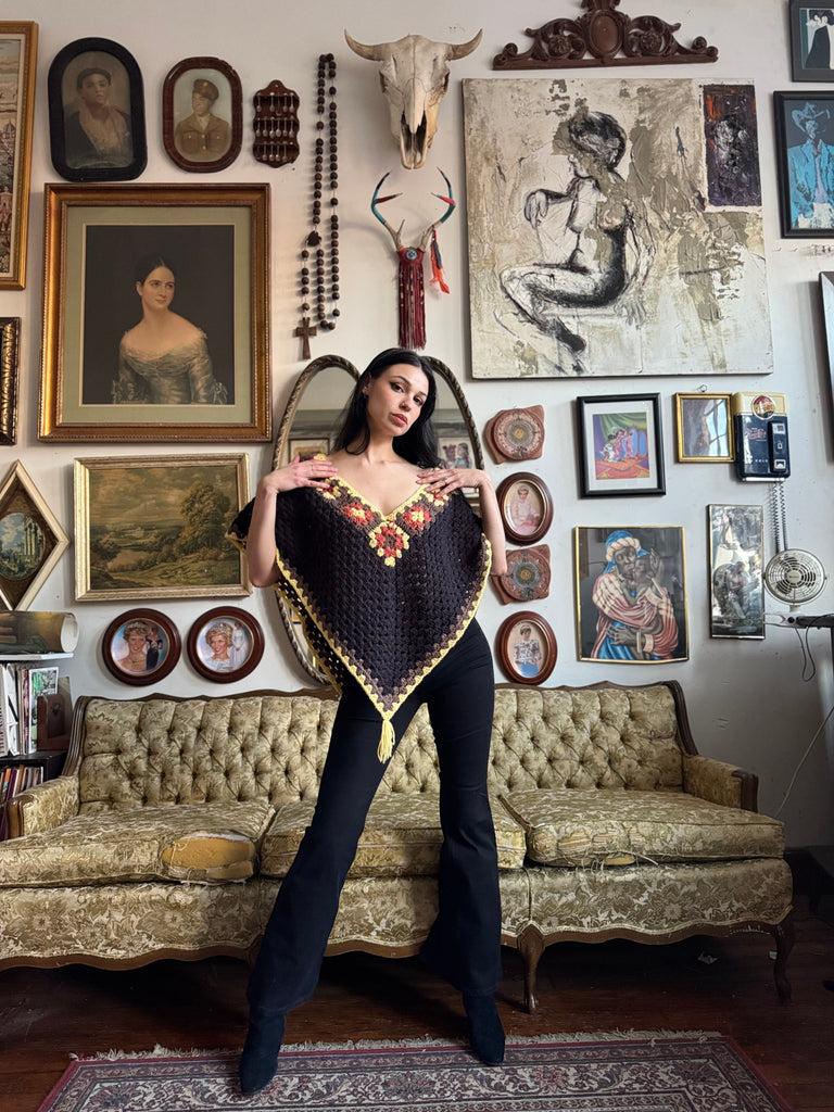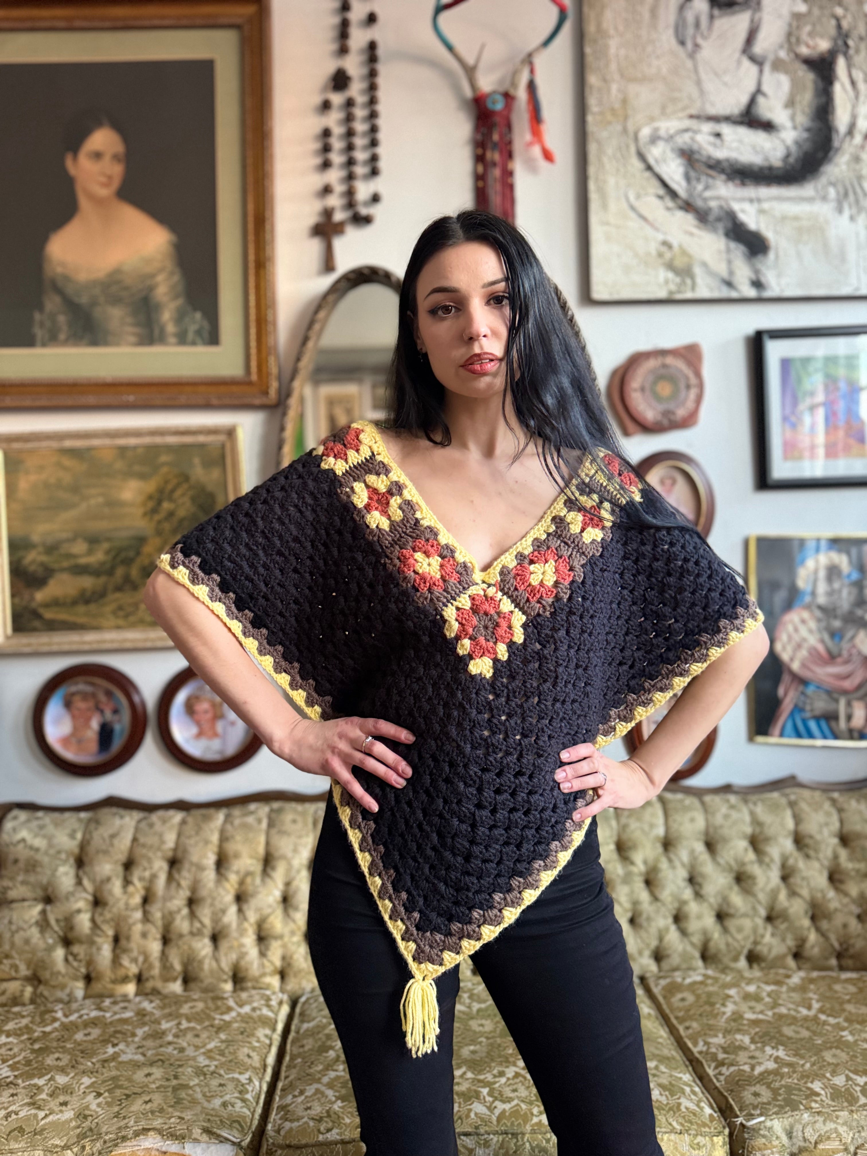 Vintage Handmade Crochet Shawl in Brown, Orange and Yellow