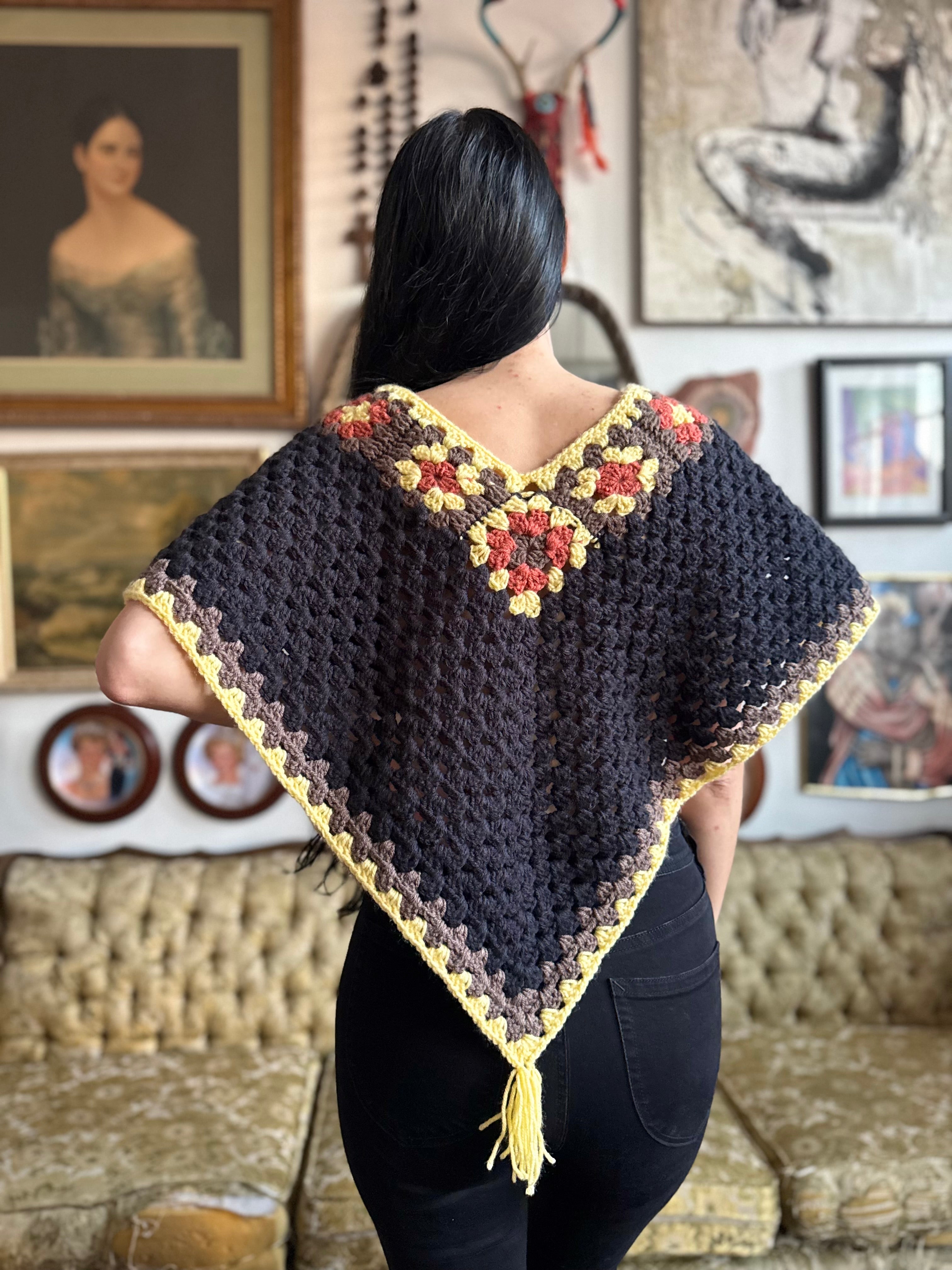 Vintage Handmade Crochet Shawl in Brown, Orange and Yellow One Size Fits Most