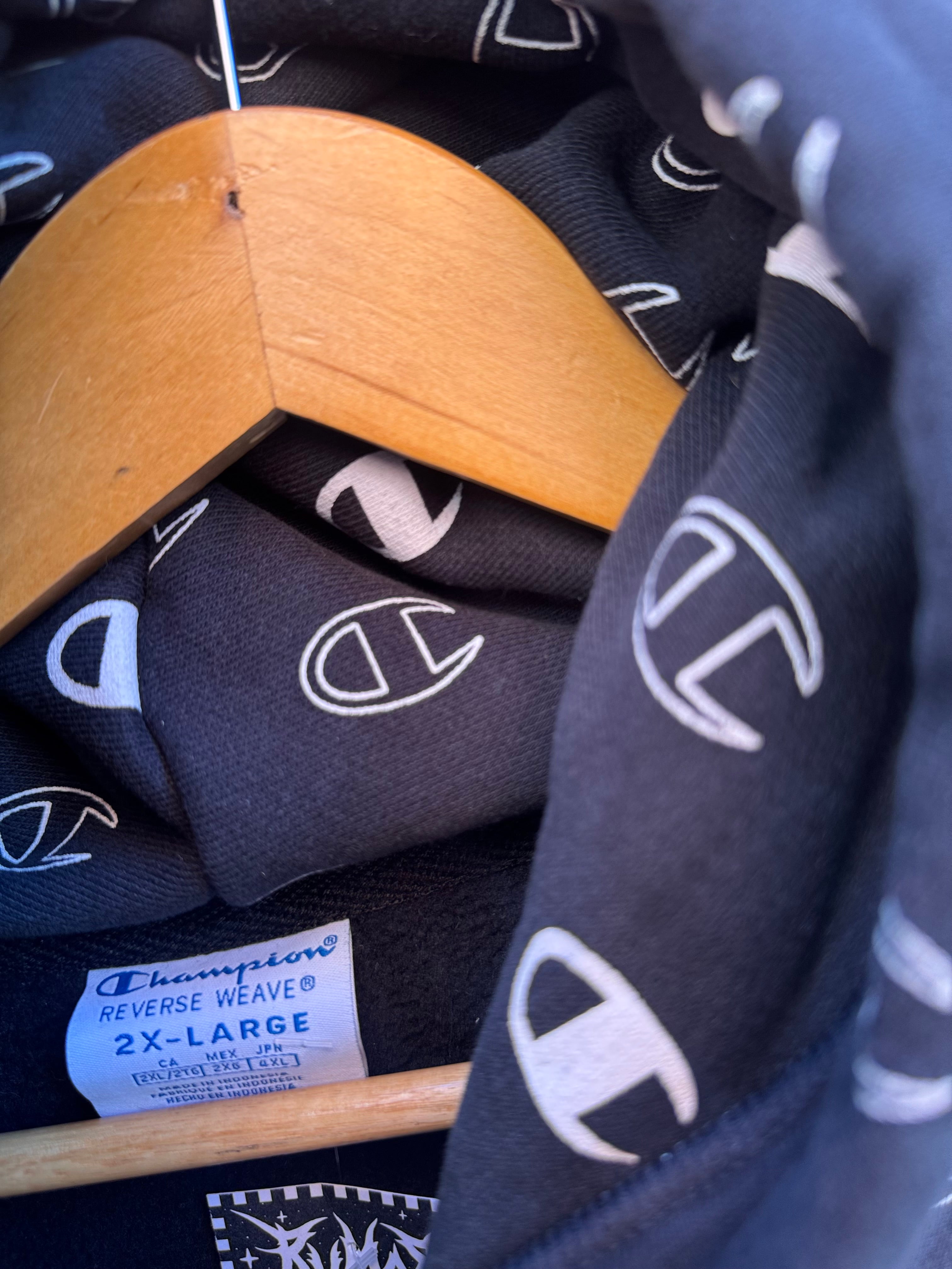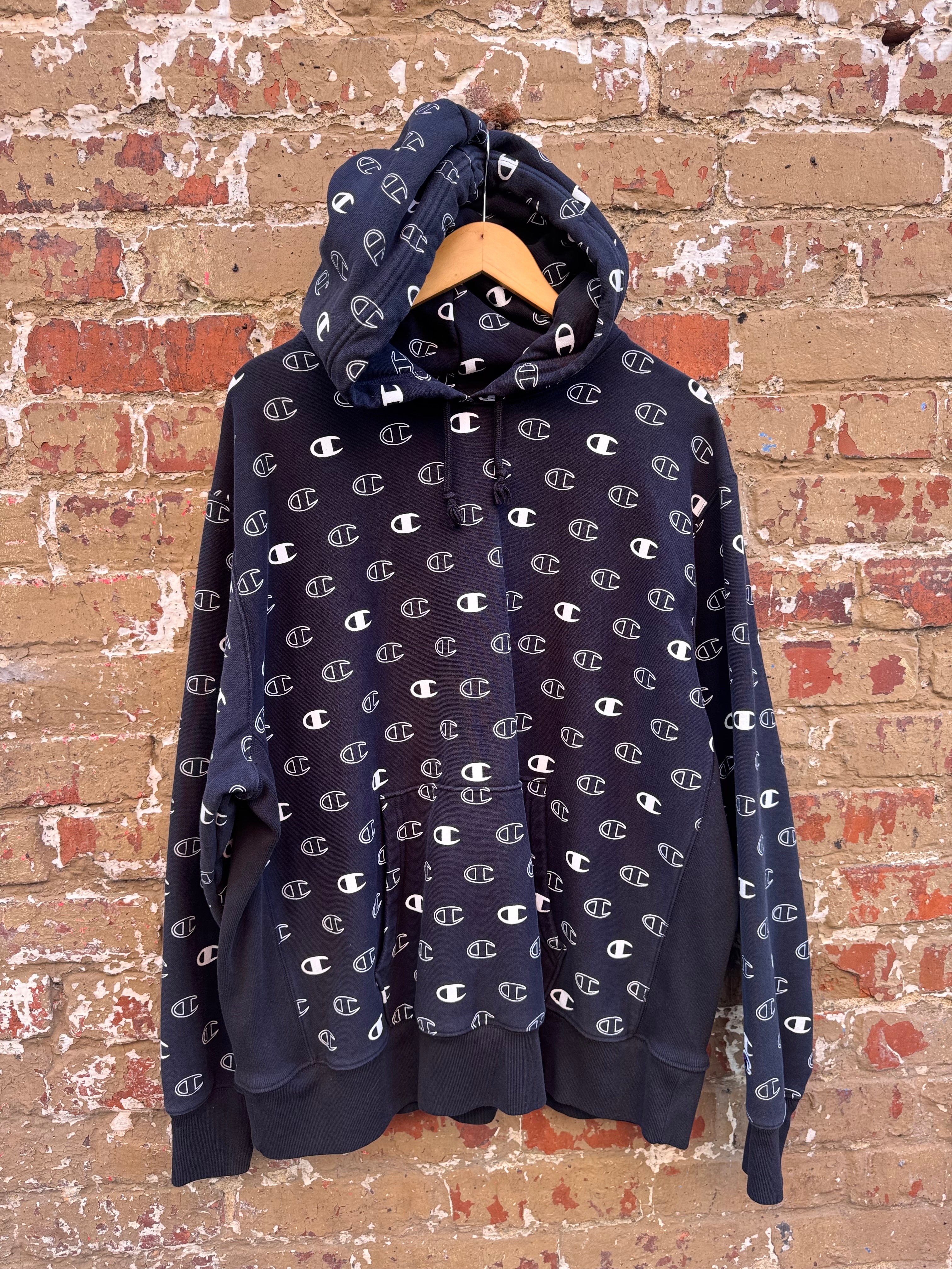 Champion Black Logo Reverse Weave Hoodie Size 2XL