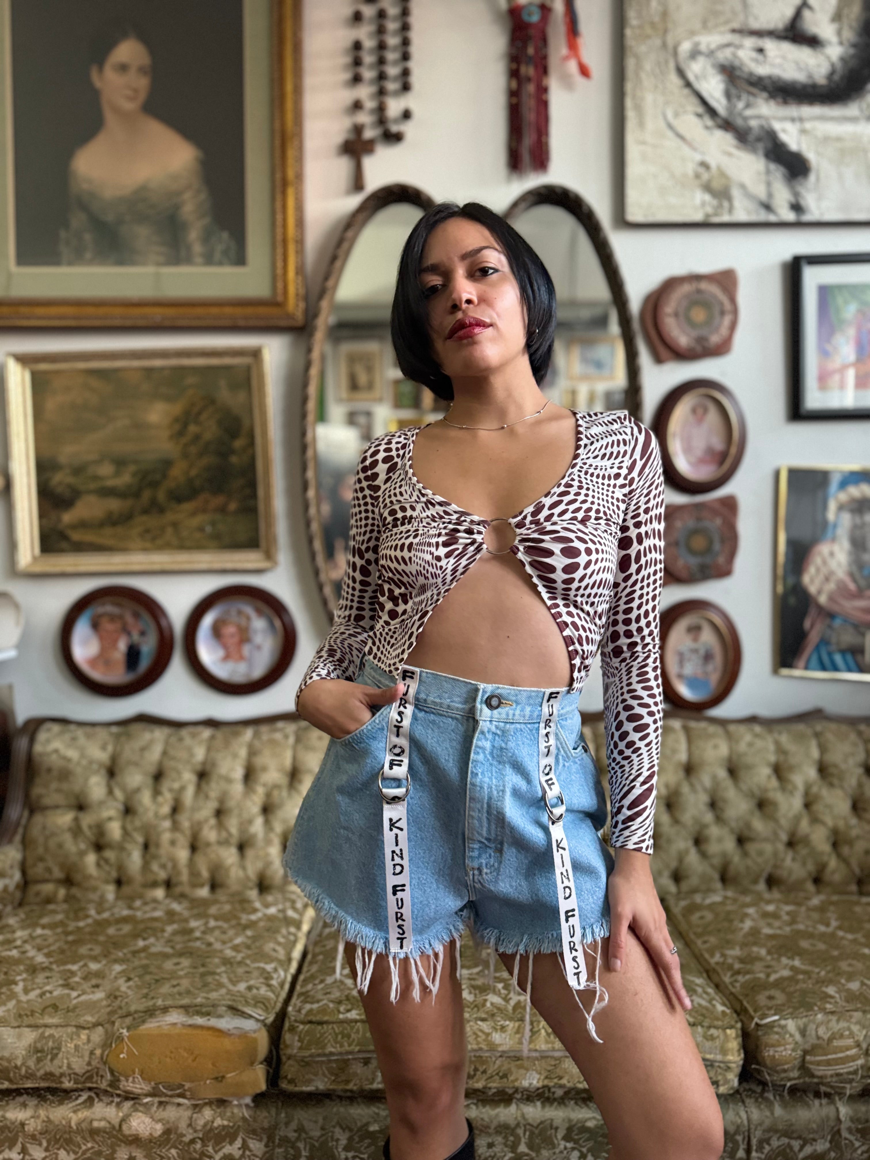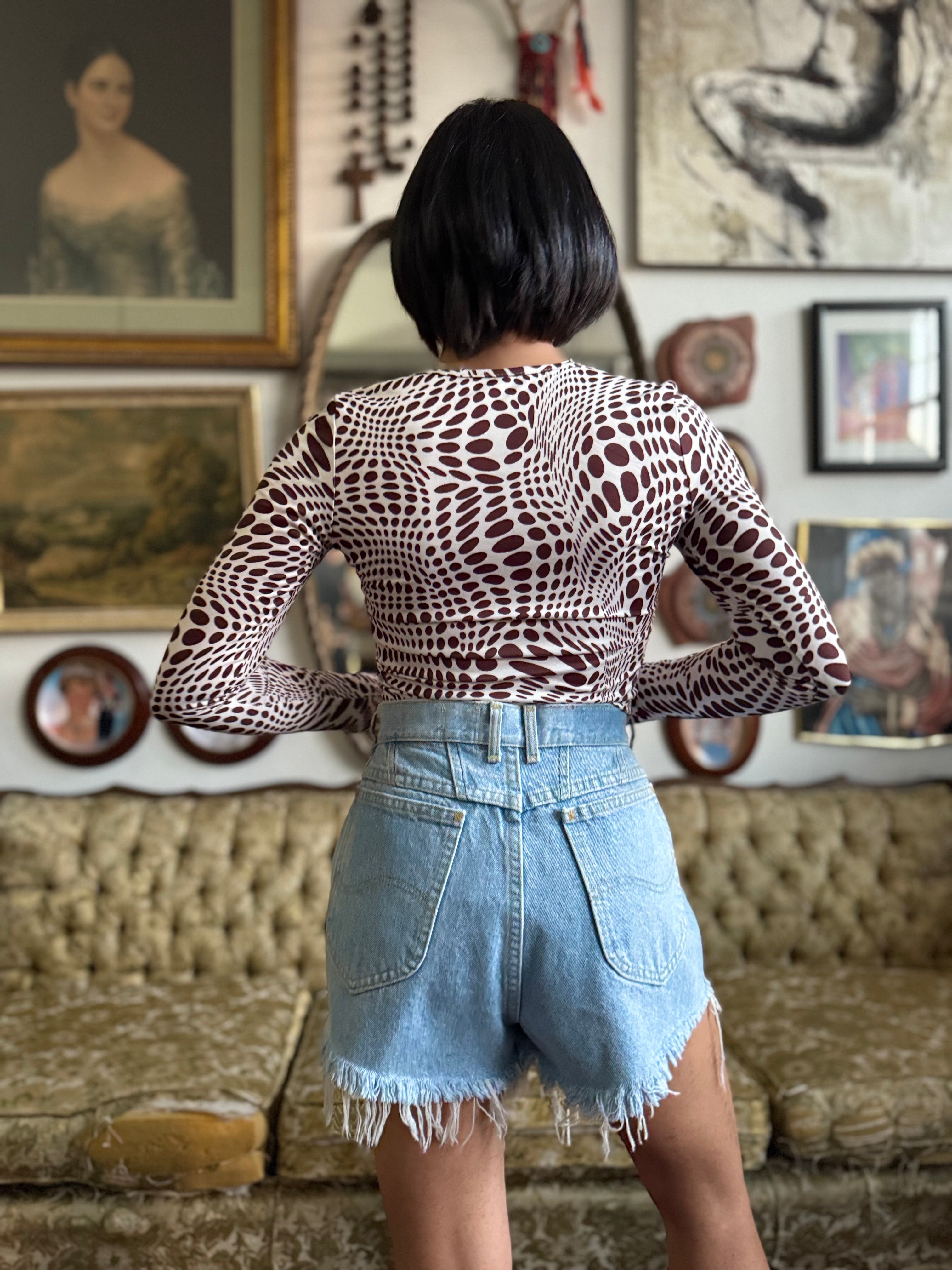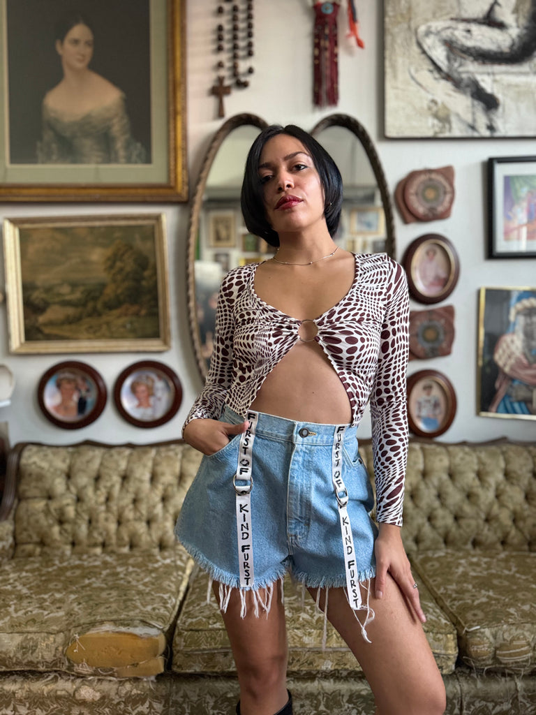 Brown and White O Ring Long Sleeve Crop Top Size XS