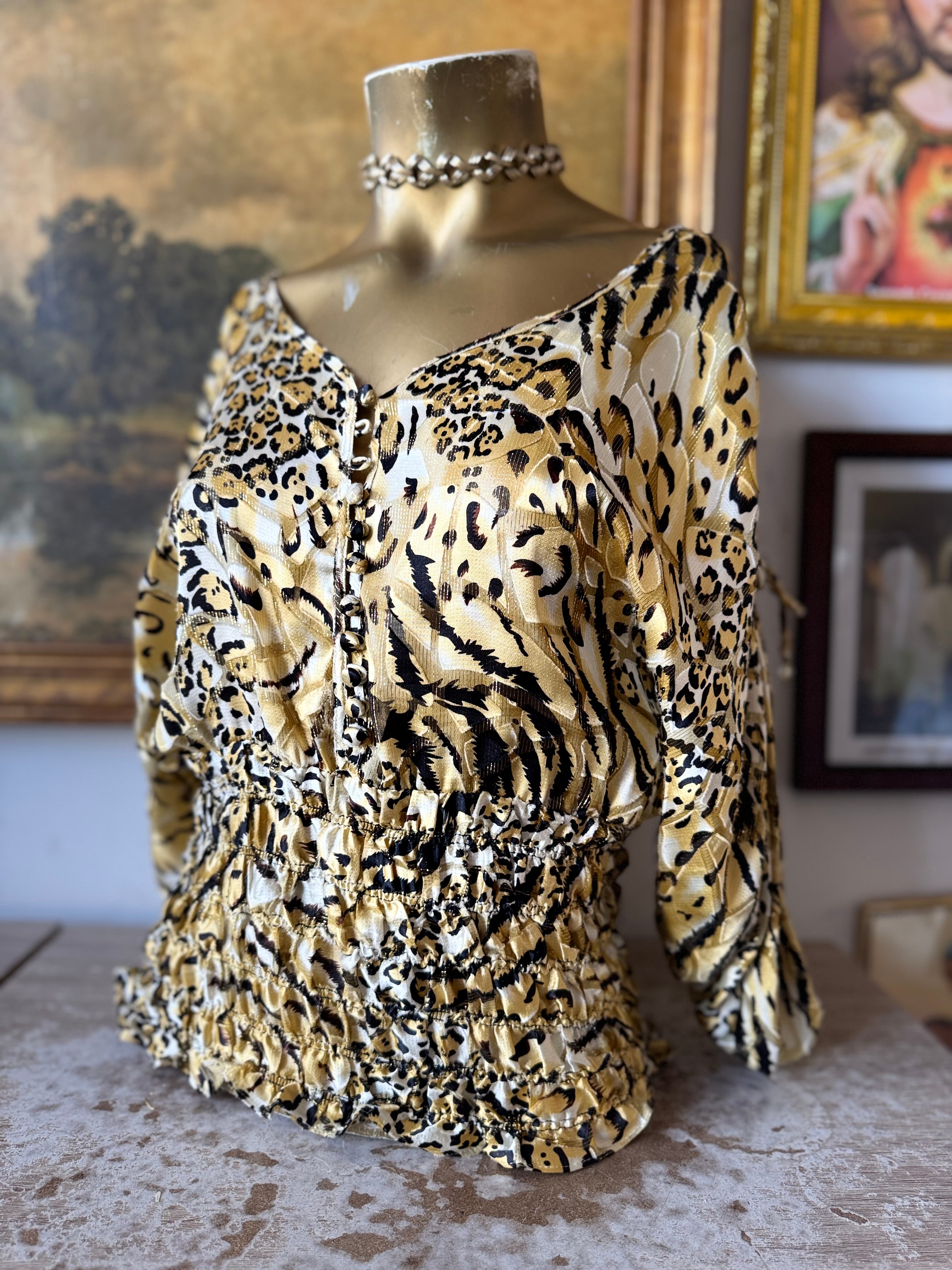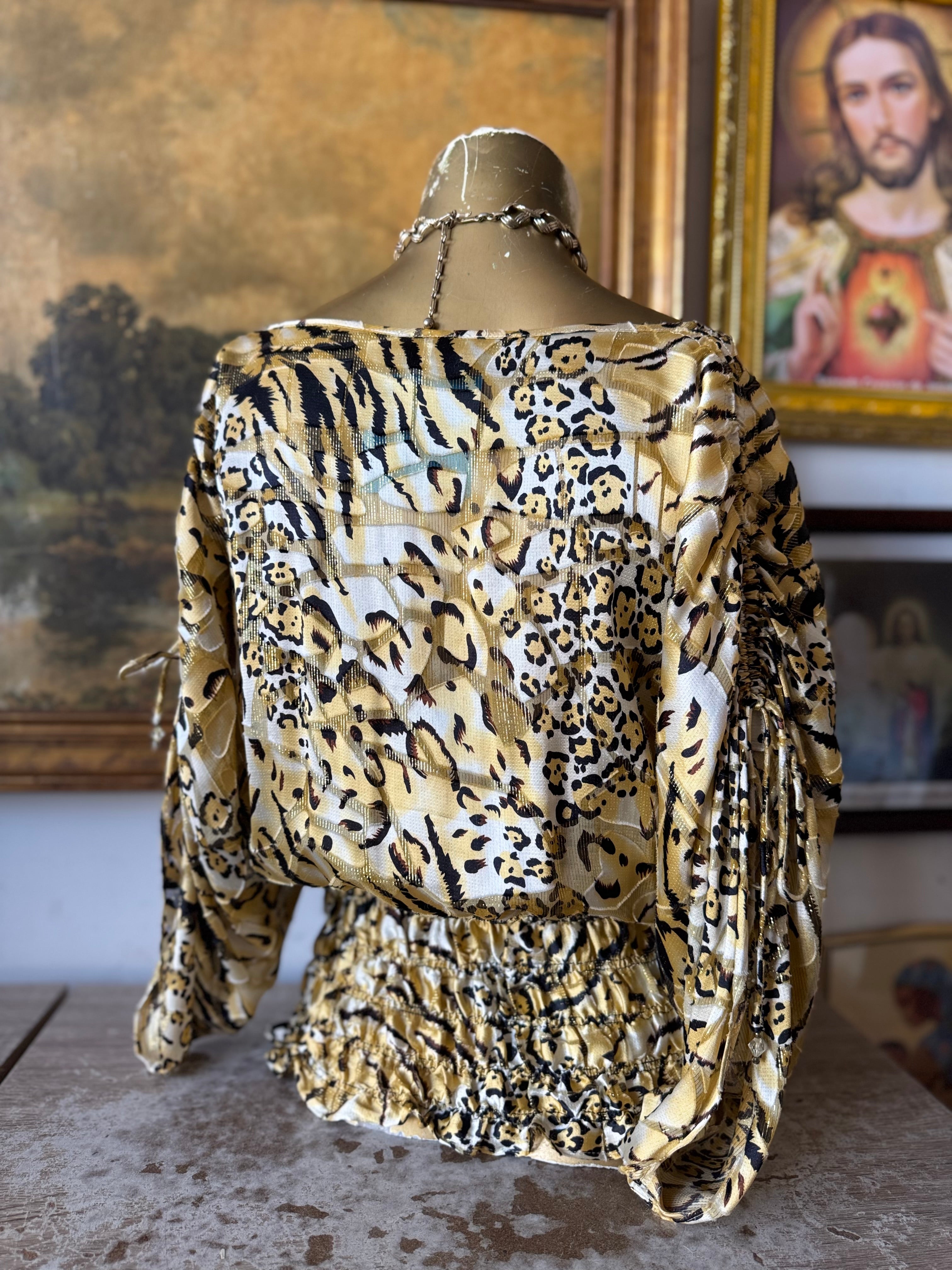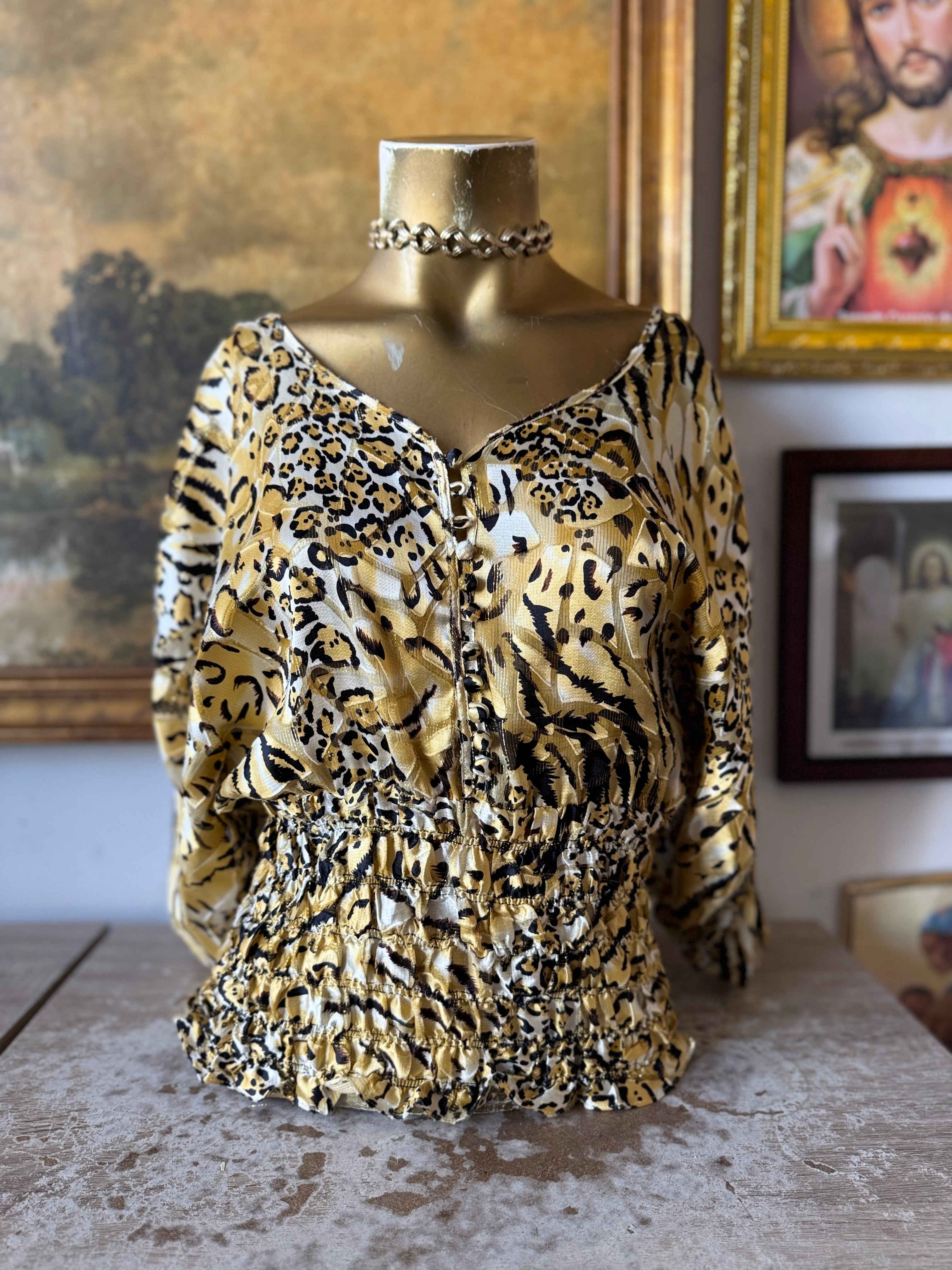 Y2k Cache Smocked Metallic Animal Print Semi Sheer Top Size S