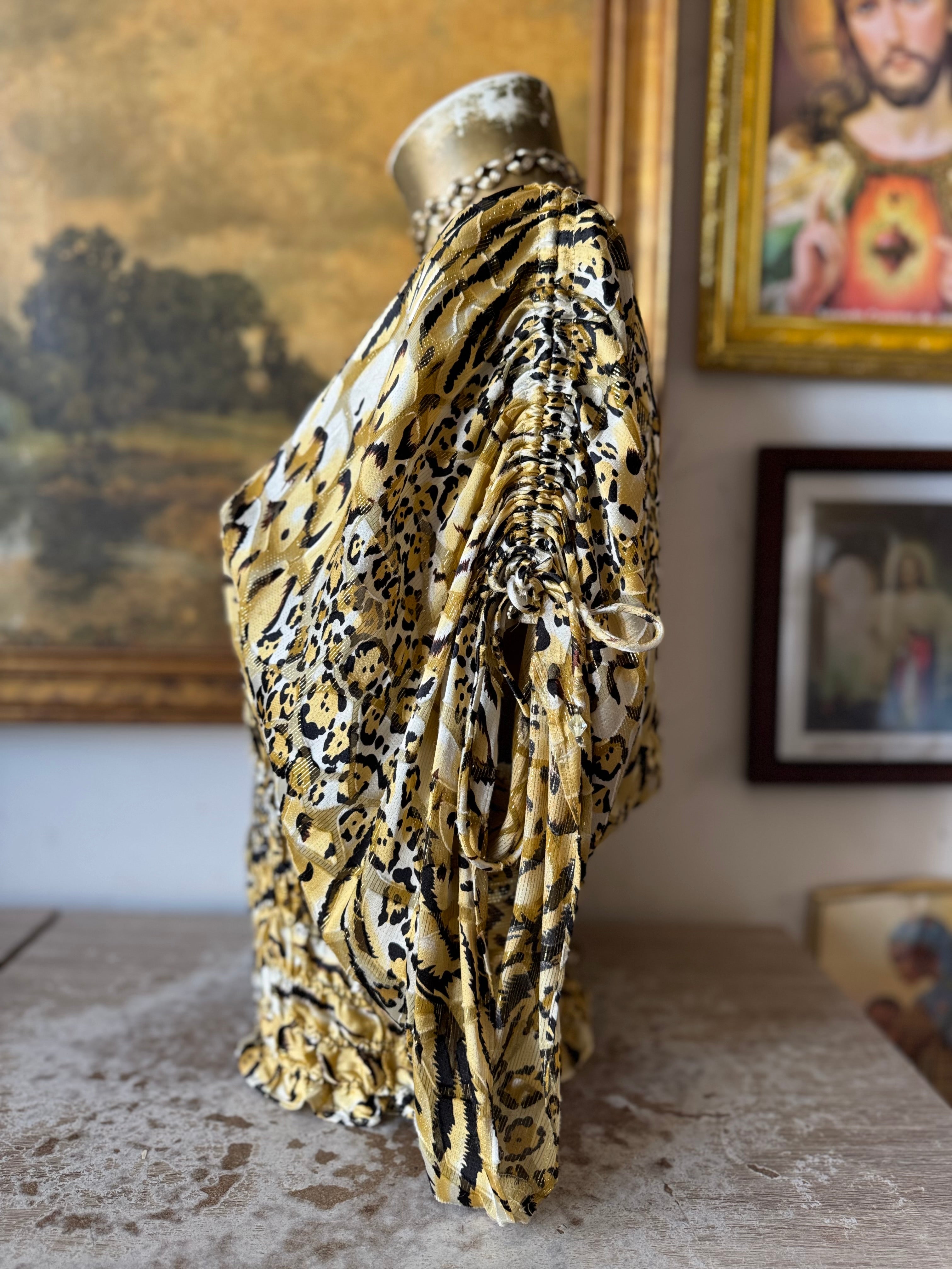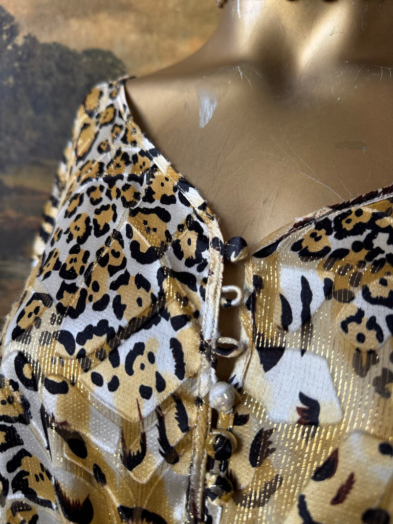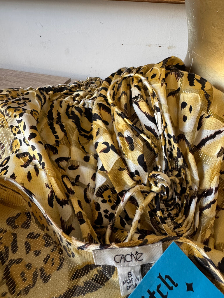 Y2k Cache Smocked Metallic Animal Print Semi Sheer Top Size S