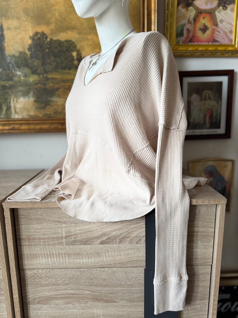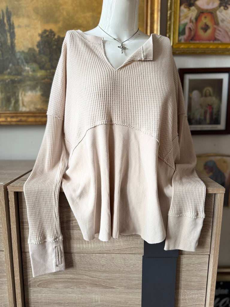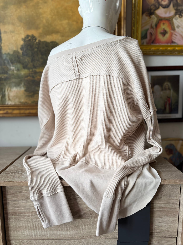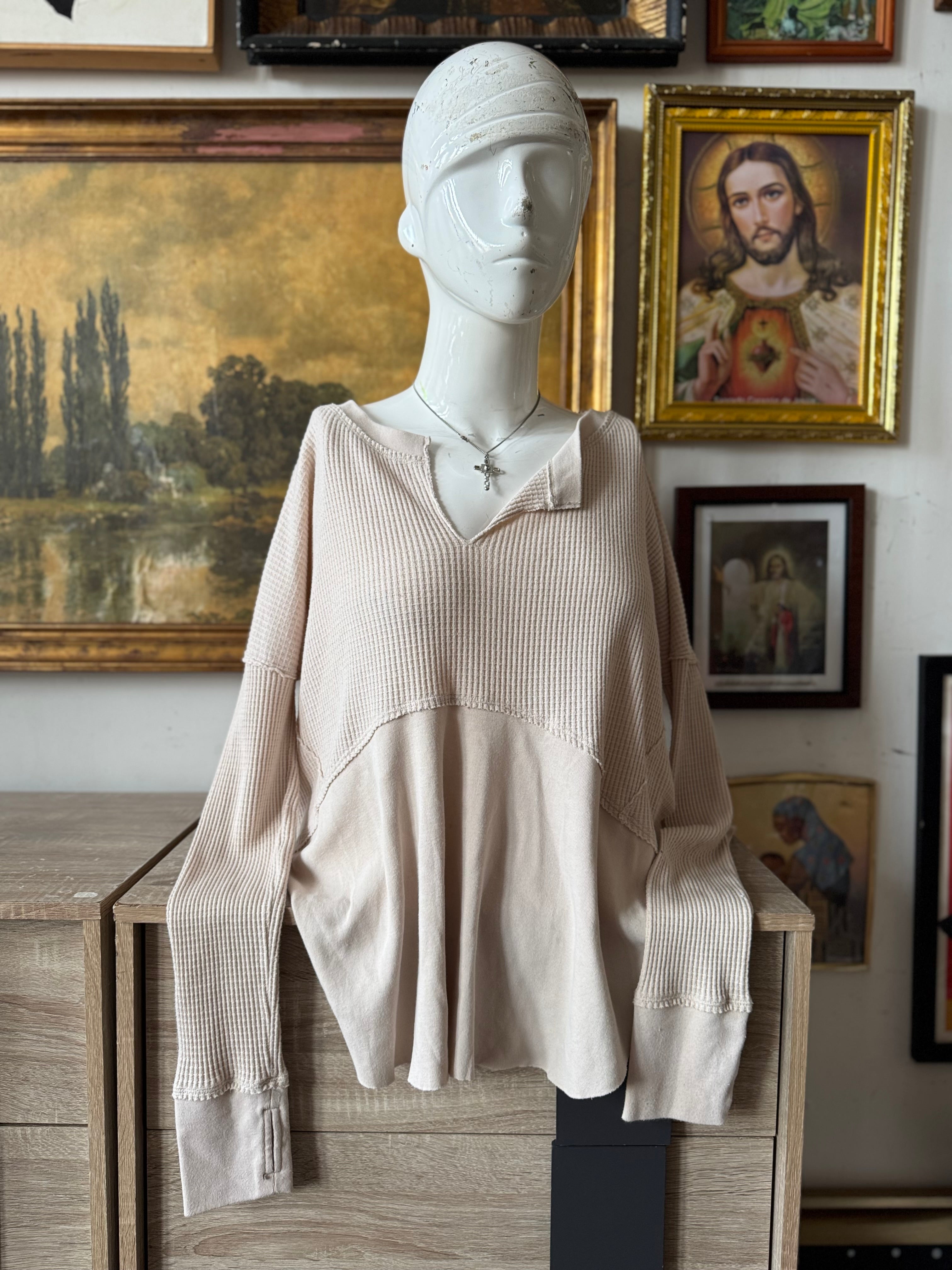 FP Waffle Knit Oversized Long Sleeve Top Size Medium