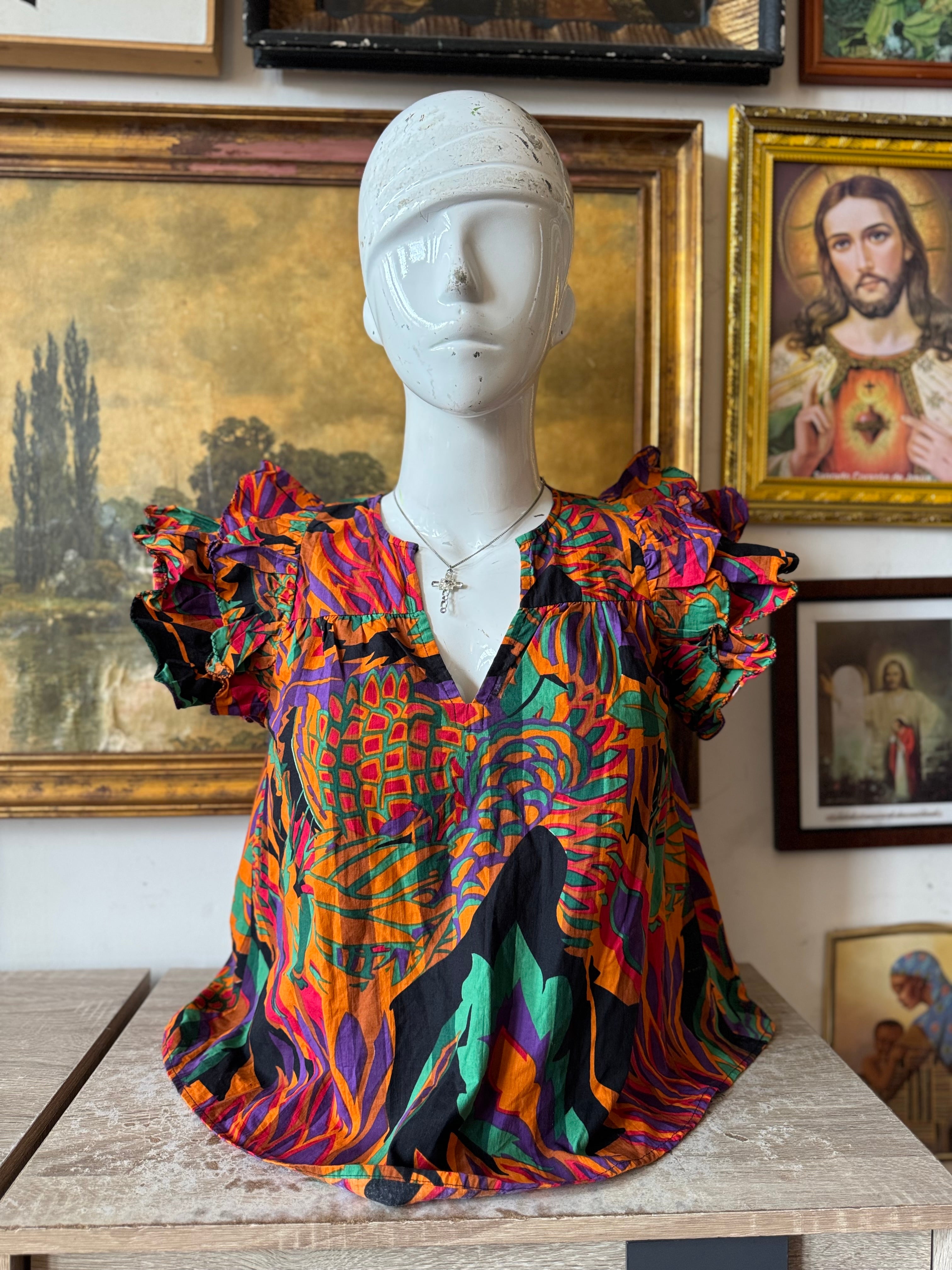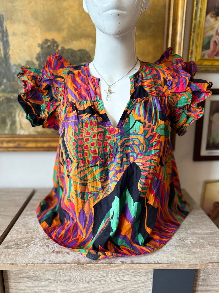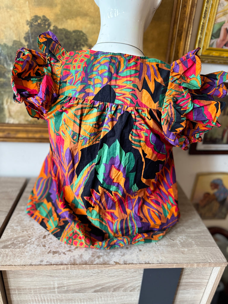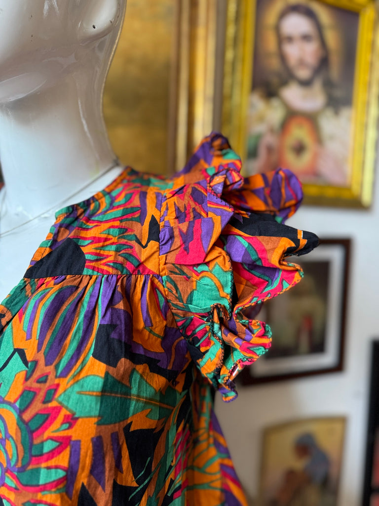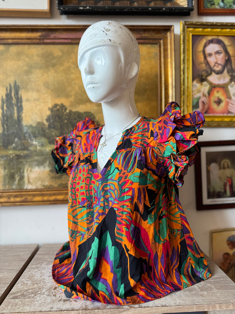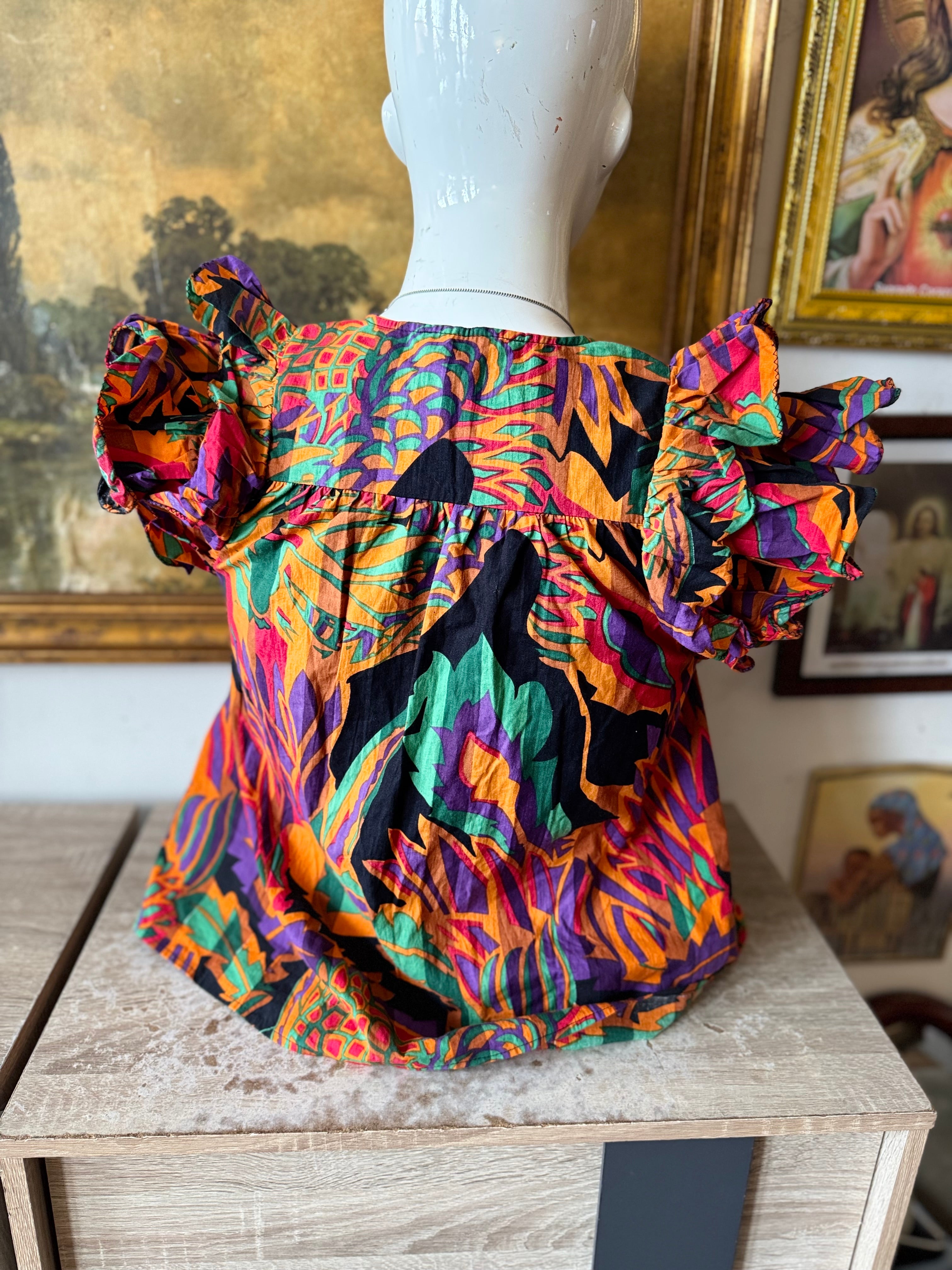 House of Harlow by Nicole Richie Tropical Print Ruffle Sleeve Top Size M