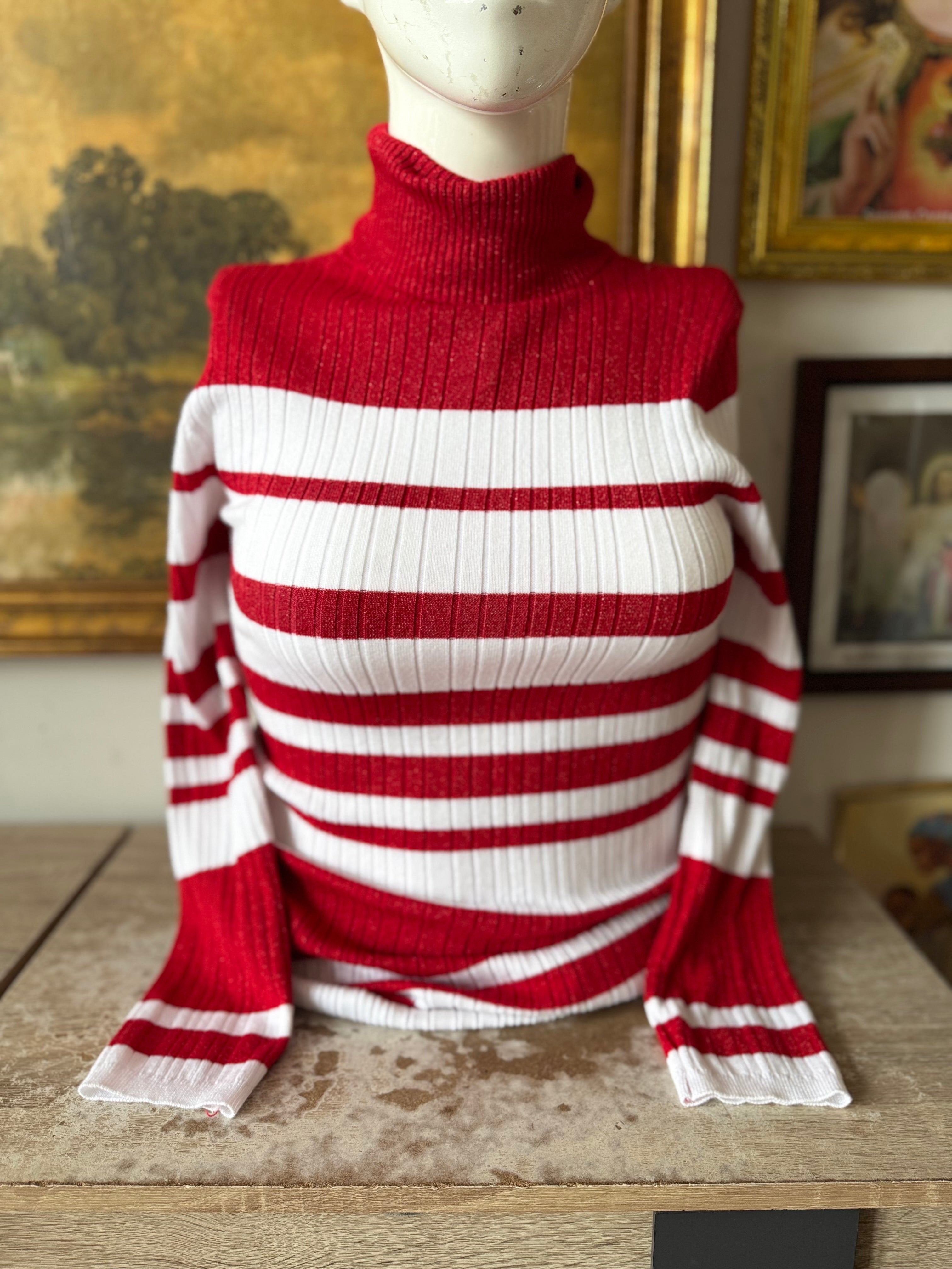 Y2k Metallic Ribbed Ashley Stewart Holiday Knit Turtleneck Size L