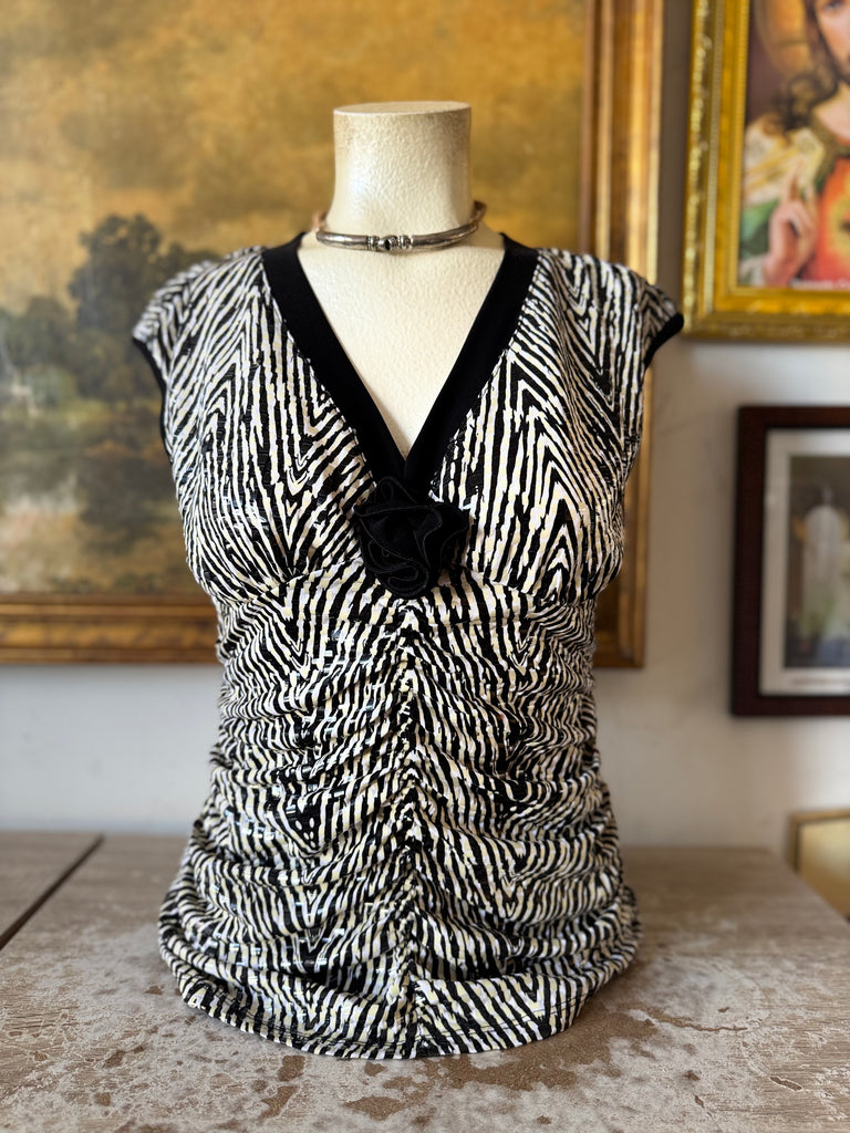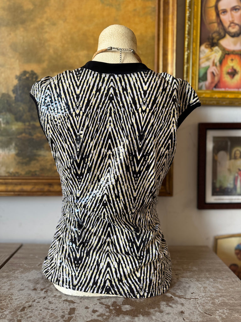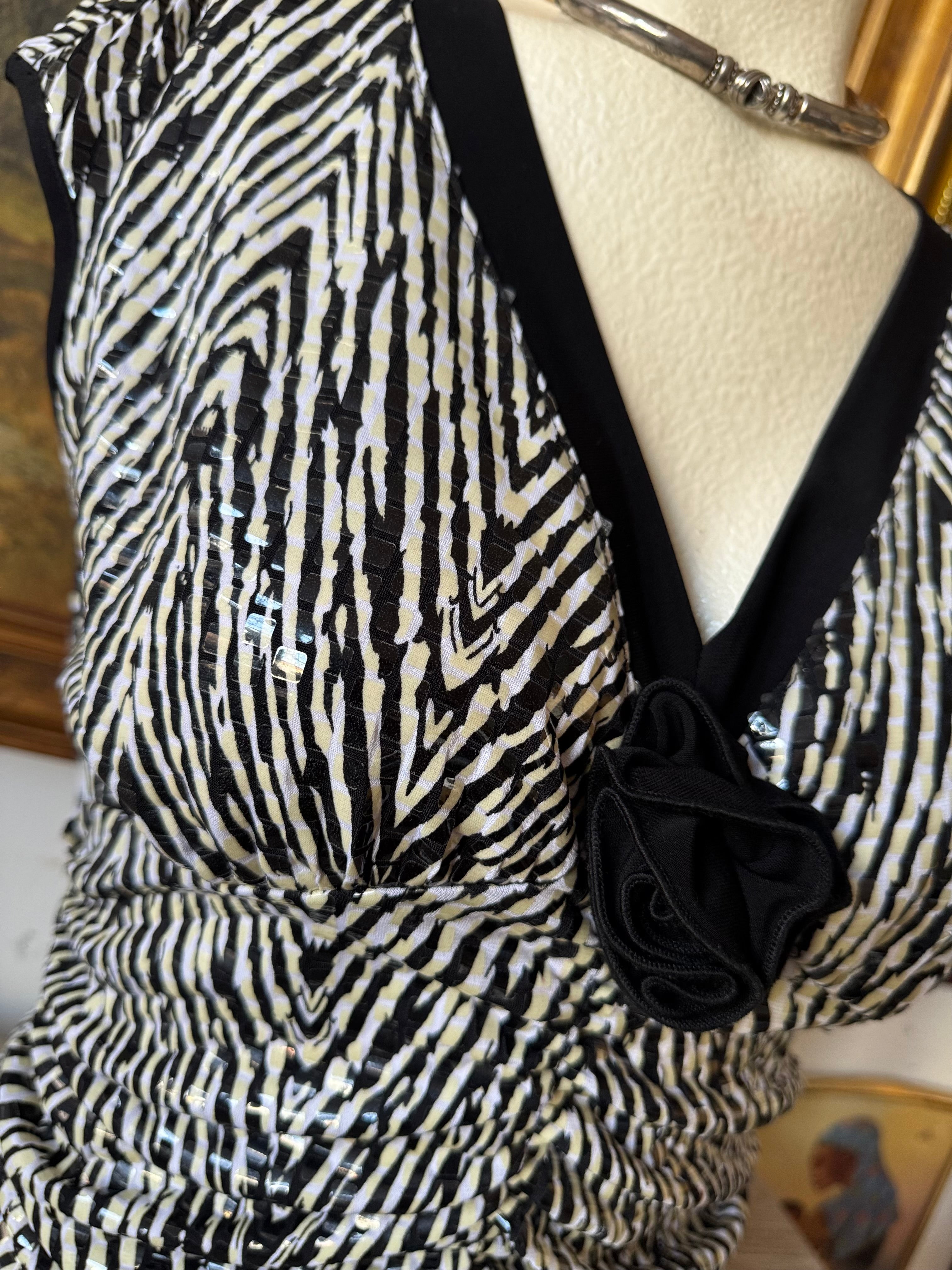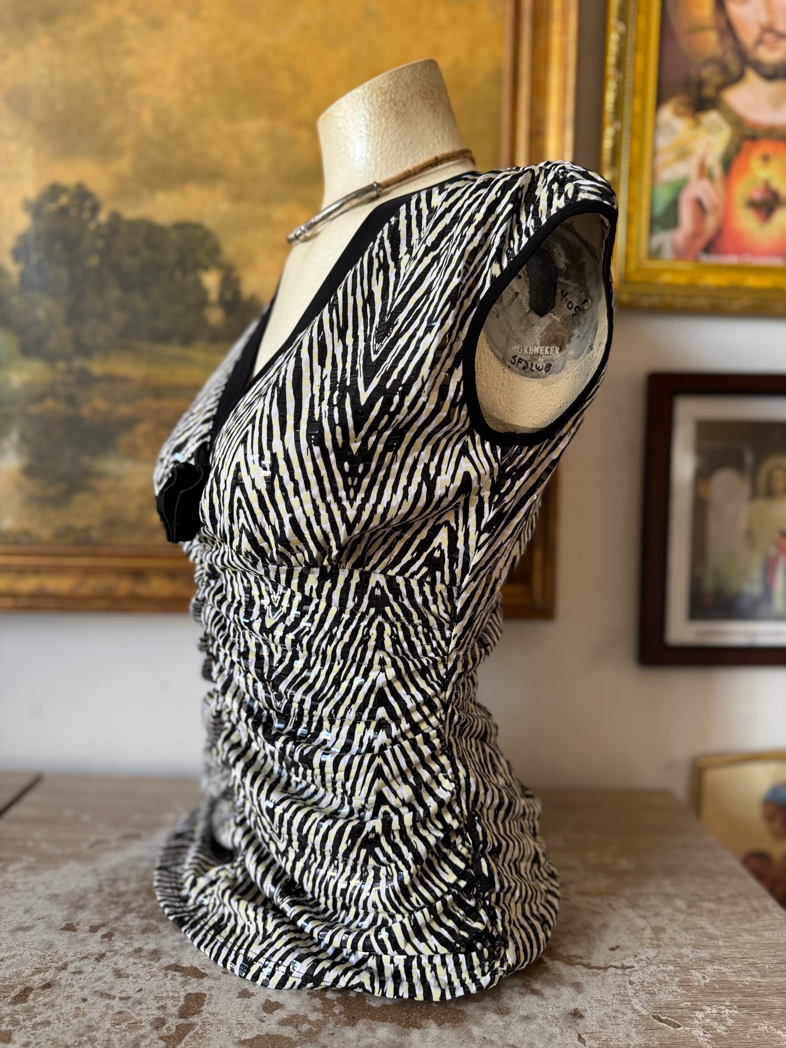 Y2k Sequin Zebra Print Ruched Tank Top Size S