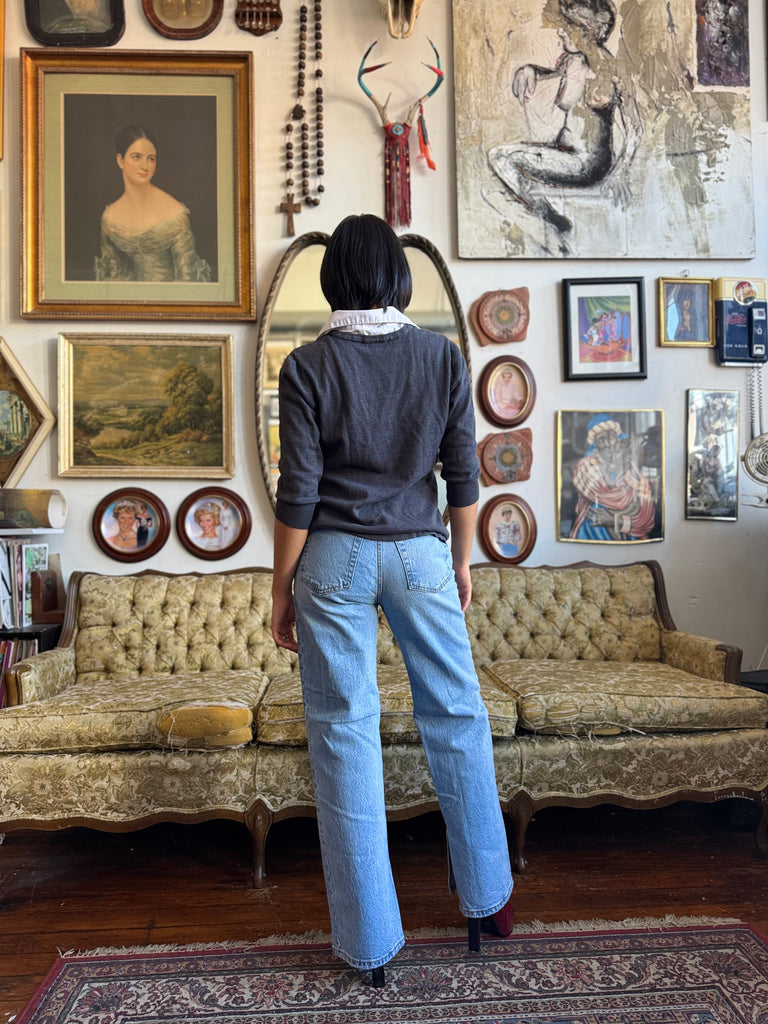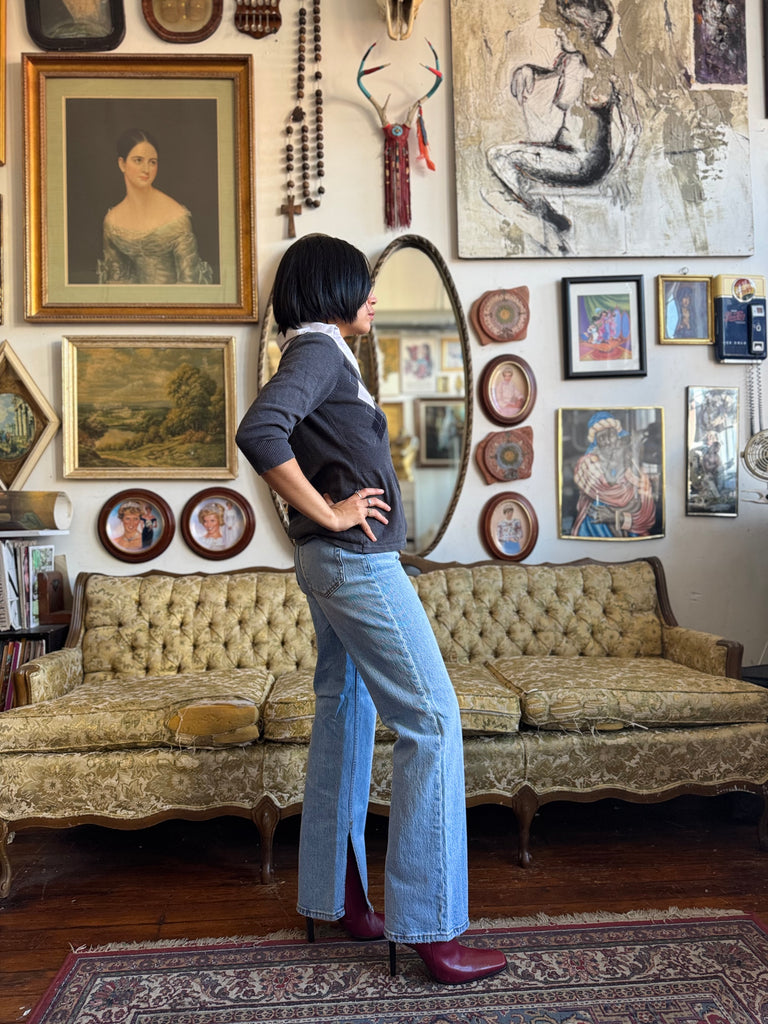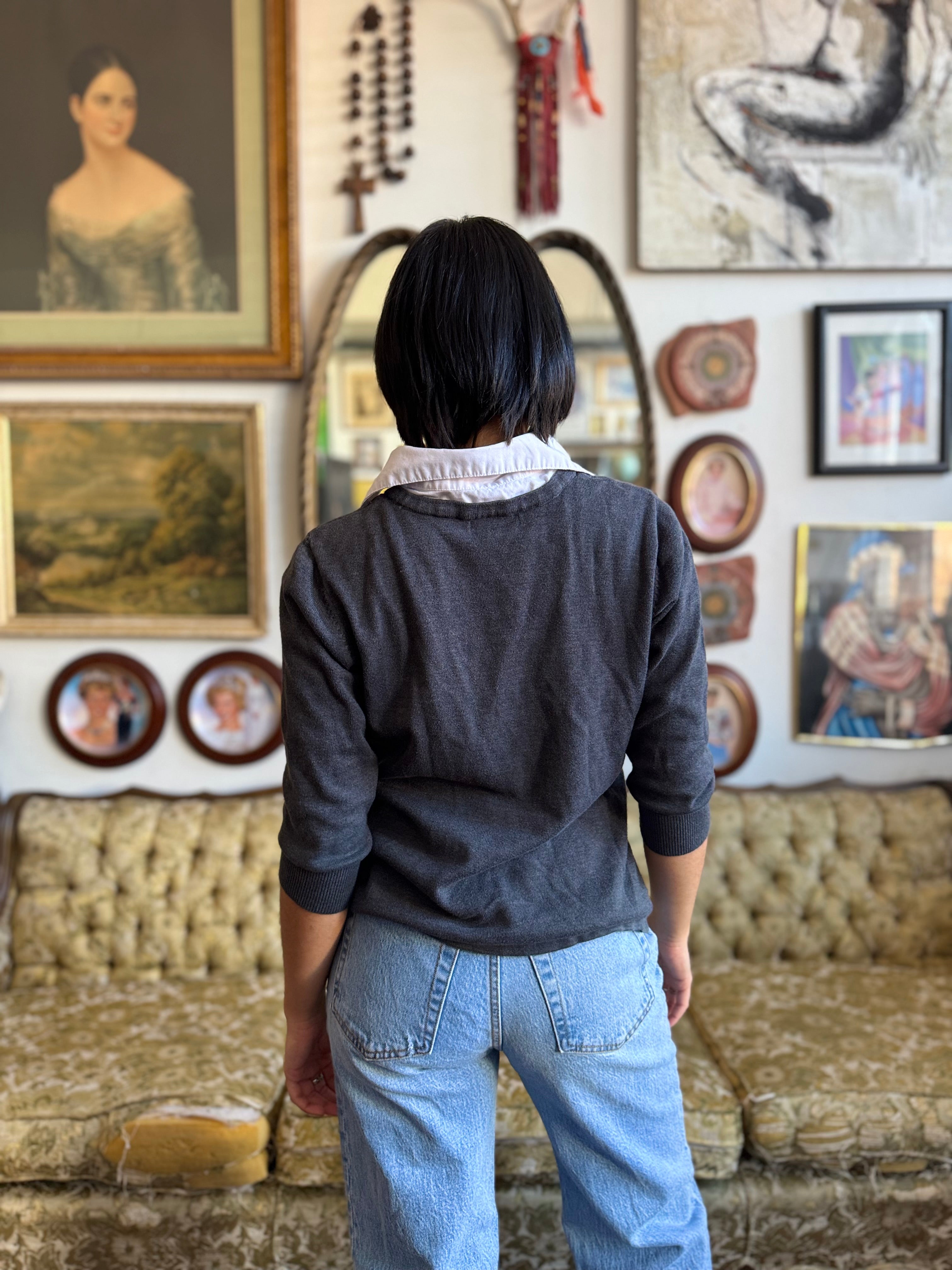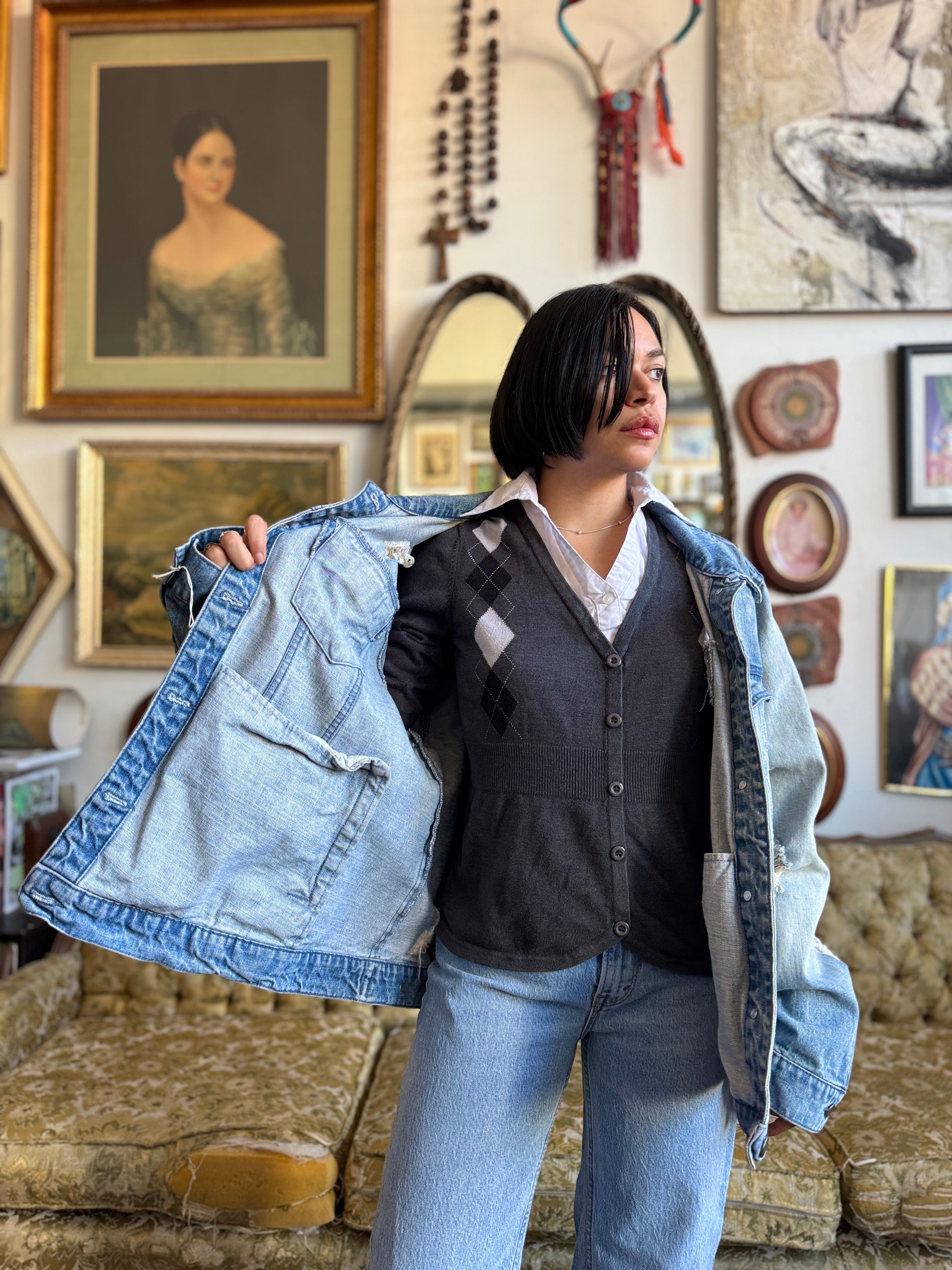 Description: Y2K argyle cardigan layered top with attached button up collar.