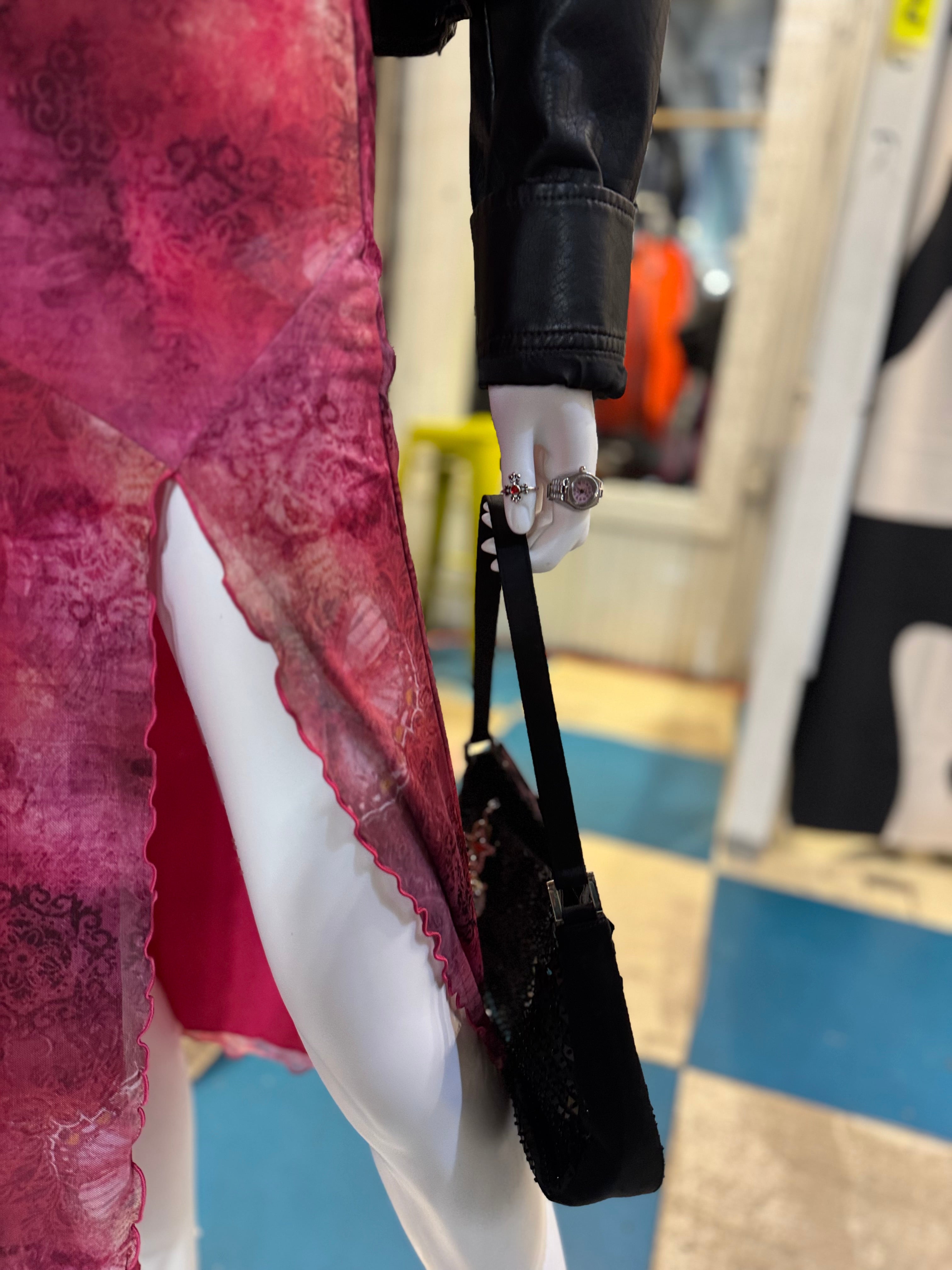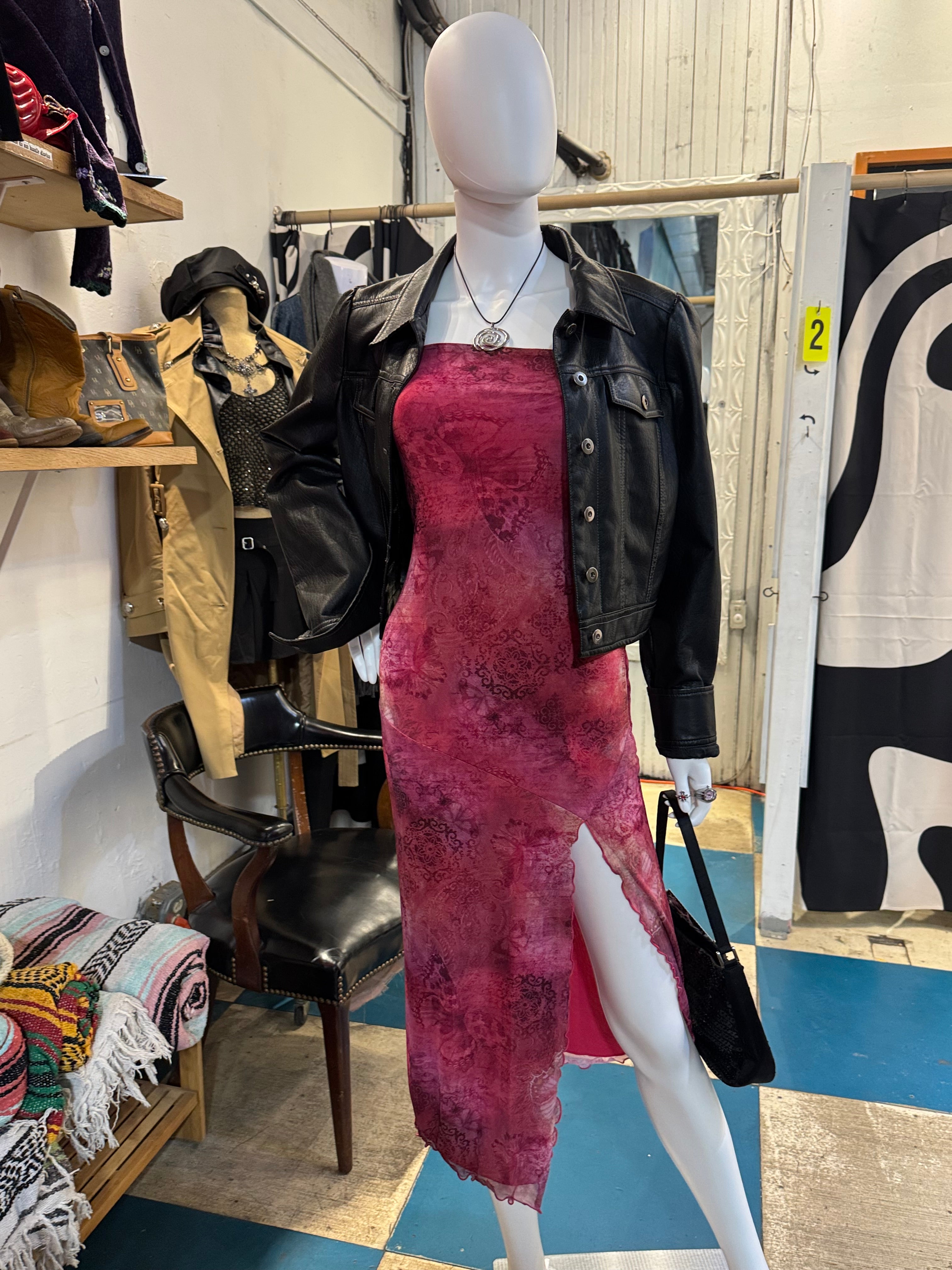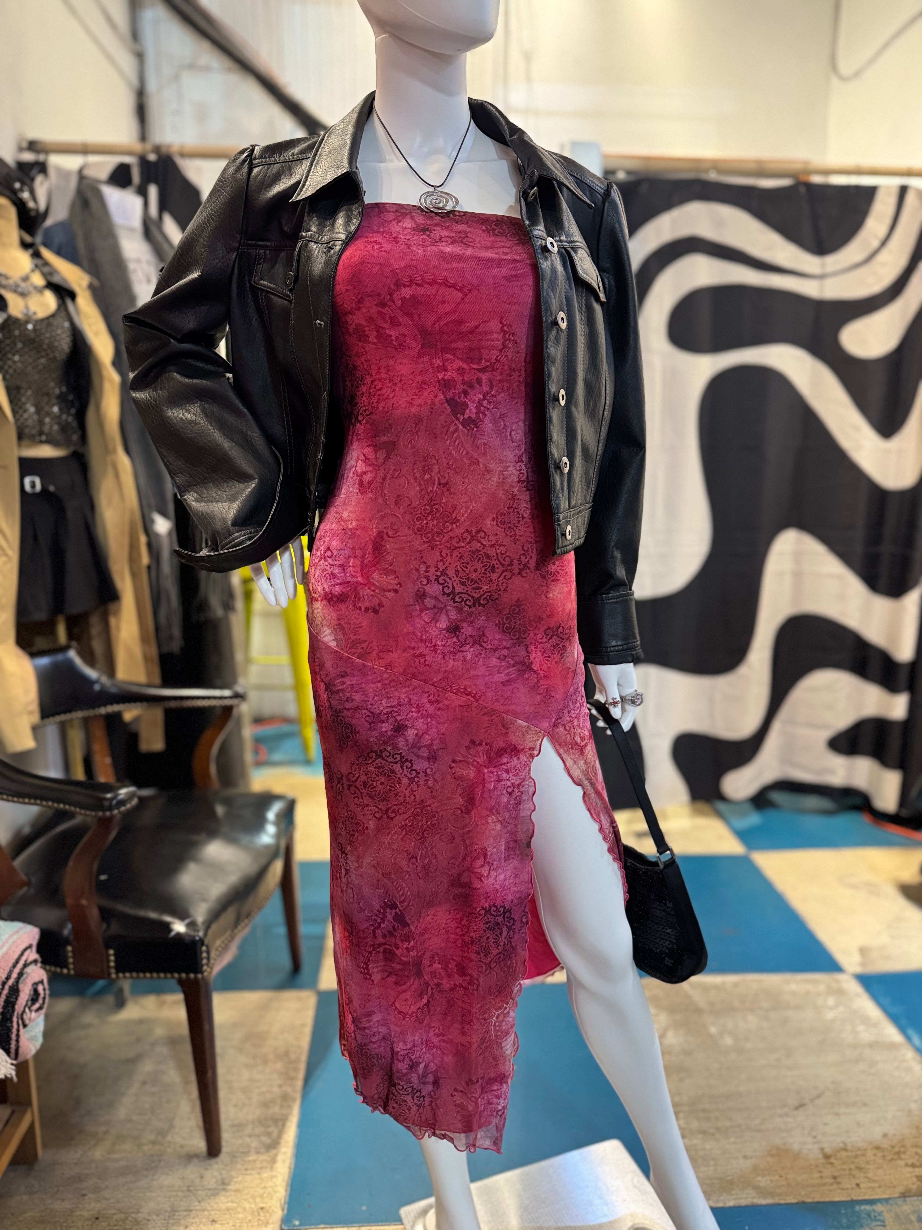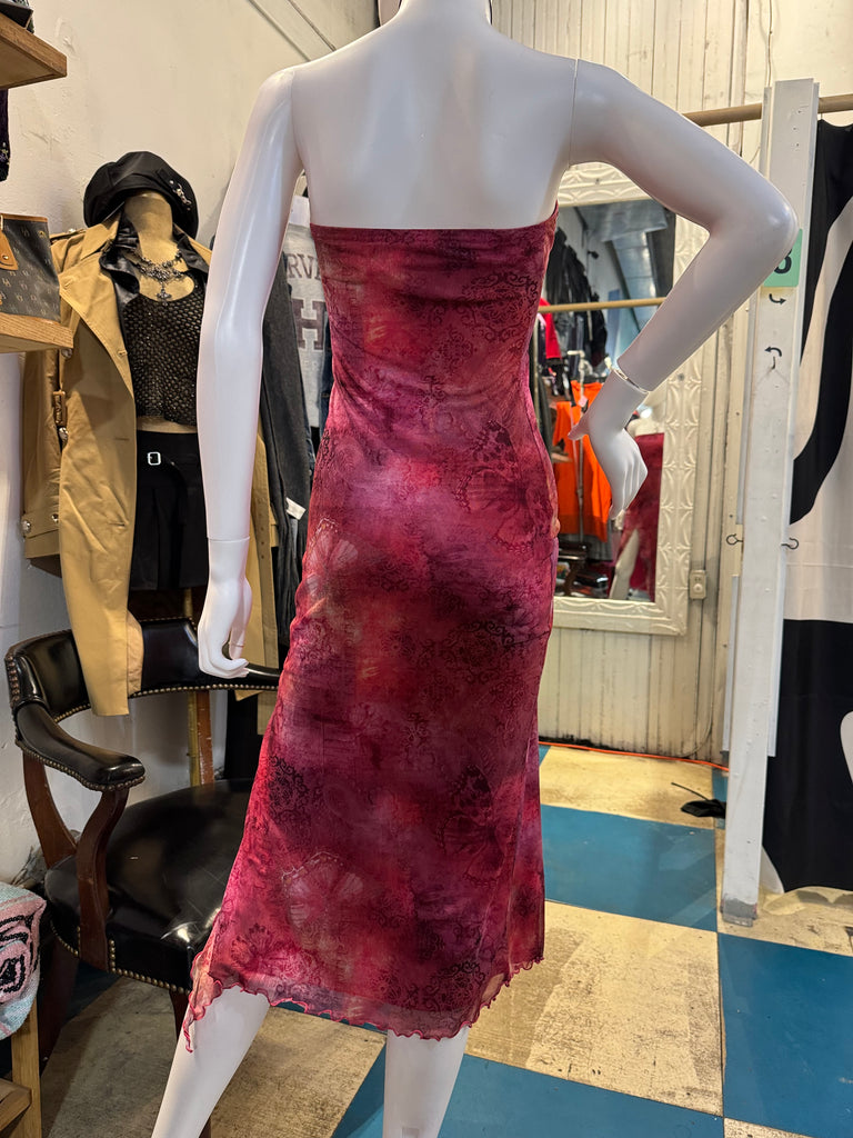 Urban Outfitters NWT Strapless Pink Paisley Mesh Dress Featuring A Lettuce Hem and Slit.