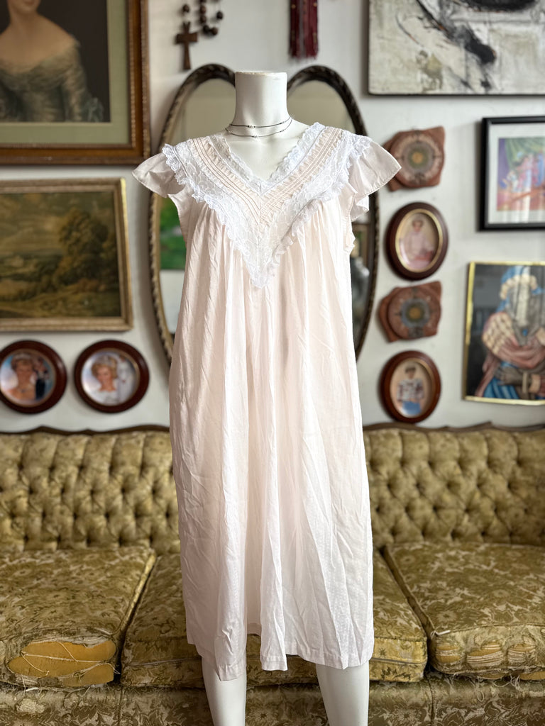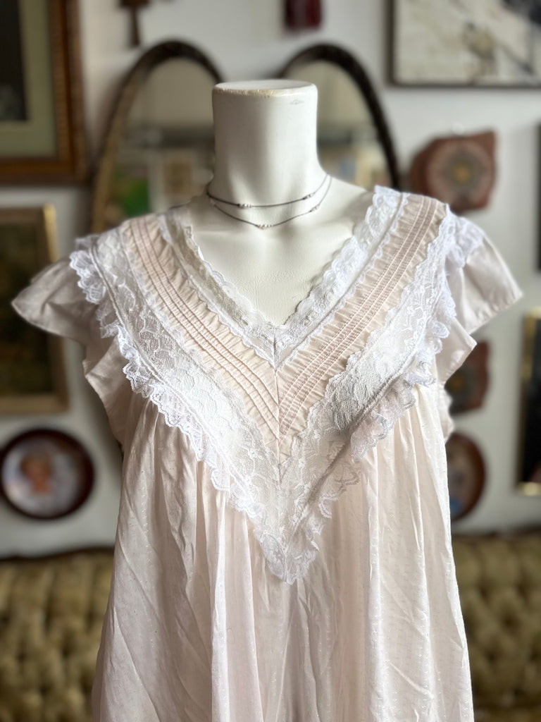 Vintage Barbizon Flutter Sleeve Lace Neckline Nightgown Size M