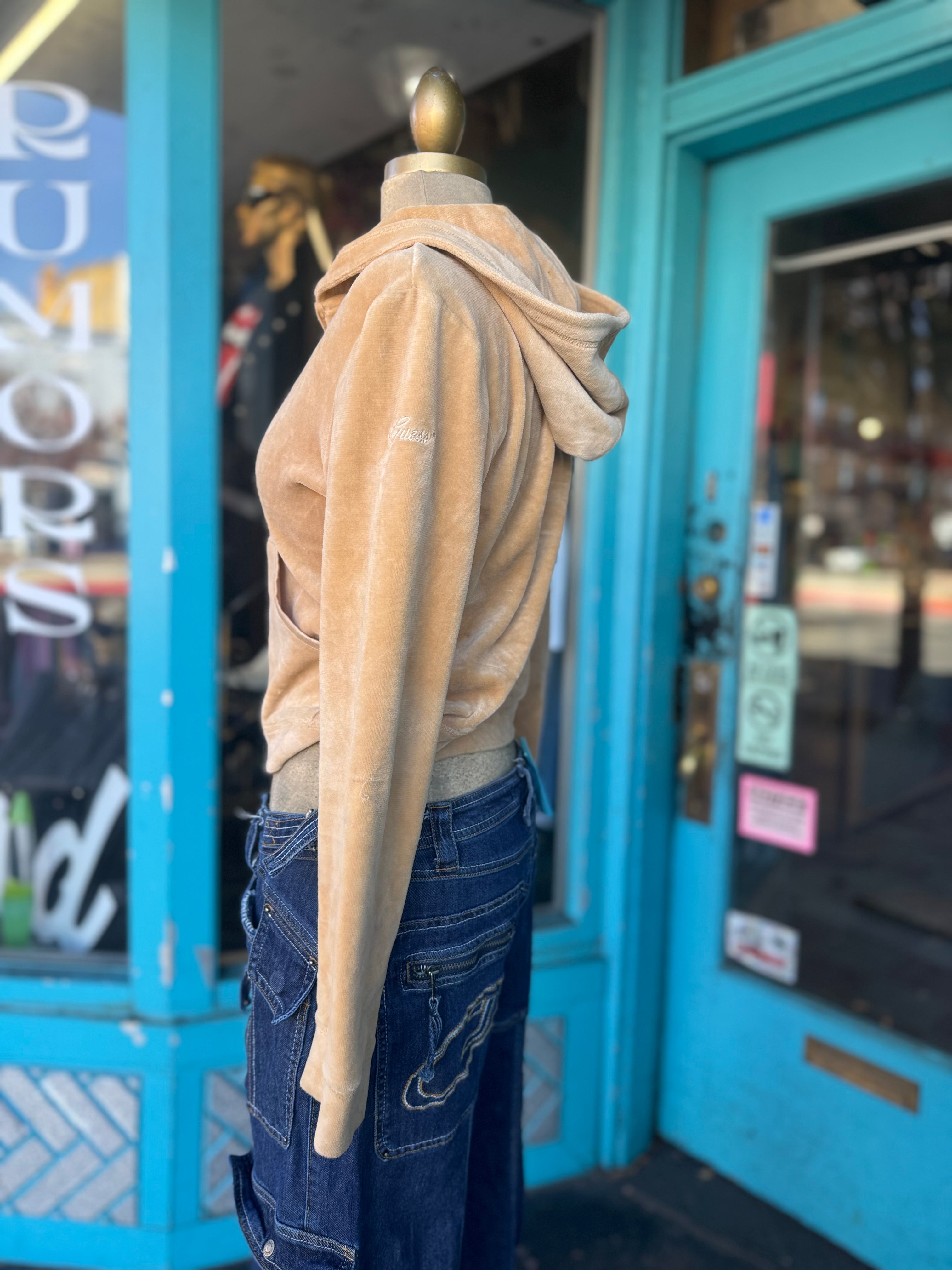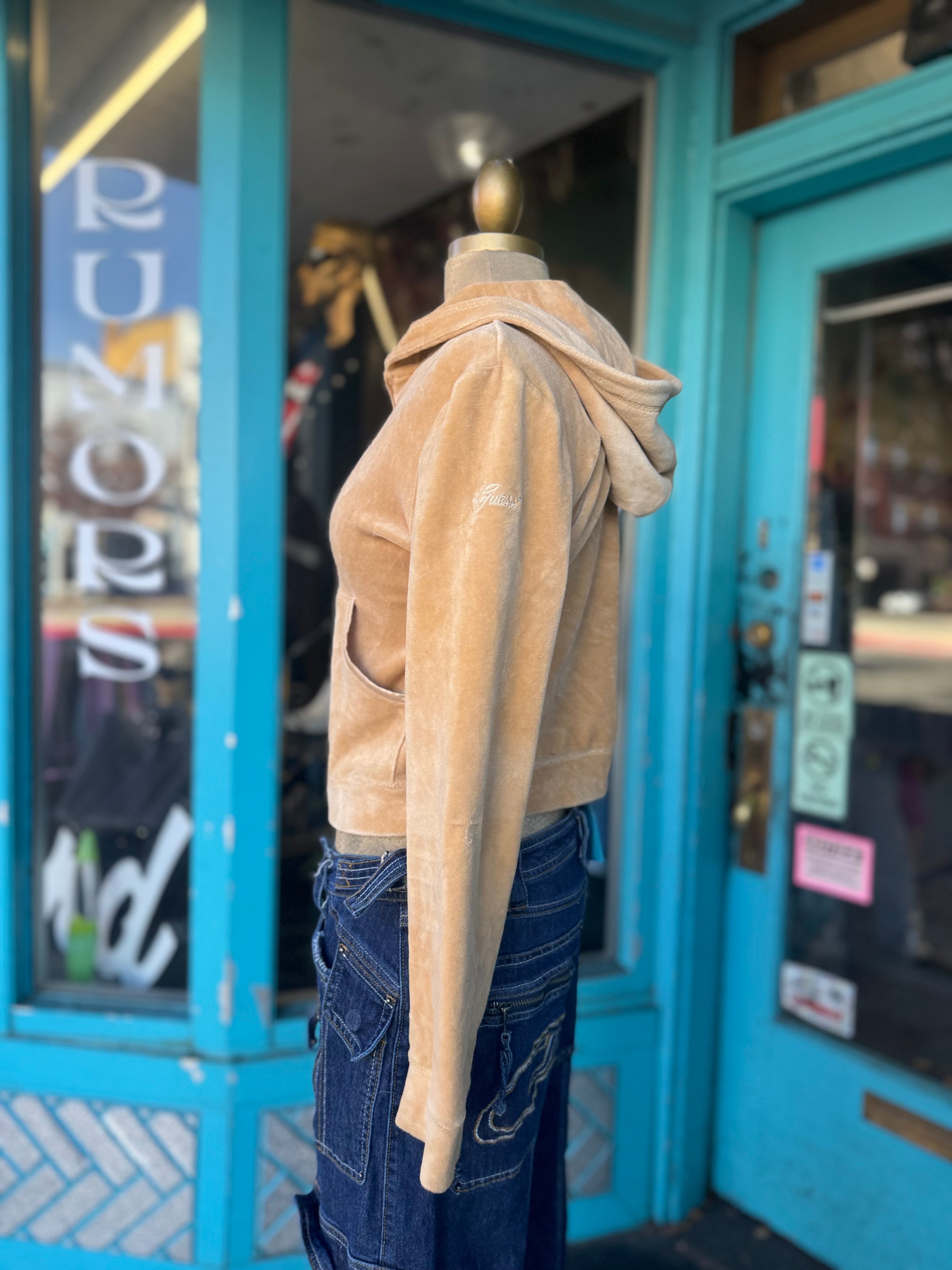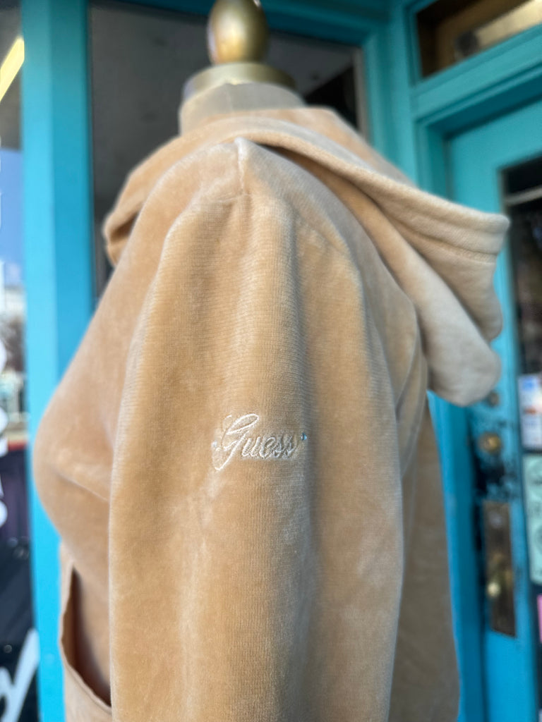 This gorgeous Velour Y2K Guess Hoodie is a must-have for any fashion-savvy individual. Made with high-quality velour fabric, it offers both comfort and style. Perfect for any occasion, this hoodie will elevate your wardrobe and make you stand out in the crowd.
